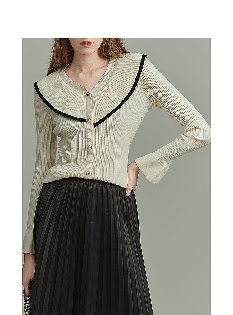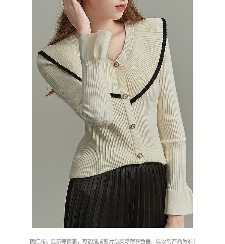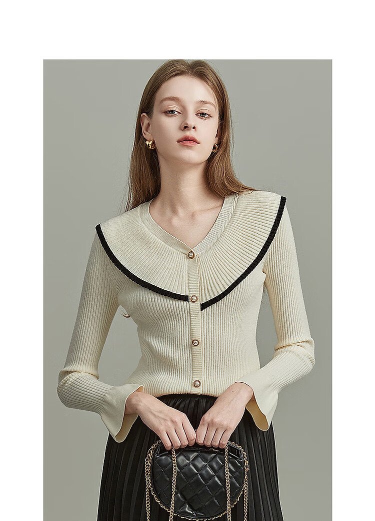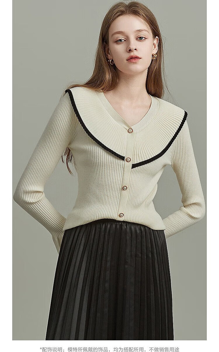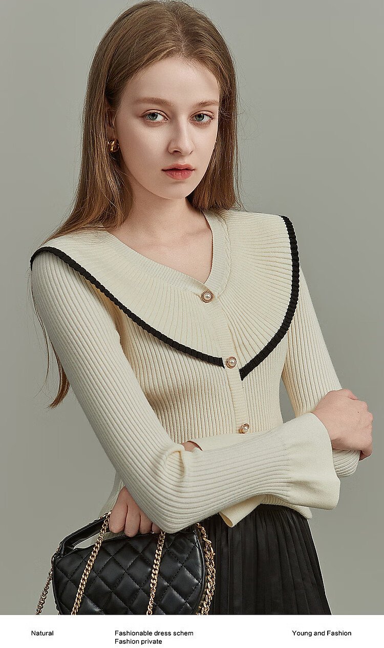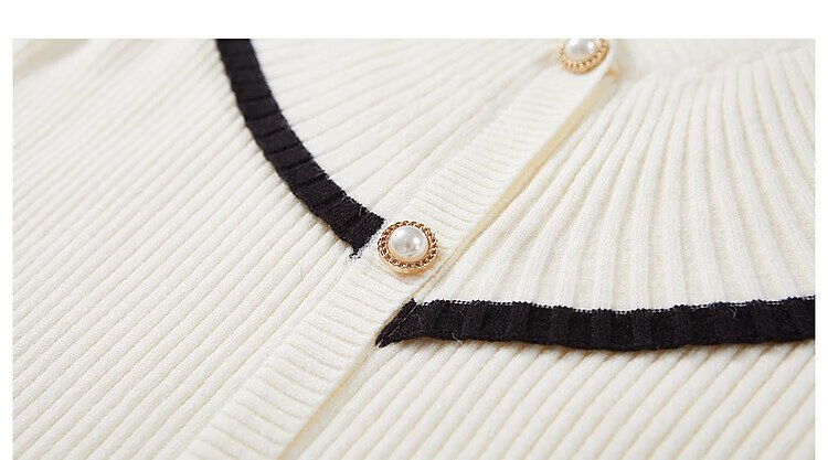 Demana French style winter V-neck velvet yarn ruffles contrasting color cardigan fungus edge knitted sweater women's top