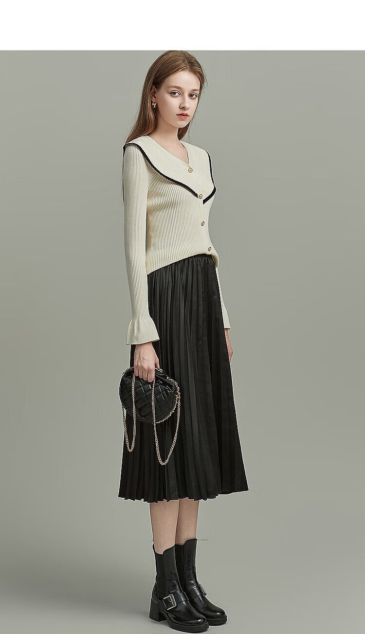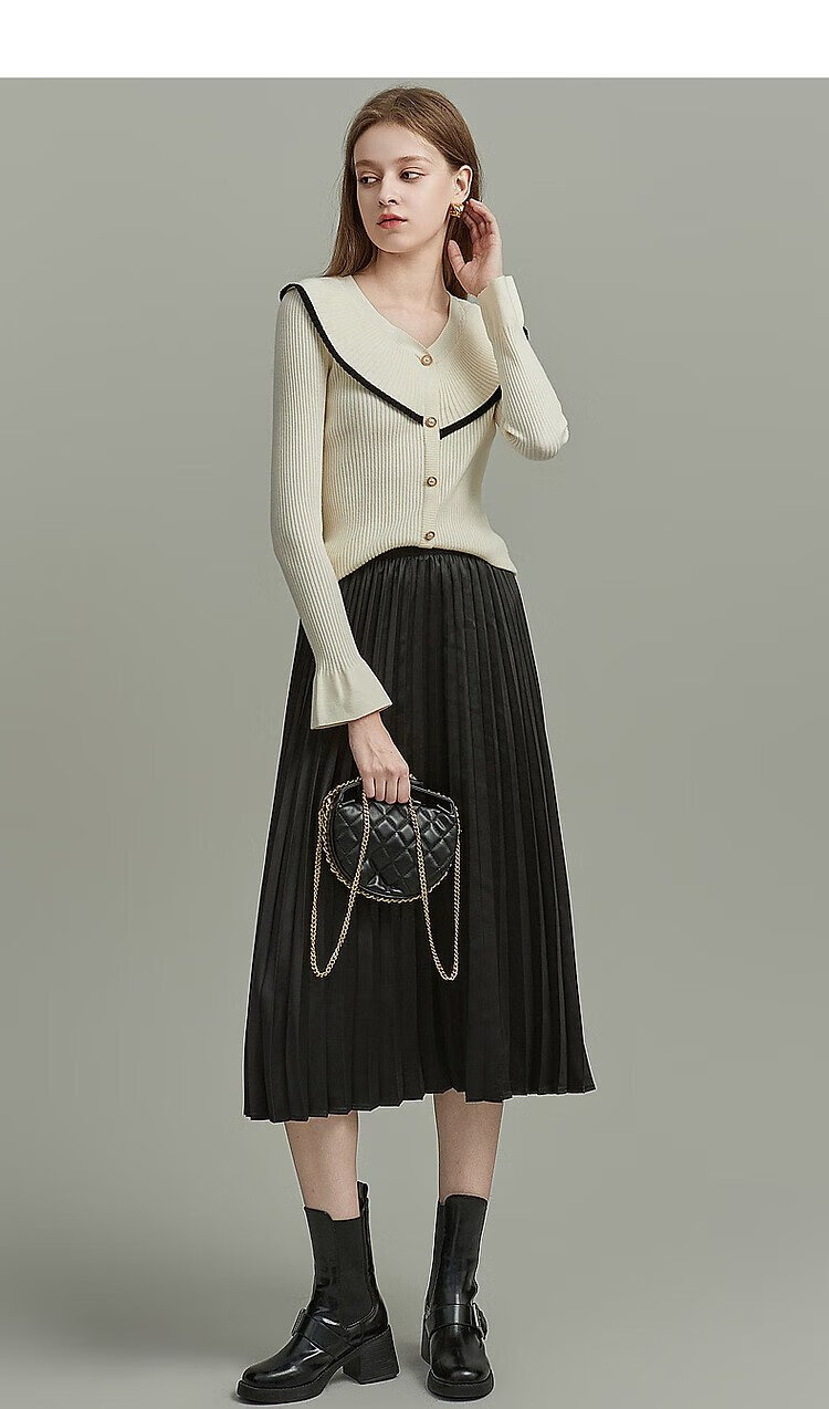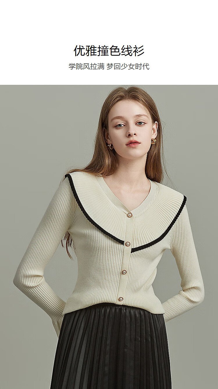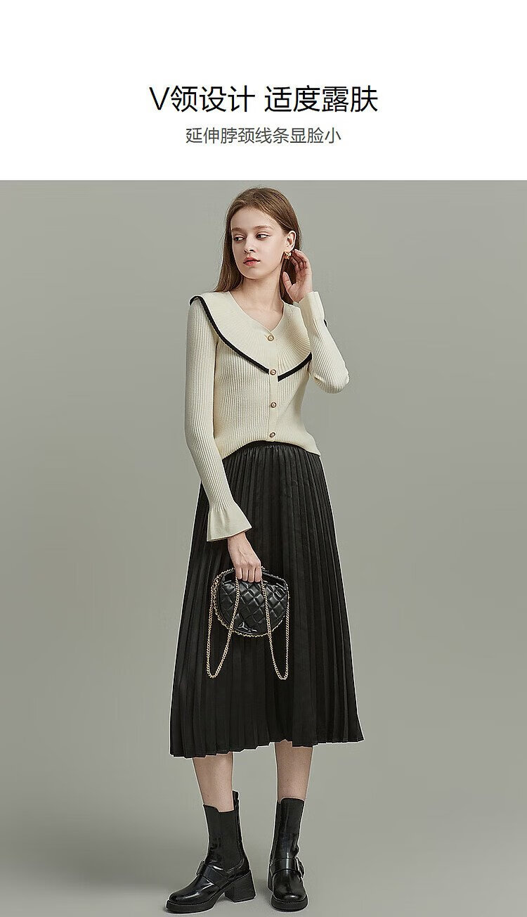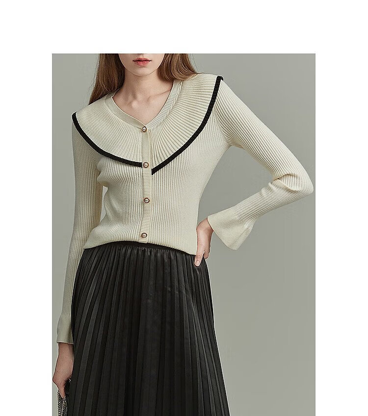 Demana French style winter V-neck velvet yarn ruffles contrasting color cardigan fungus edge knitted sweater women's top