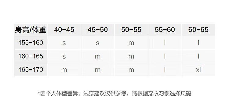 China (cm) 160-165/84-86 165-170 / 88-90 167-172 / 92-96 168-173 / 98-102 170-176 / 106-110