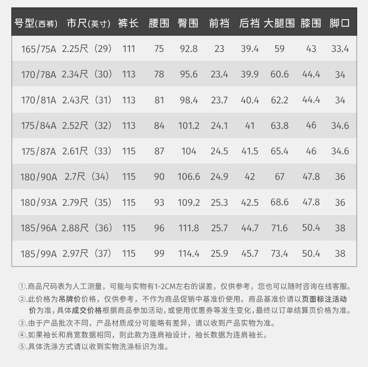 China (cm) 160-165/84-86 165-170 / 88-90 167-172 / 92-96 168-173 / 98-102 170-176 / 106-110