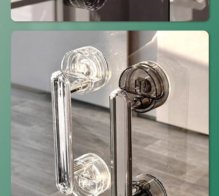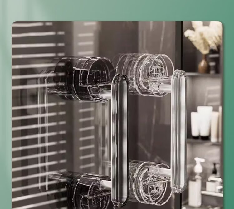 Deqi suction cup diamond door handle glass door handle no punching sliding door window handle transparent silver 1 pack