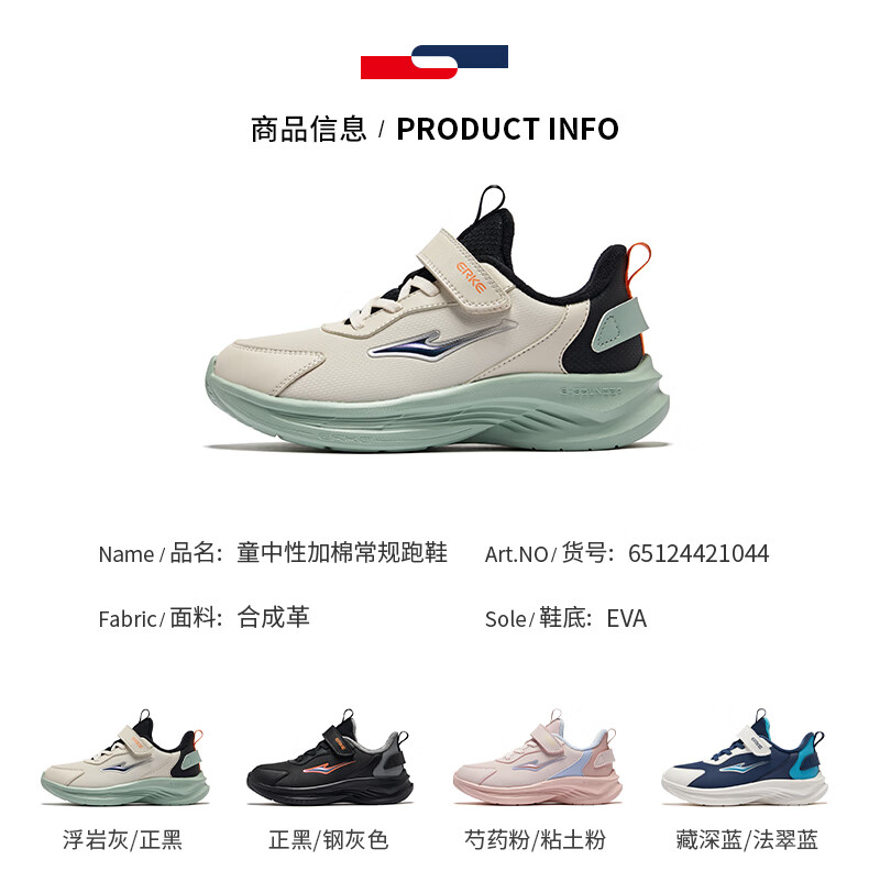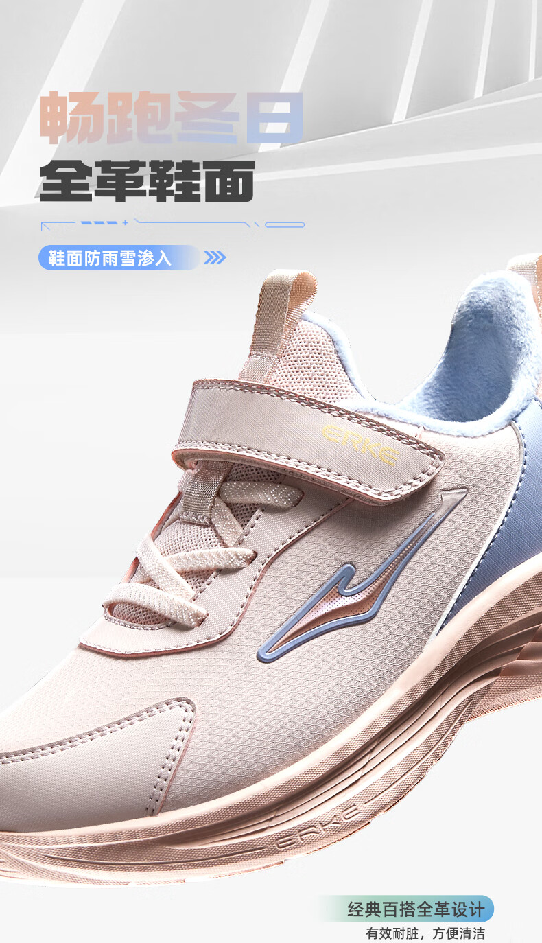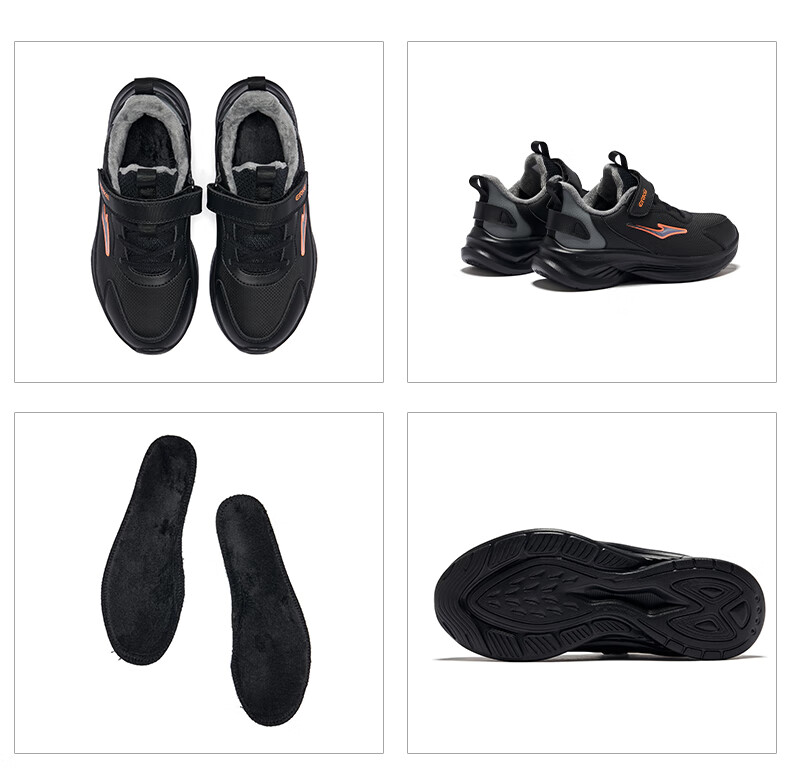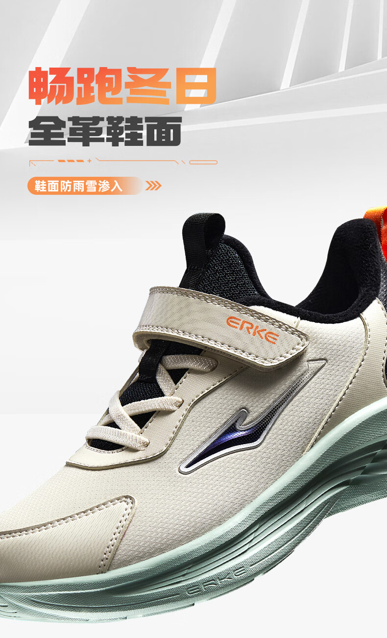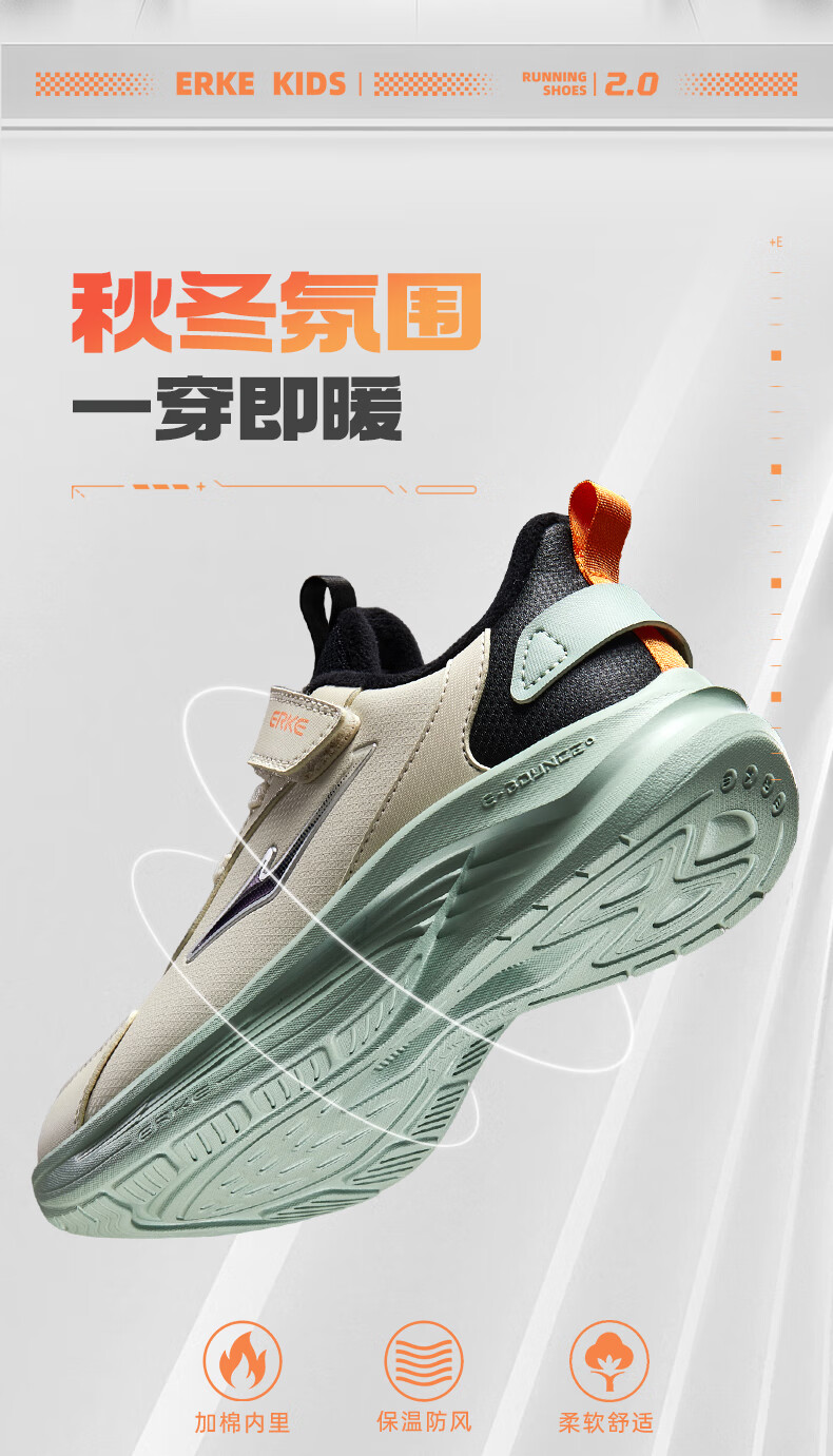 Hongxing Erke (ERKE) children's shoes Mingou 2.0 for boys and girls, cotton-padded running shoes, children's warm cotton shoes, pumice gray/true black 37