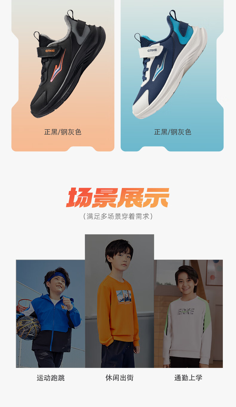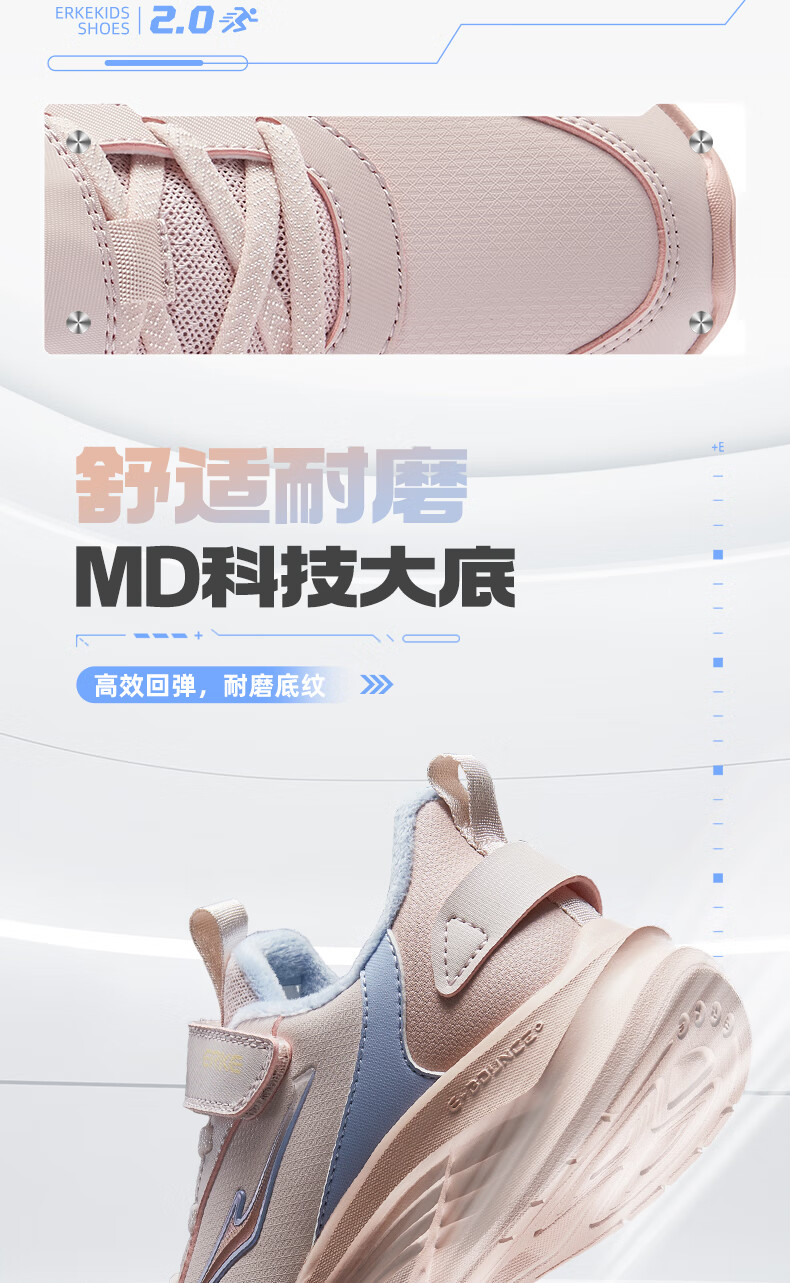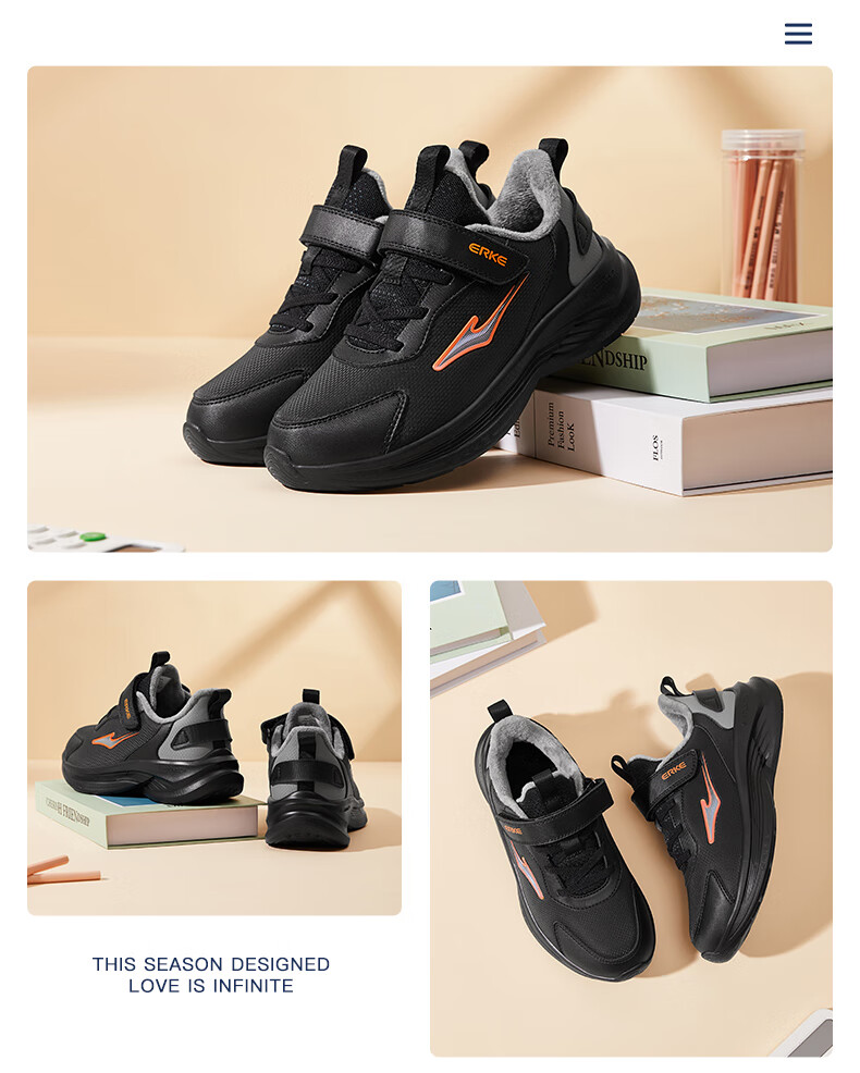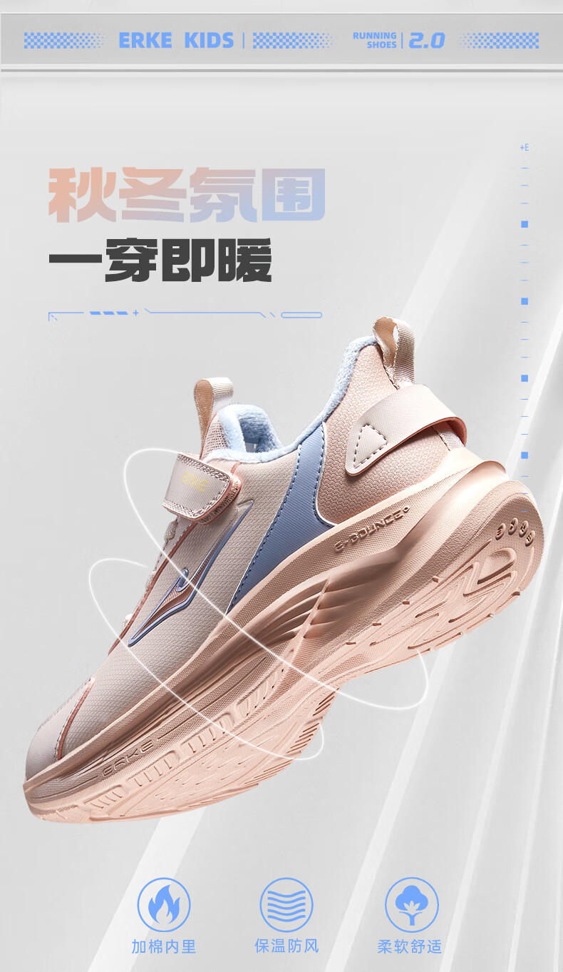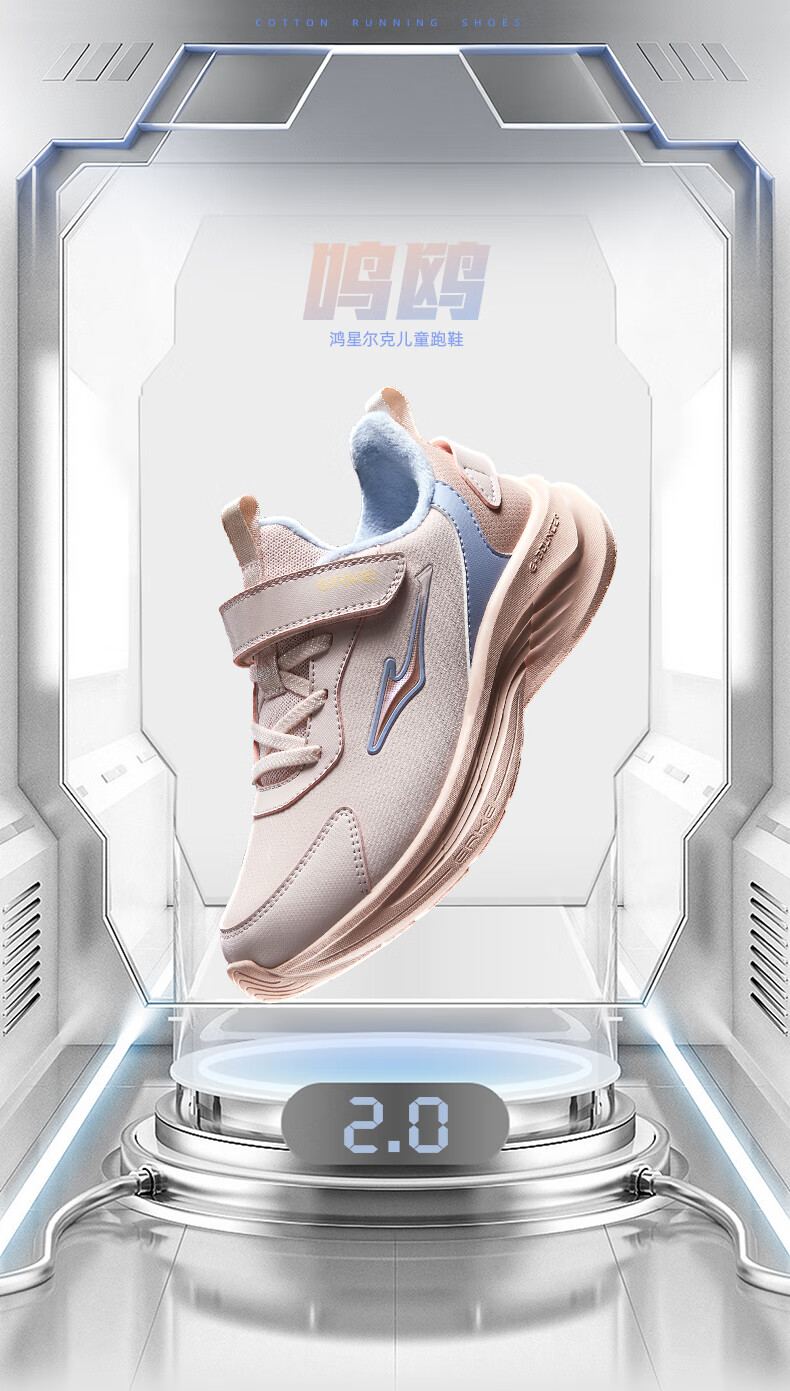 Hongxing Erke (ERKE) children's shoes Mingou 2.0 for boys and girls, cotton-padded running shoes, children's warm cotton shoes, pumice gray/true black 37