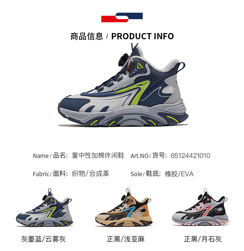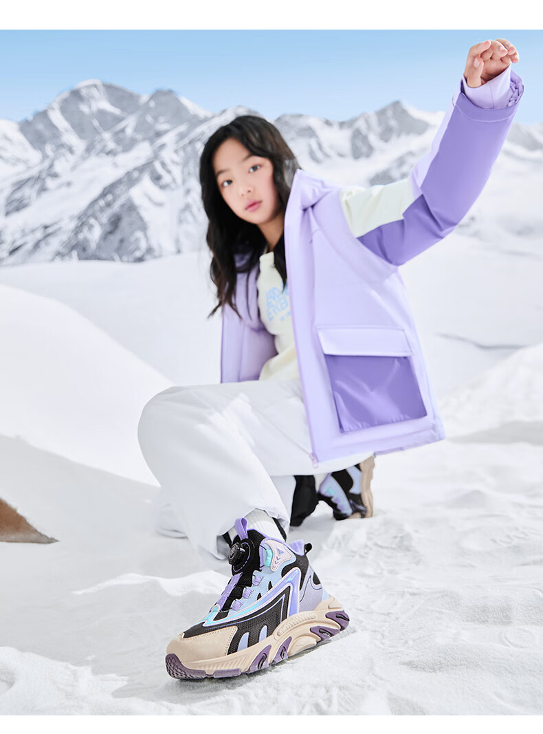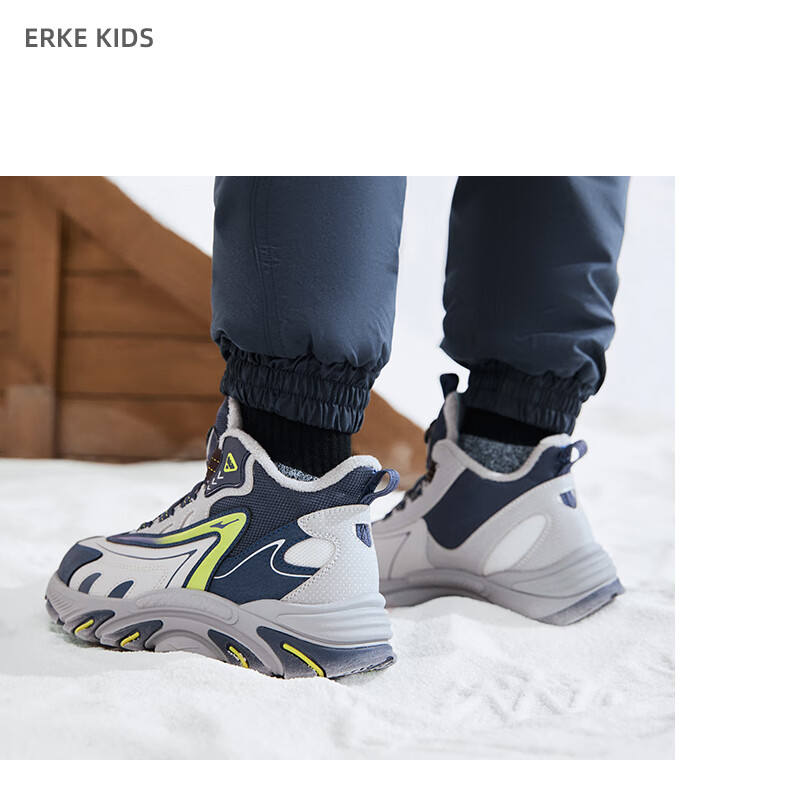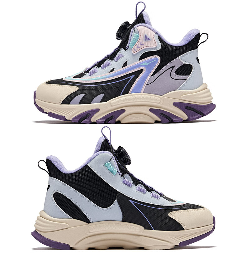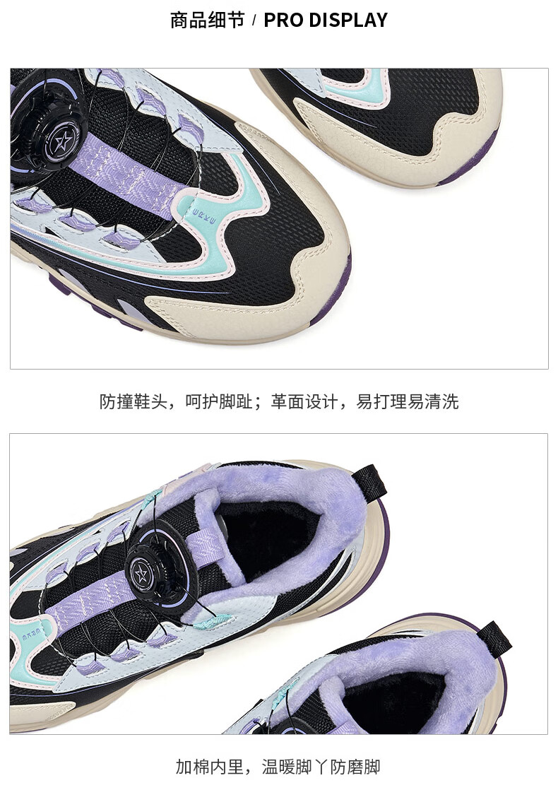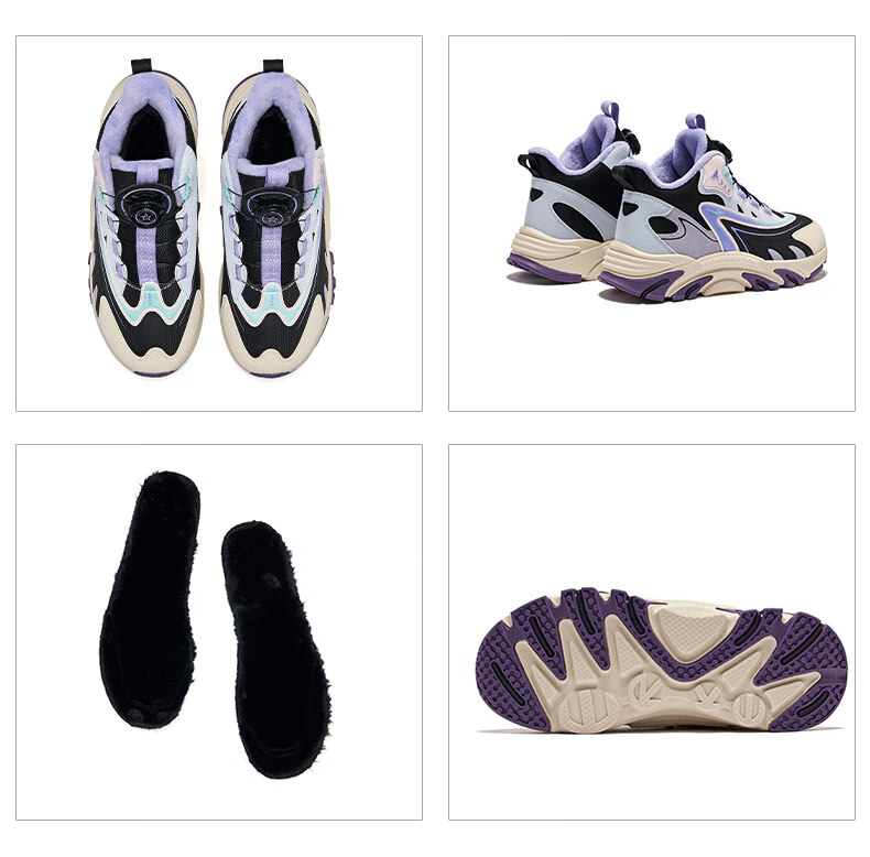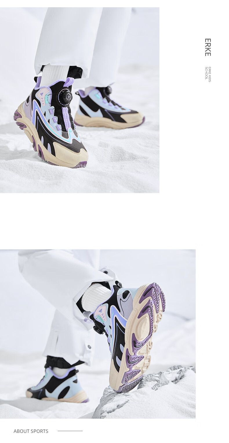 Hongxing Erke (ERKE) children's shoes, boys and girls, knob buckle casual shoes, children's winter cotton shoes, black/mineral purple 37