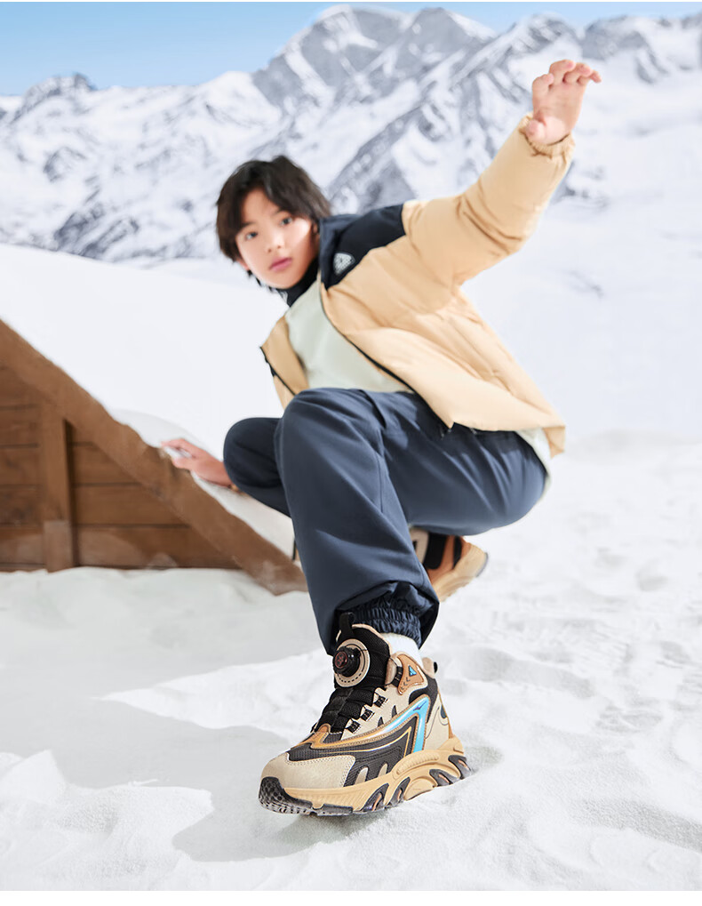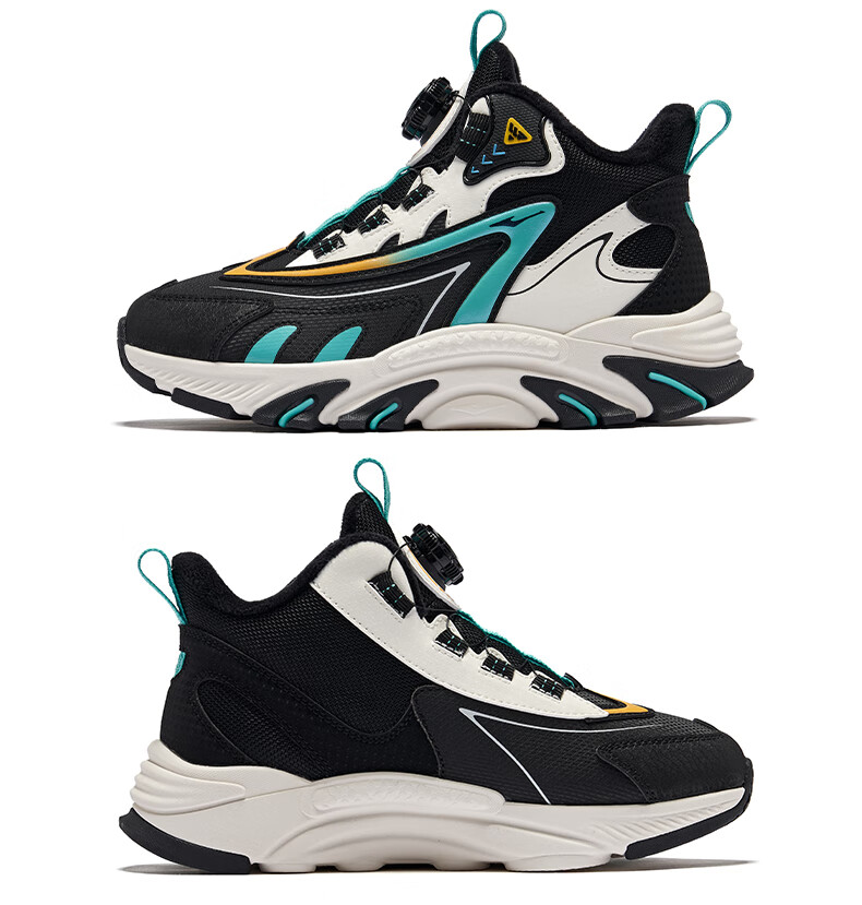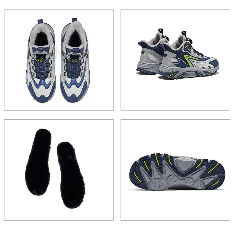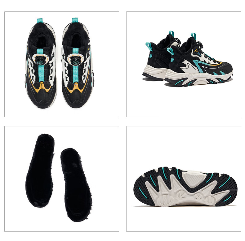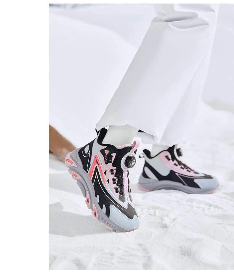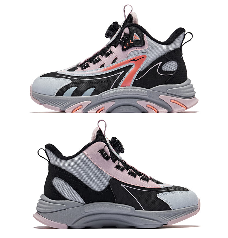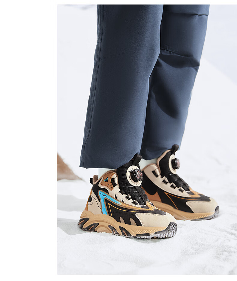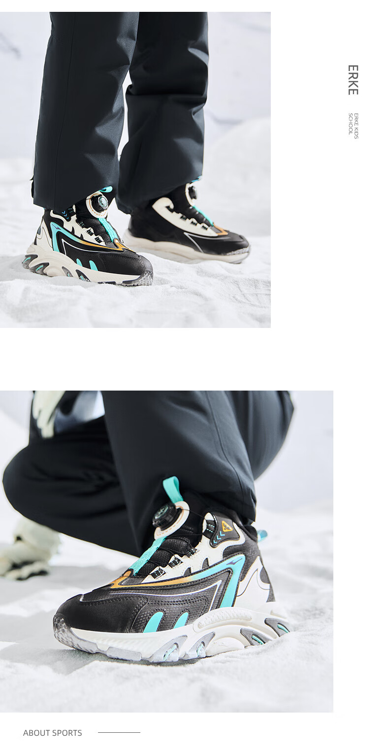 Hongxing Erke (ERKE) children's shoes, boys and girls, knob buckle casual shoes, children's winter cotton shoes, black/mineral purple 37