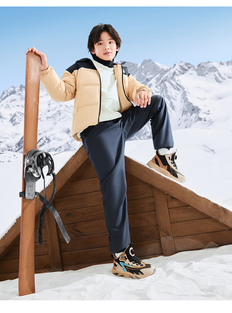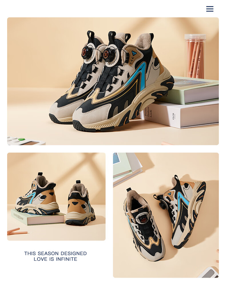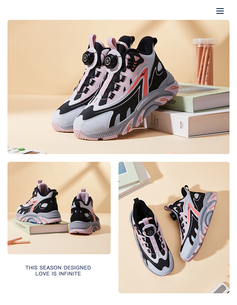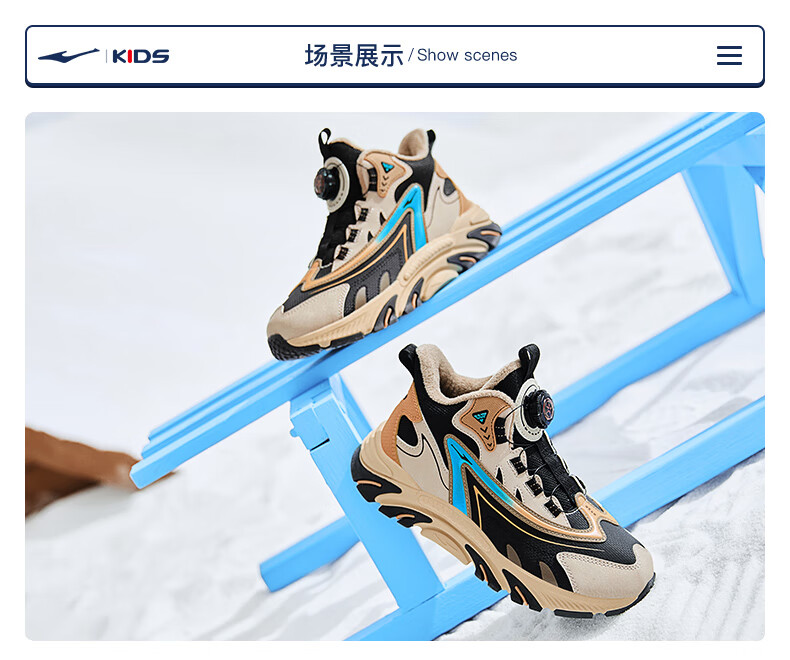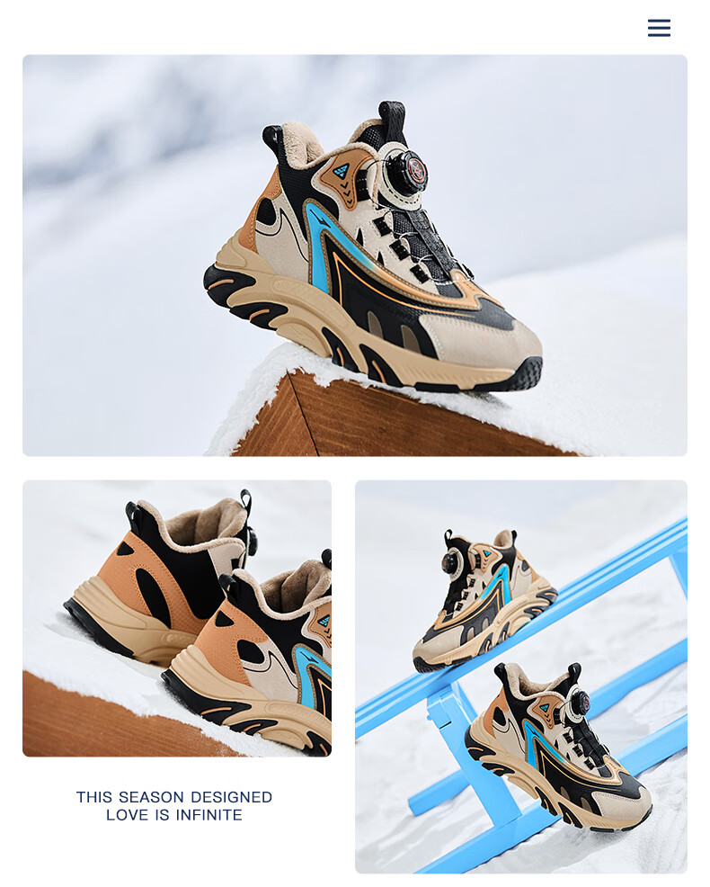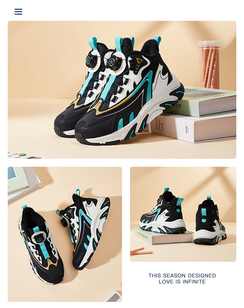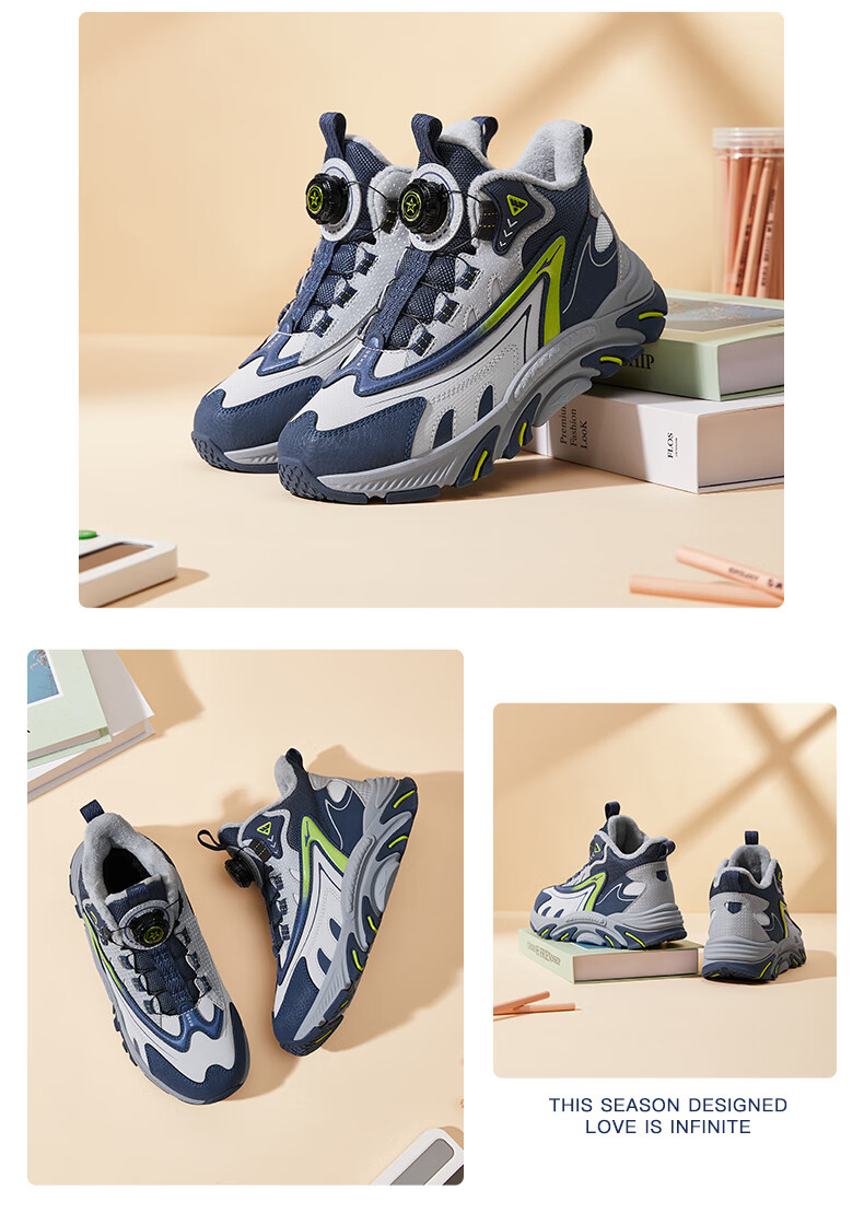 Hongxing Erke (ERKE) children's shoes, boys and girls, knob buckle casual shoes, children's winter cotton shoes, black/mineral purple 37
