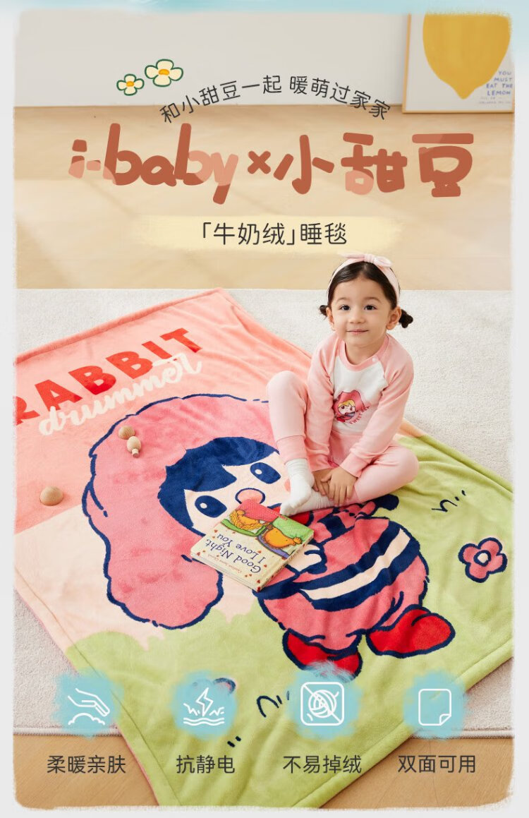I-baby baby quilt autumn and winter kindergarten blanket children's blanket warm blanket rabbit drummer
