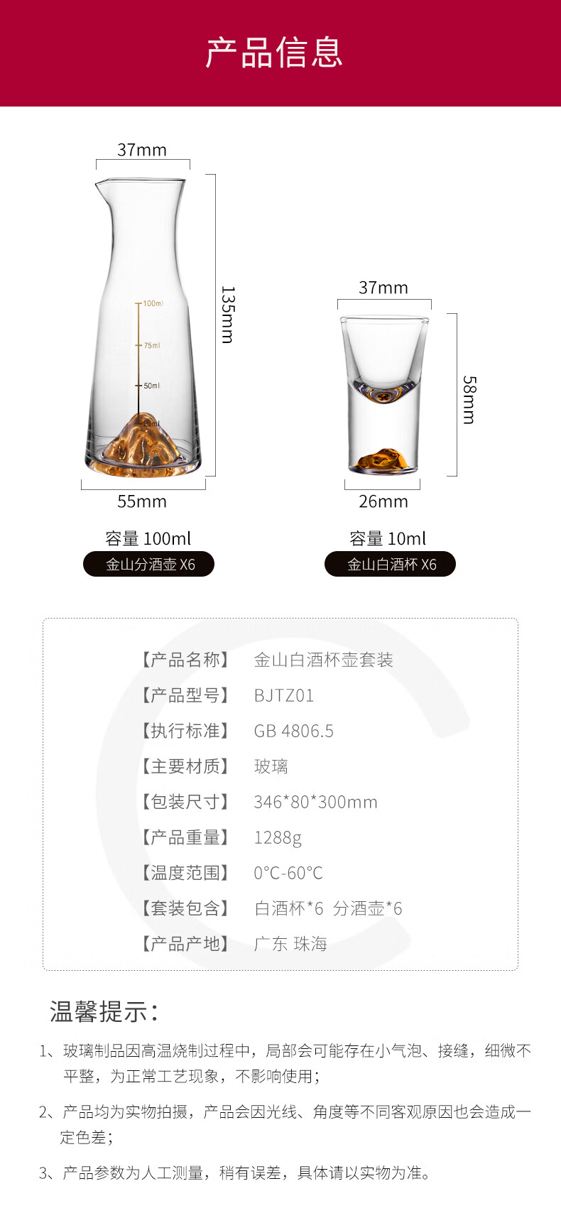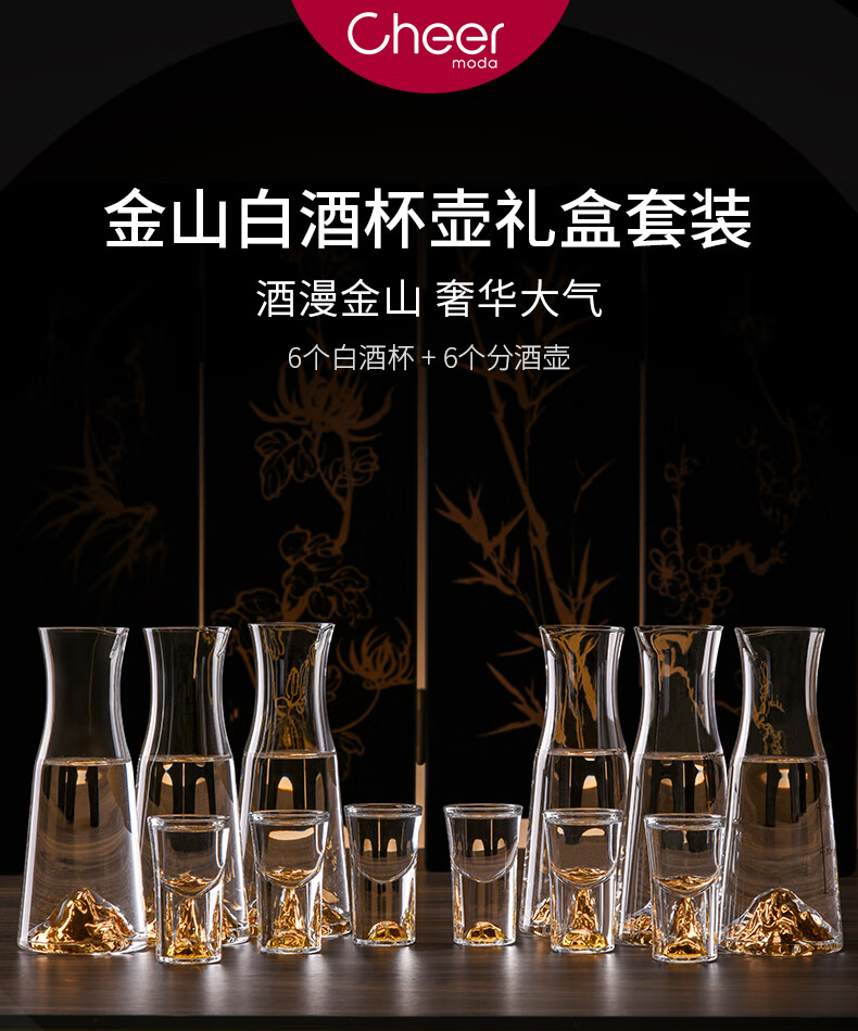 Cheer Jinshan high-end liquor cup dispenser 100ml wine set small wine glass glass jug 6 pots 6 cups gift box set