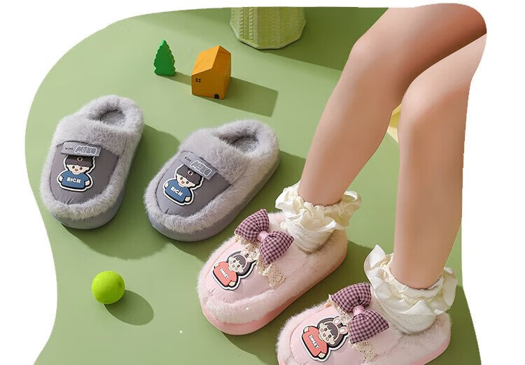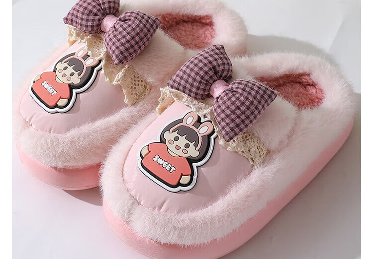 LA CHAPELLE HOMME Men and Women Baby Children's Indoor Home Warm Soft Soled Cute Plush Cotton Slippers Pink 32-33