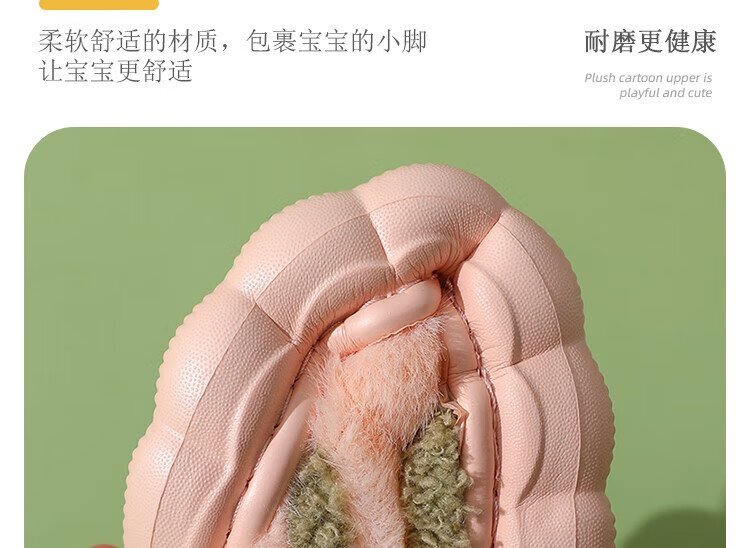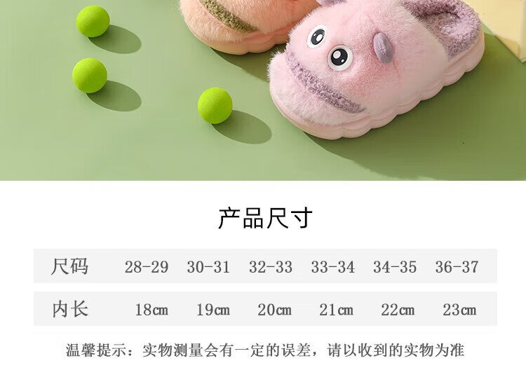 LA CHAPELLE HOMME Men and Women Baby Children's Indoor Home Warm Soft Soled Cute Plush Cotton Slippers Pink 33-34