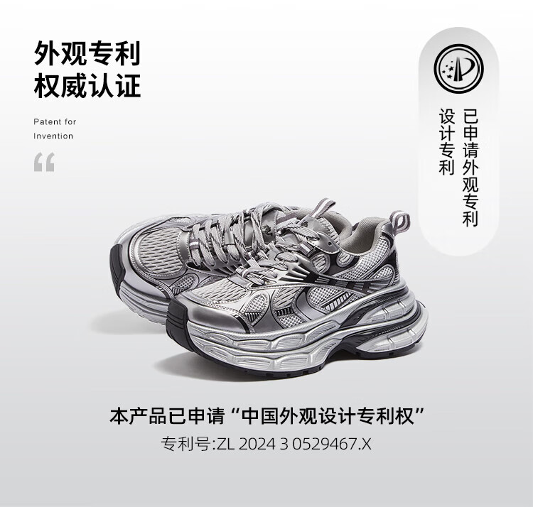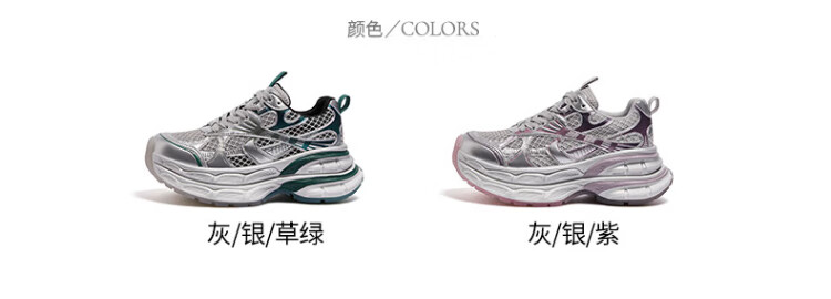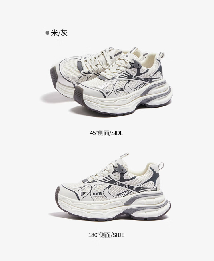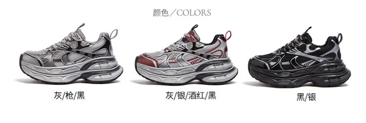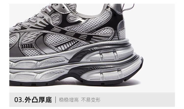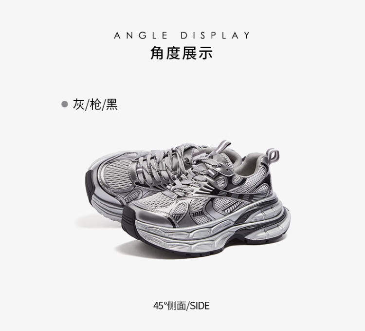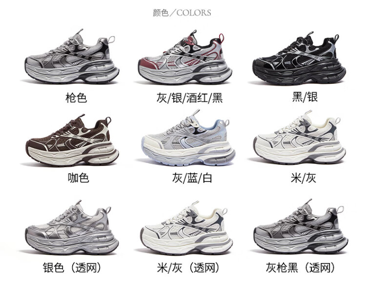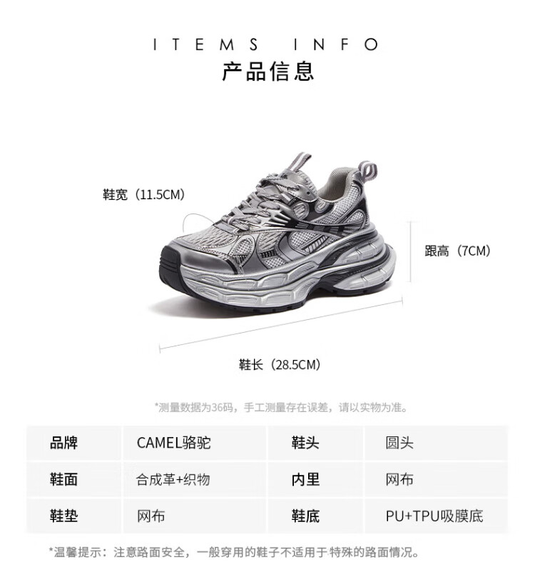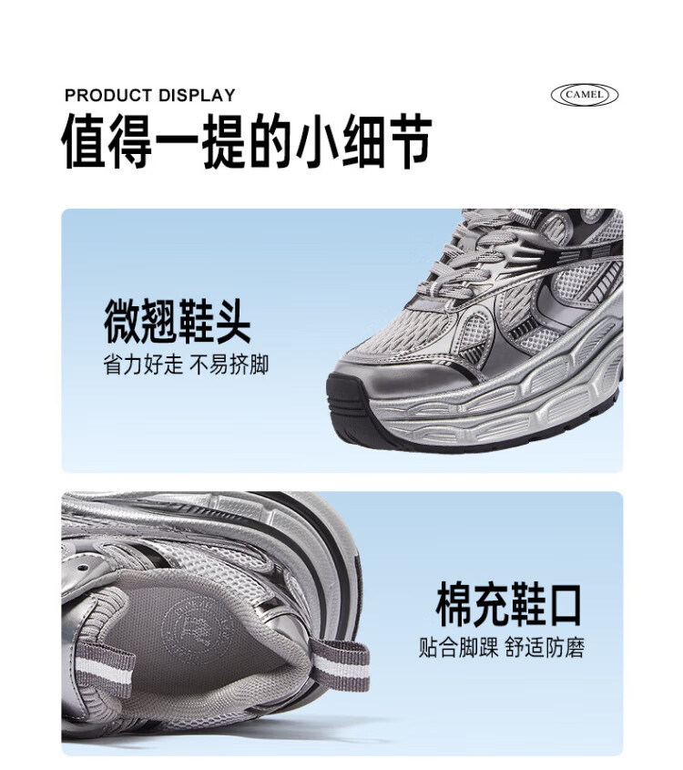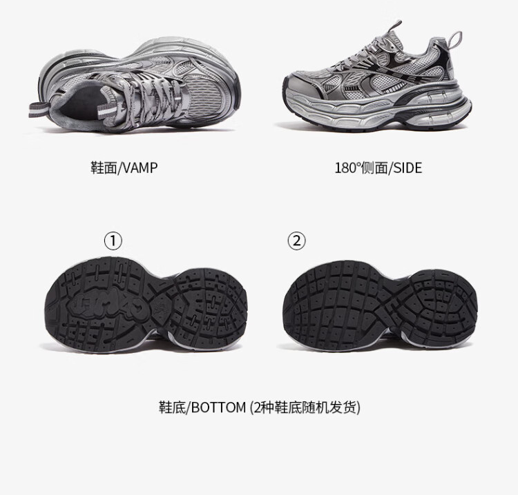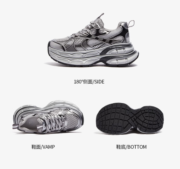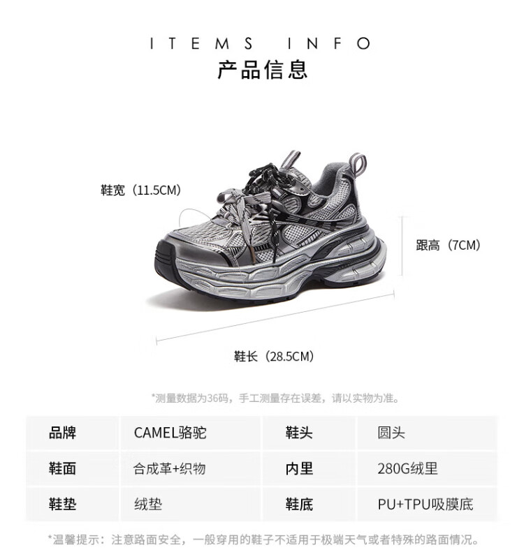 Camel (CAMEL) Silver Moon Outdoor Retro Dad Shoes Thick-soled Casual Shoes L24A283742 Gray/Gun/Black 38