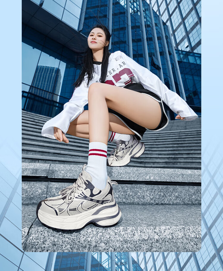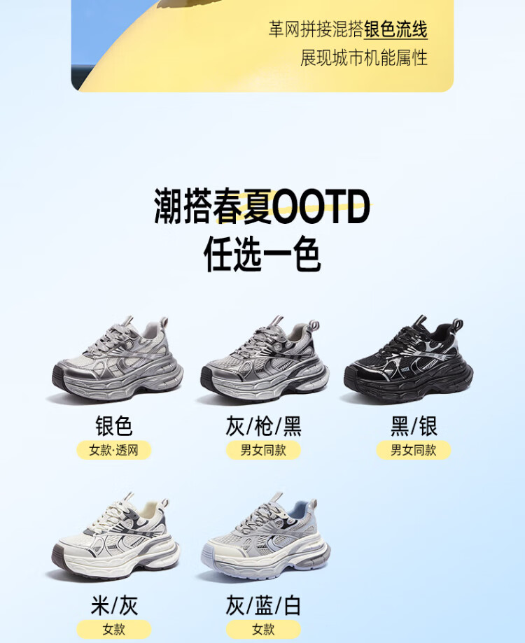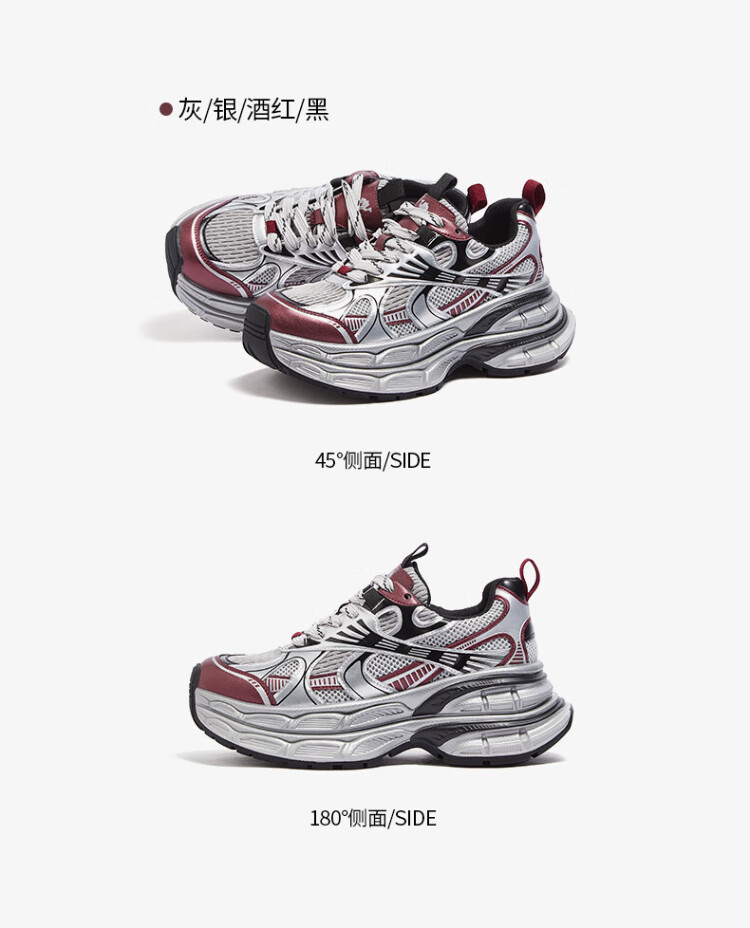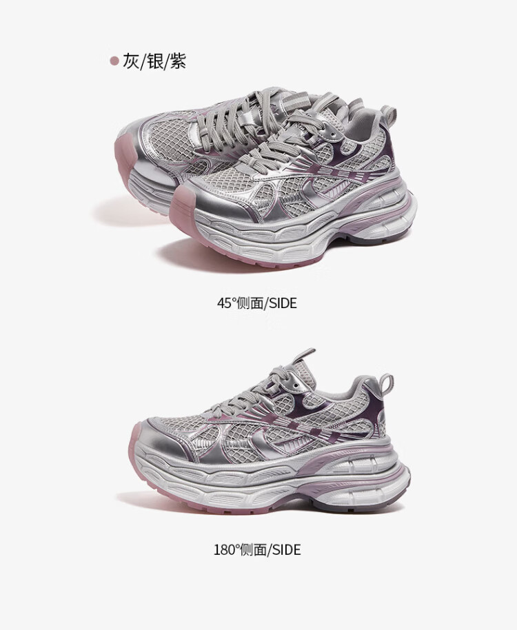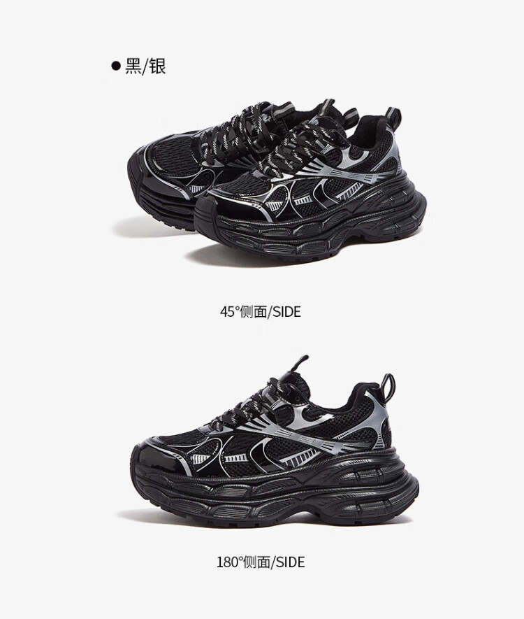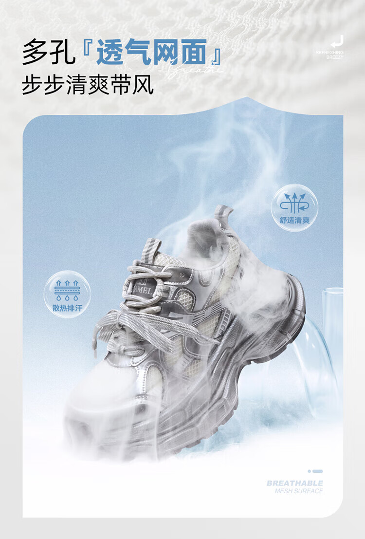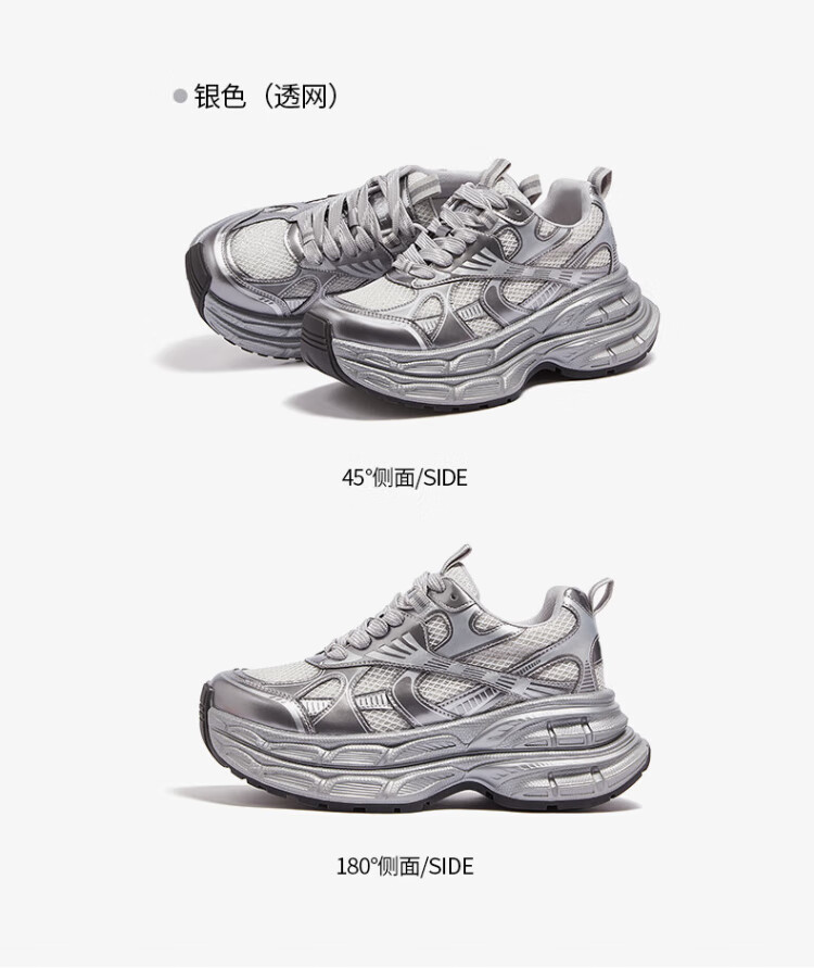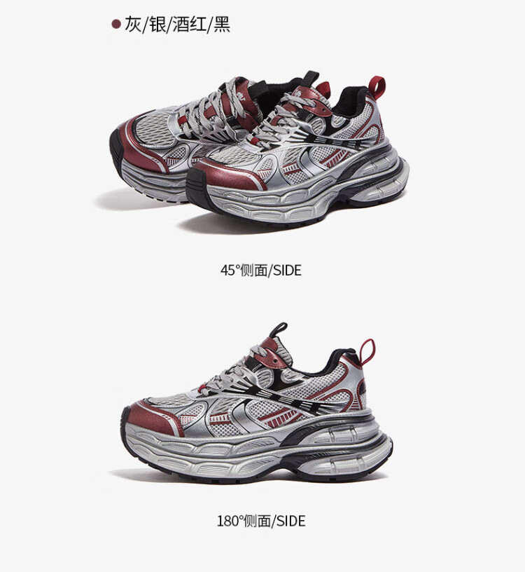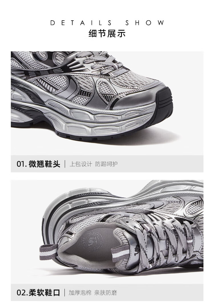 Camel (CAMEL) Silver Moon Outdoor Retro Dad Shoes Thick-soled Casual Shoes L24A283742 Gray/Gun/Black 38