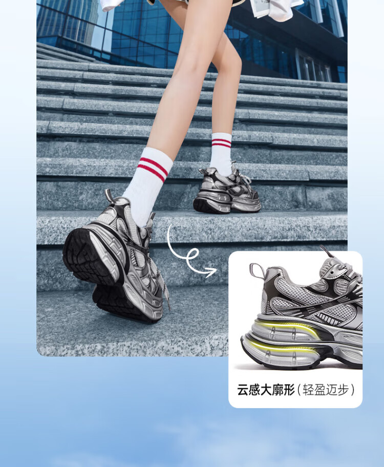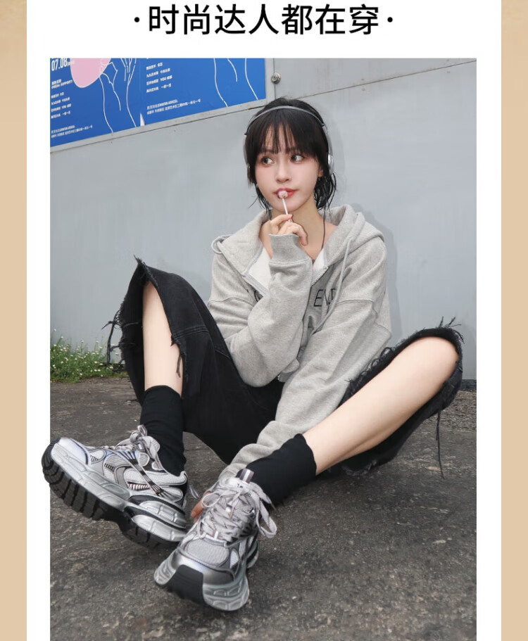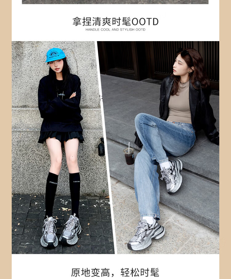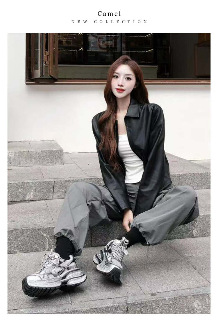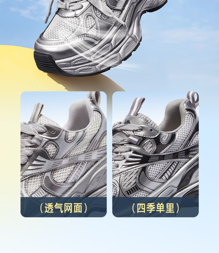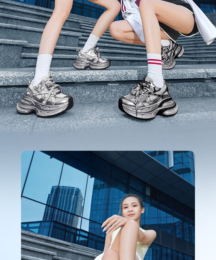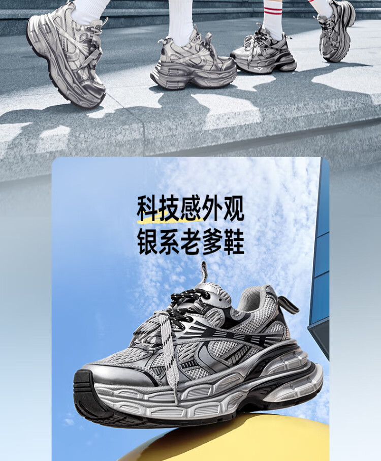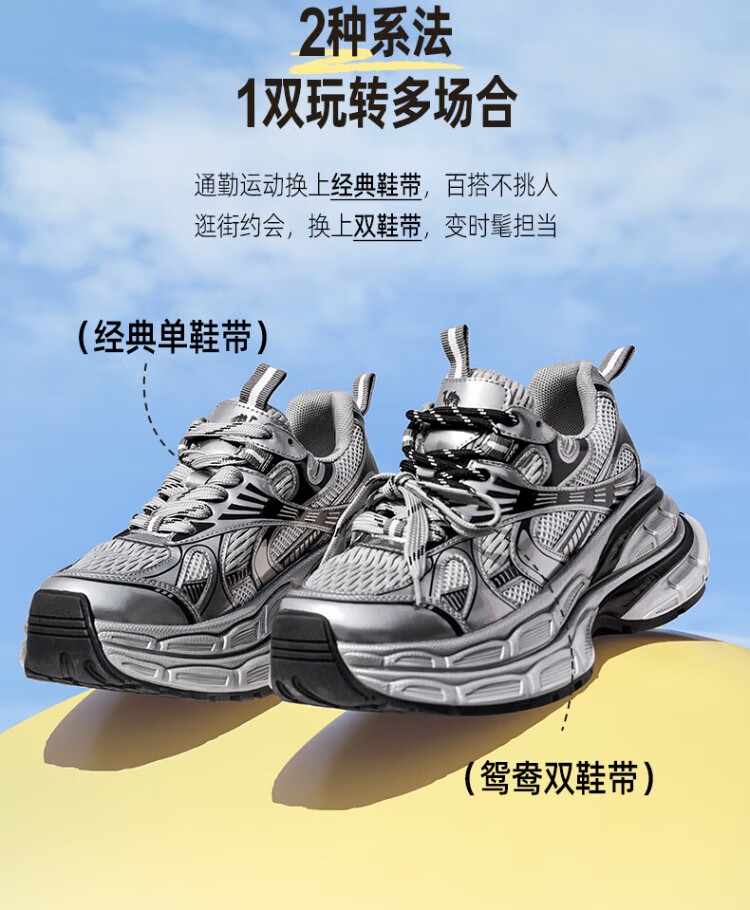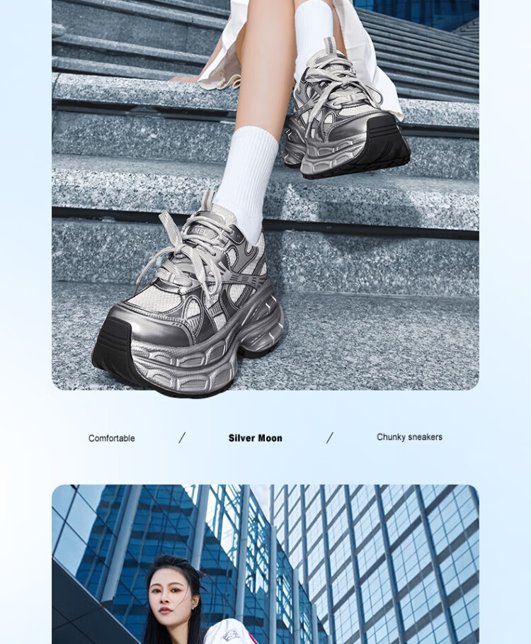 Camel (CAMEL) Silver Moon Outdoor Retro Dad Shoes Thick-soled Casual Shoes L24A283742 Gray/Gun/Black 38
