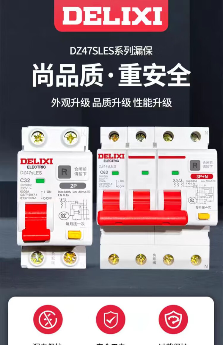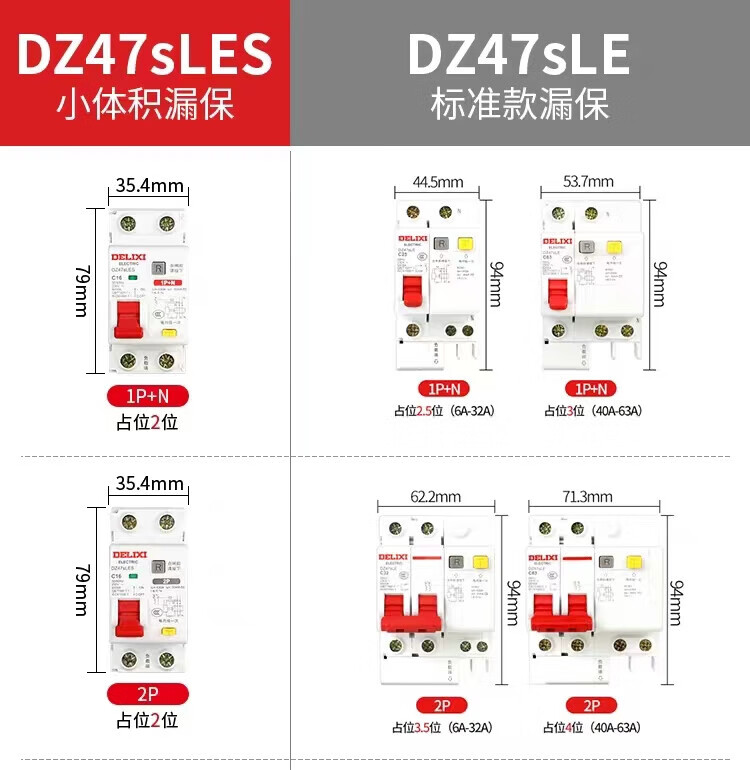 Delixi Electric leakage protector 2P 20A DZ47SLES small household miniature circuit breaker main switch air switch air switch with leakage protection