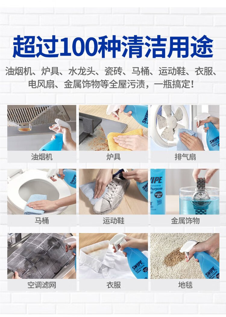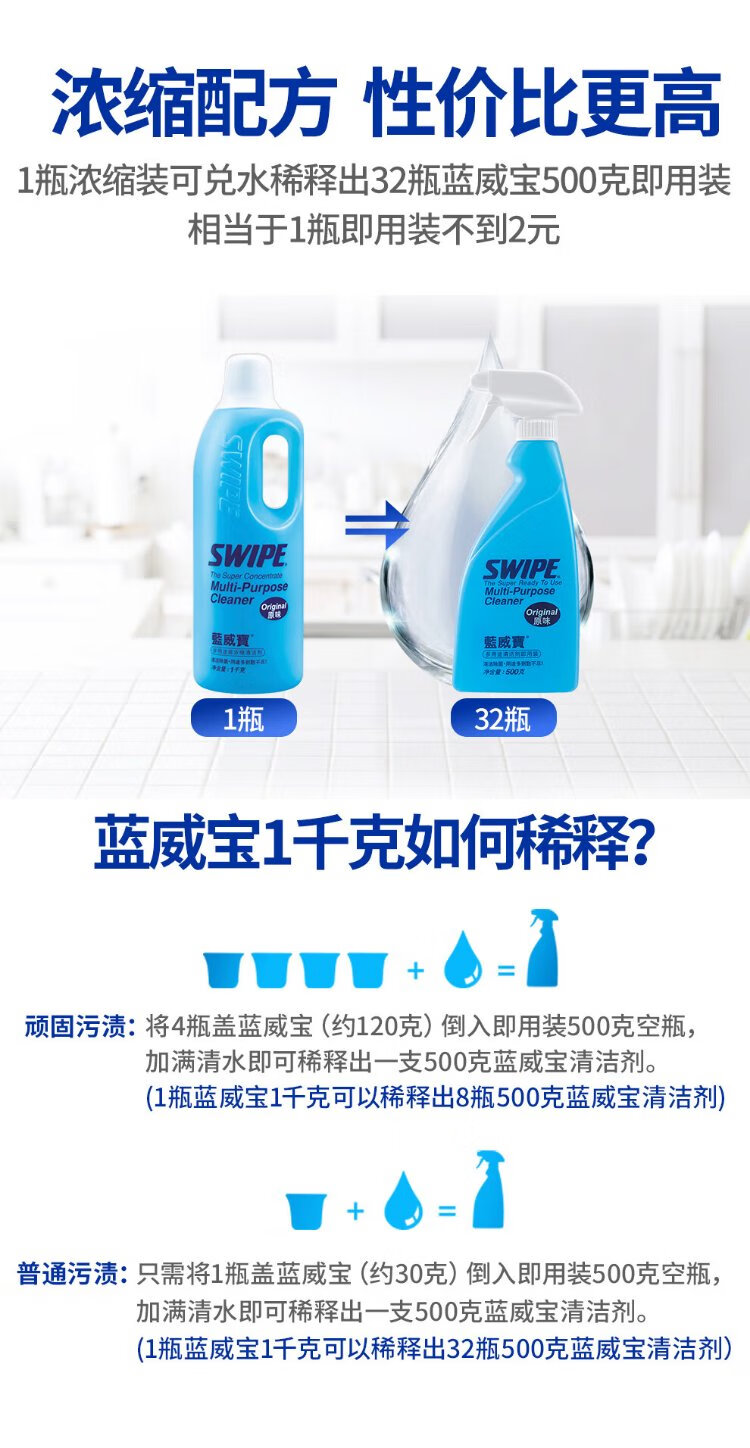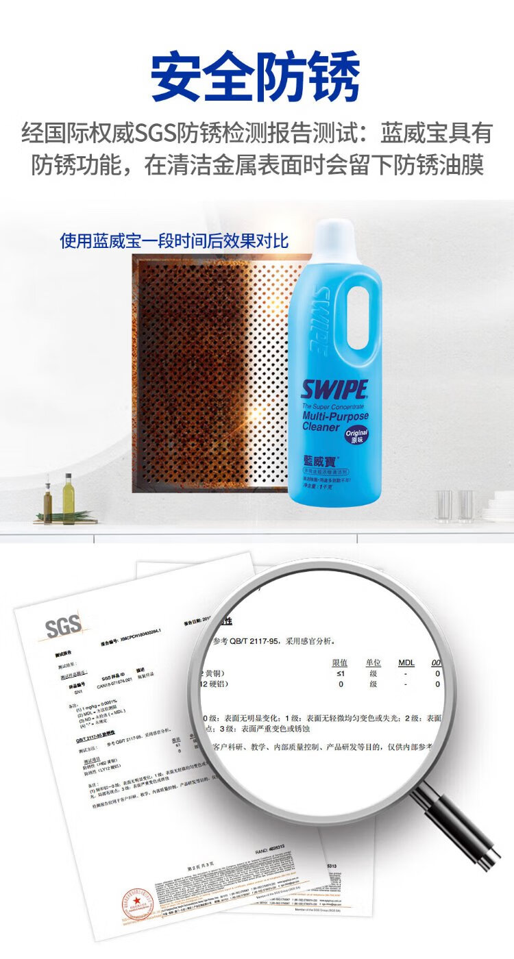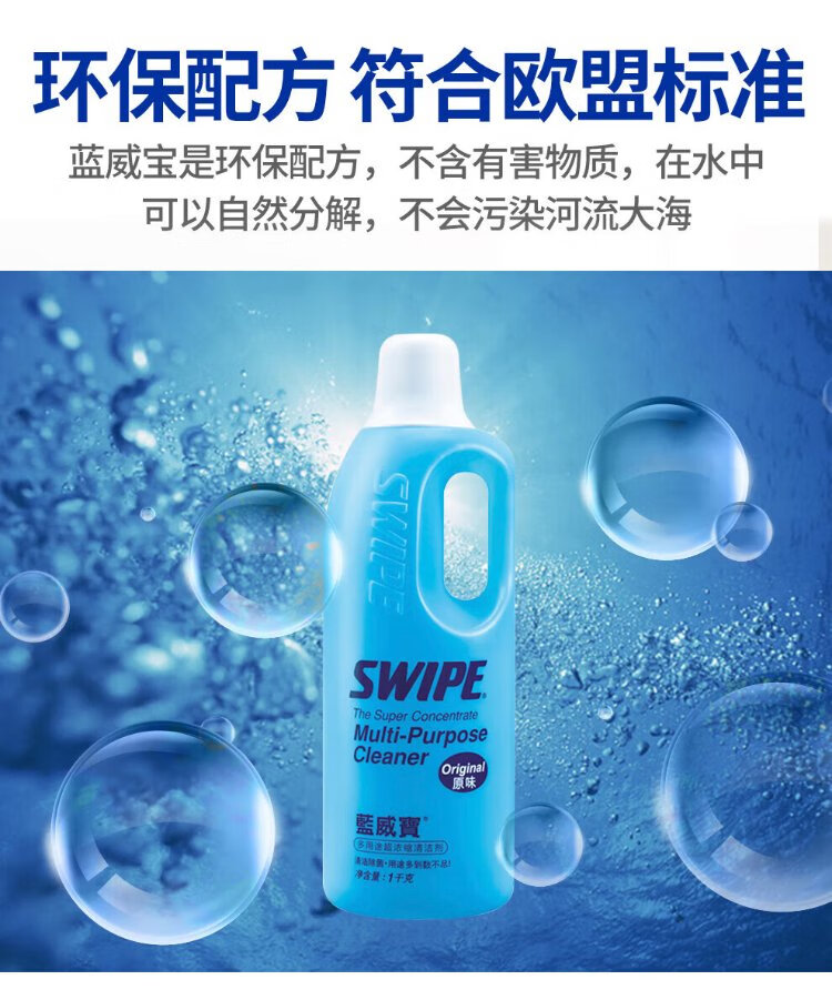 威宝(SWIPE)清洁剂 蓝威宝全能水工业机油设备油烟机去重油污清洗剂浓缩原味1KG