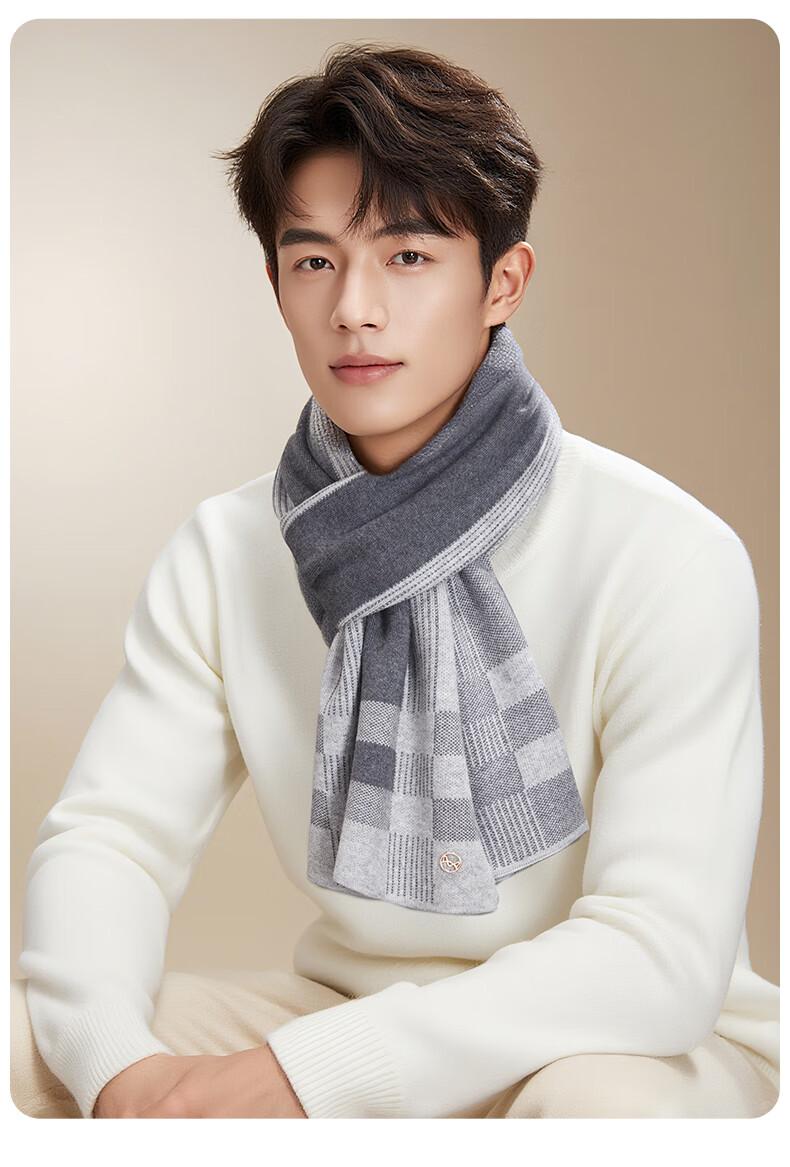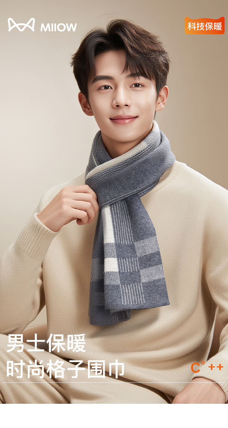 Catman scarf for men with wool plaid autumn and winter warm boy scarf for husband and dad birthday gift gift box