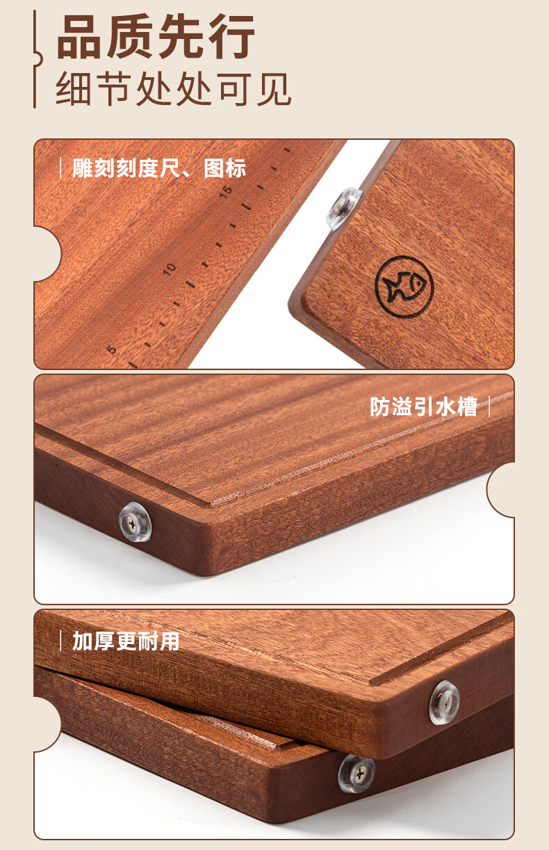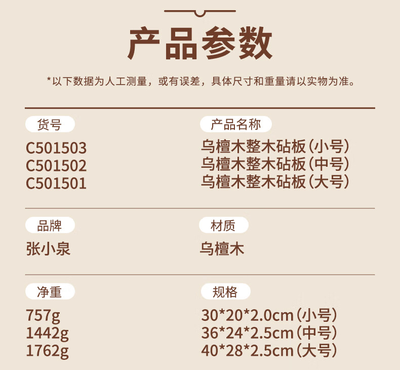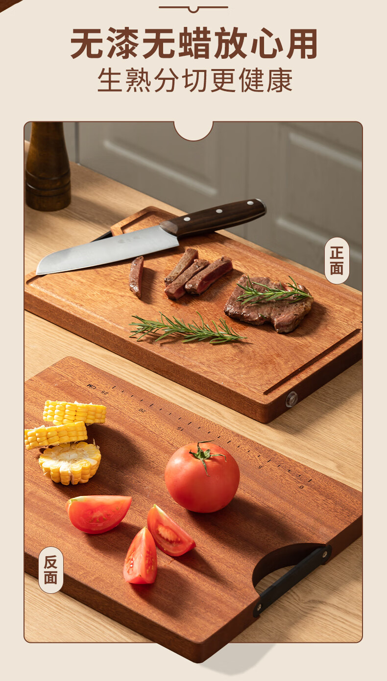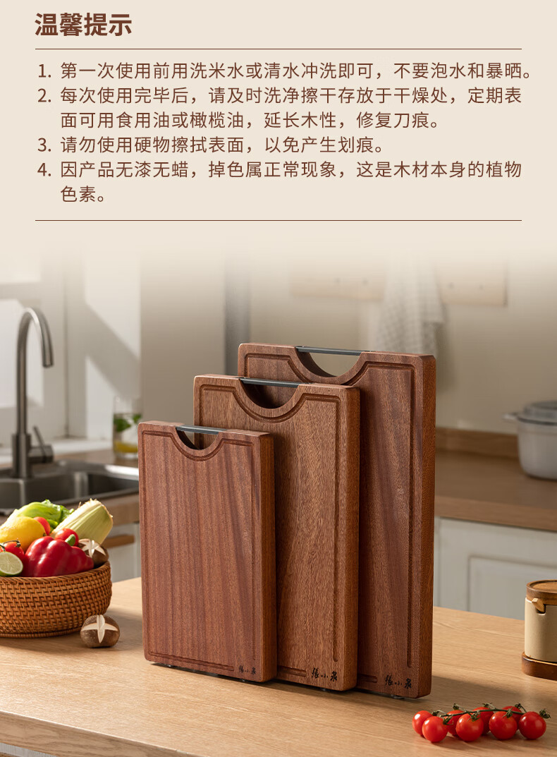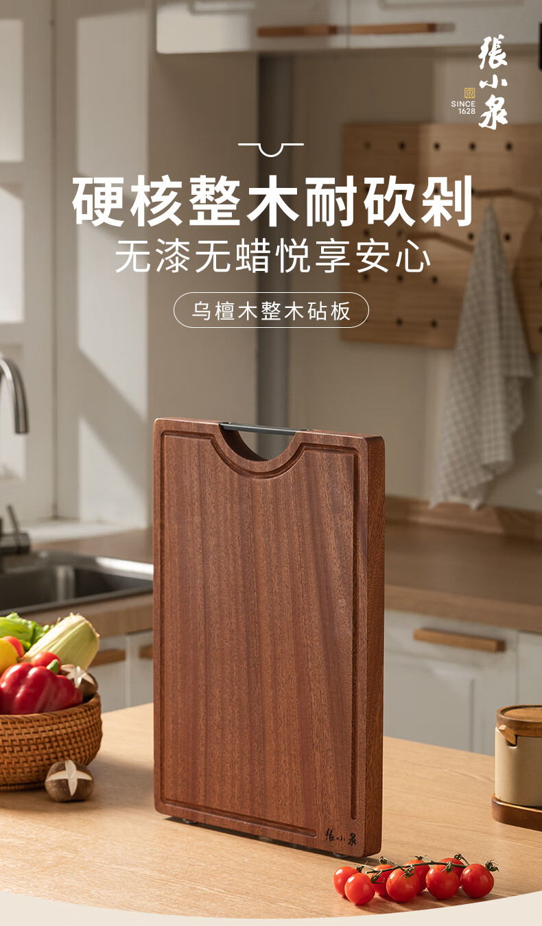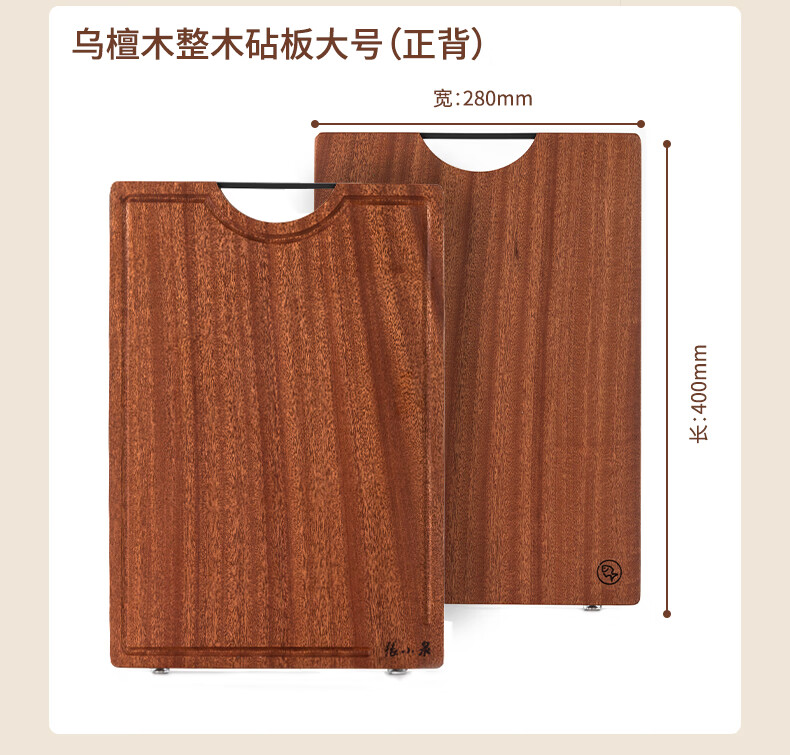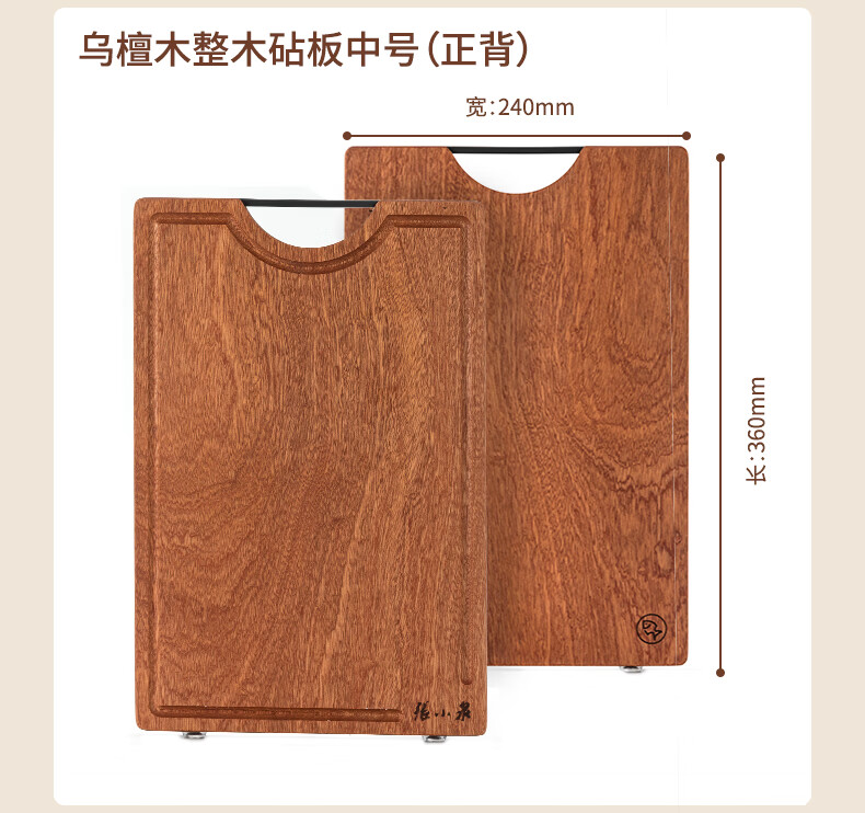 Zhang Xiaoquan ebony solid wood chopping board kitchen cutting board no paint no wax thickened double-sided chopping board (small size) 30*20*2.0cm