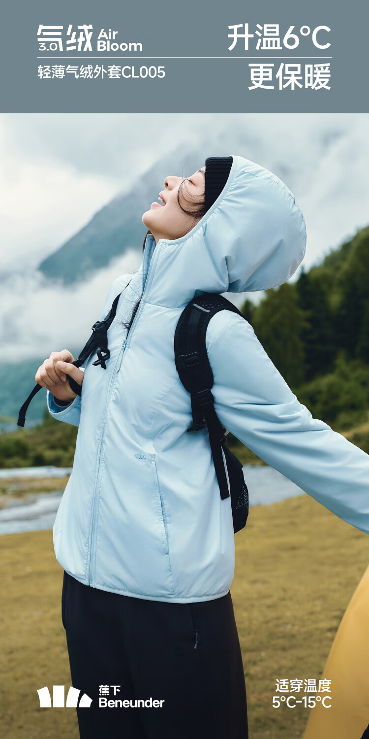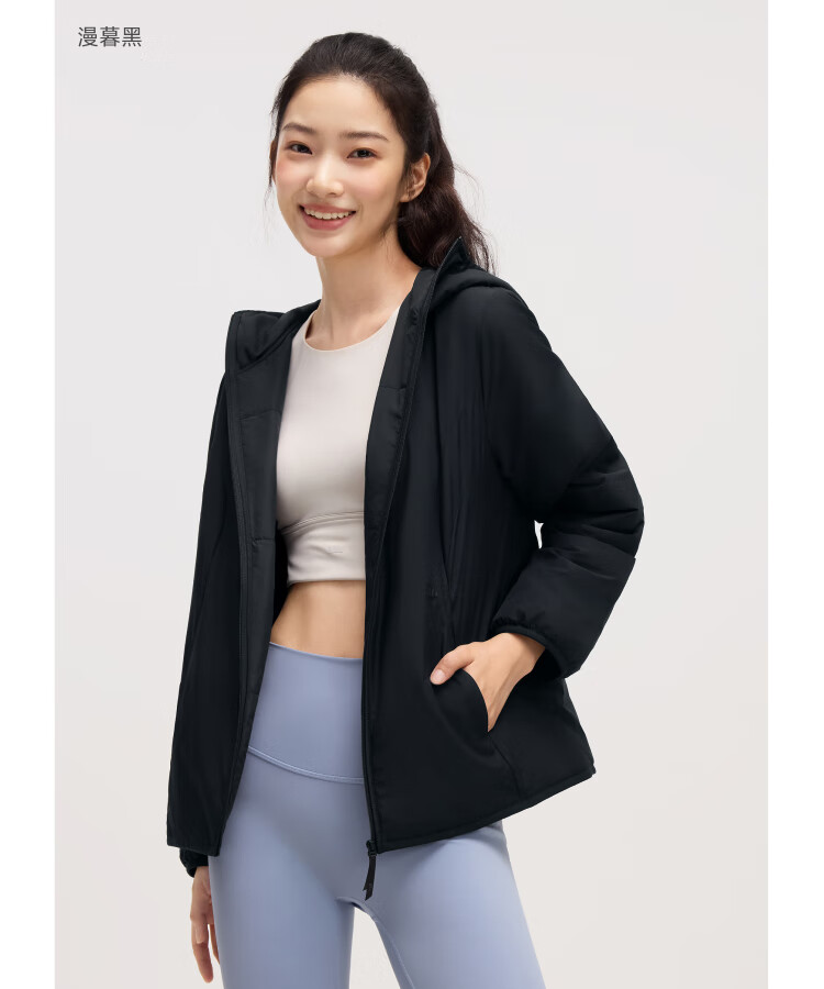 Beneunder jacket women's air velvet hooded mid-warm lightweight quick-heat thermal cotton machine washable CL005 Mandu Black M