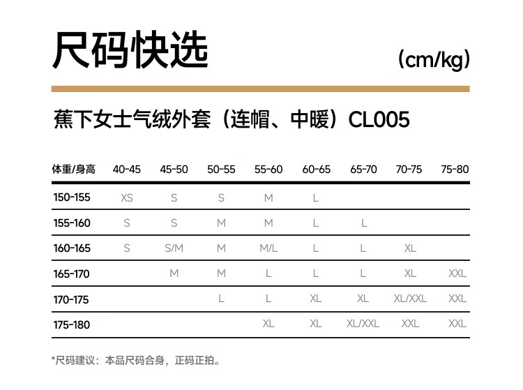 China (cm) 160-165/84-86 165-170 / 88-90 167-172 / 92-96 168-173 / 98-102 170-176 / 106-110