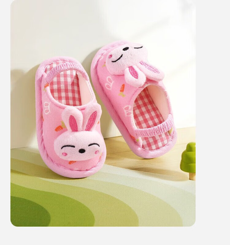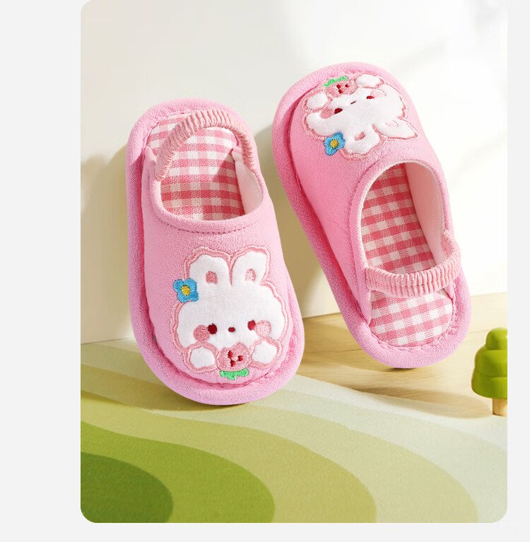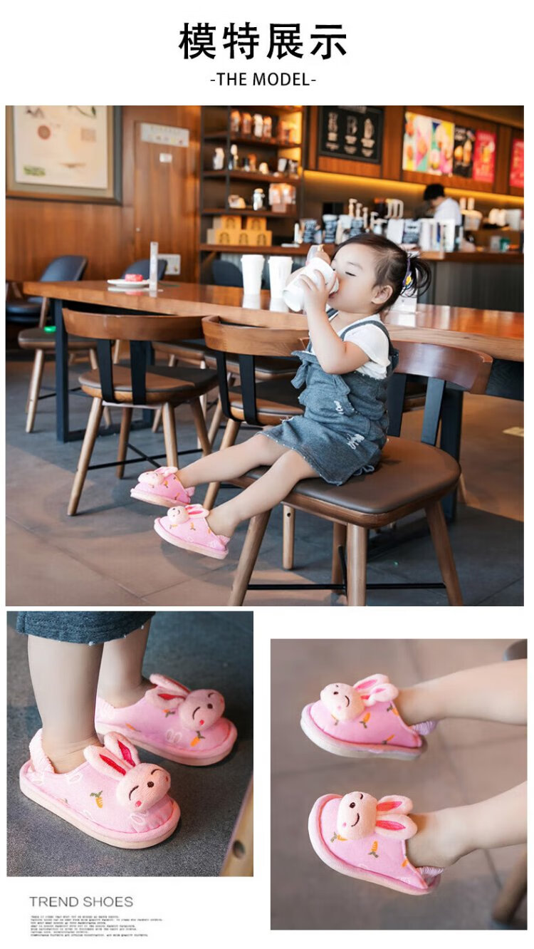 Tudouwu children's slippers baby cloth slippers boys and girls non-slip infant children home cotton slippers Rabbit 190 size