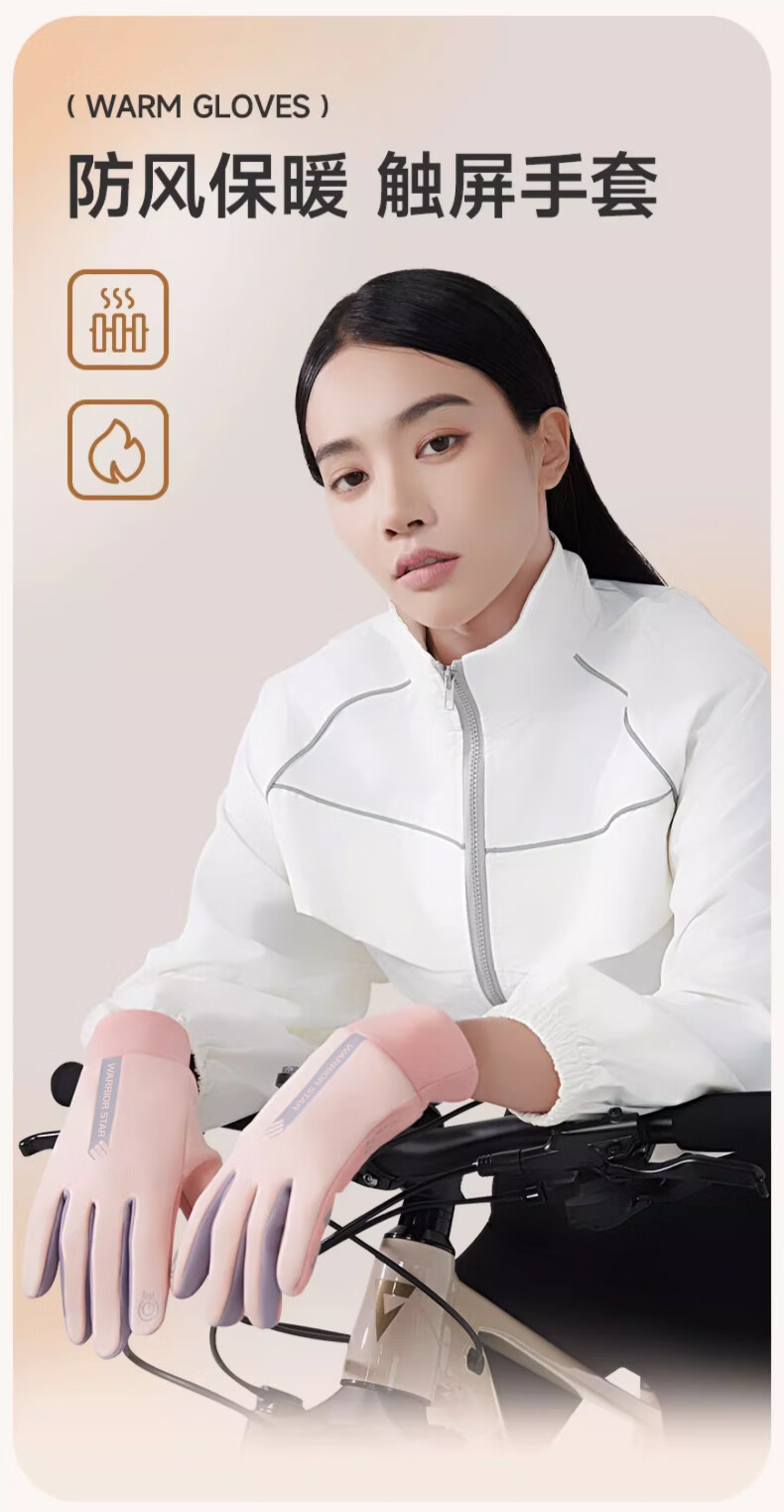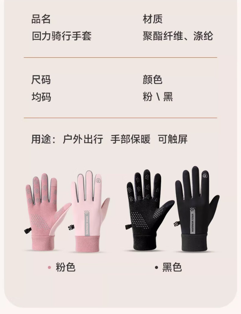 Pull-back gloves for women in autumn and winter, warm plus velvet, electric motorcycle and bicycle, cold wind, anti-slip, touch screen sports cotton gloves for men