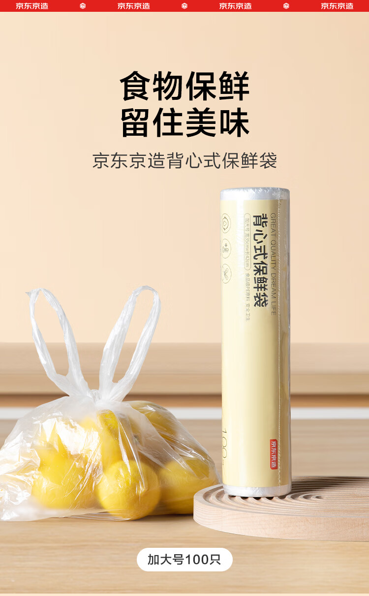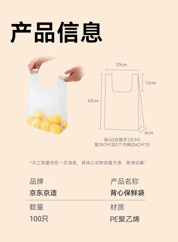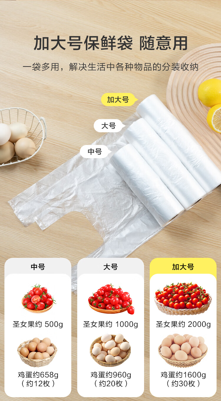 Made in Tokyo, vest fresh-keeping bag, food grade, large size, thickened plastic convenience bag, 35*42cm, 100 pieces