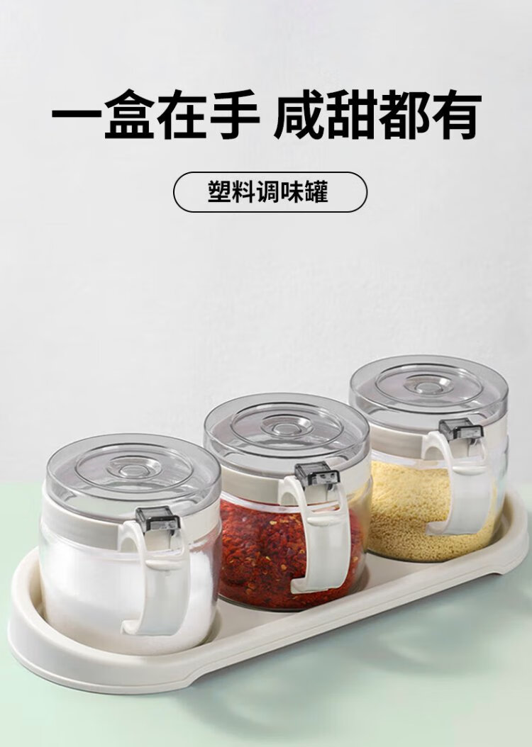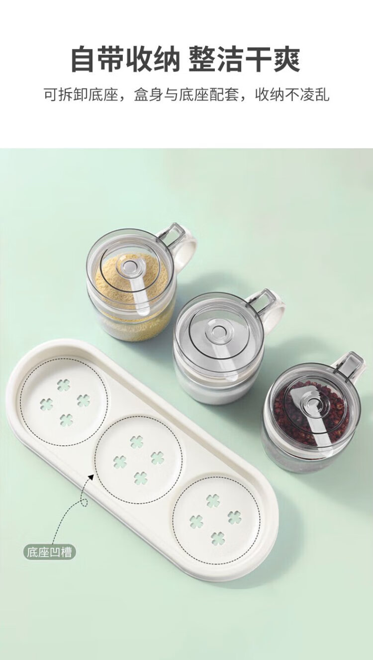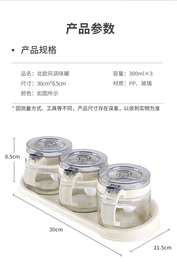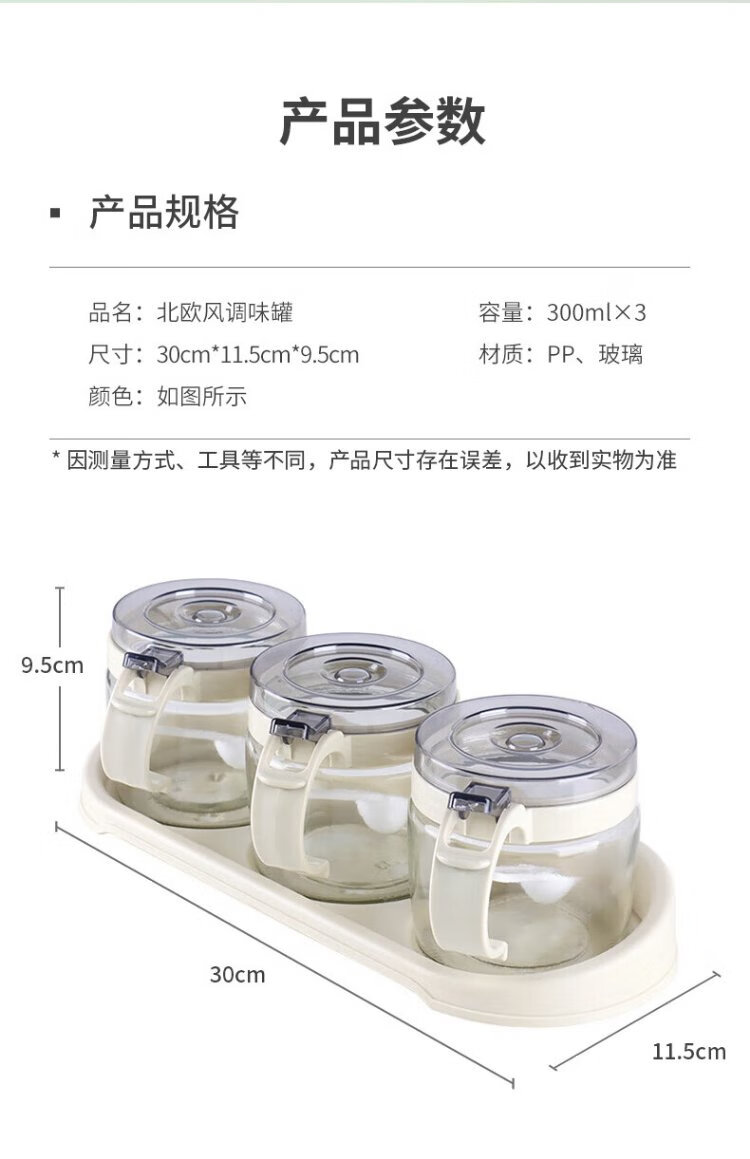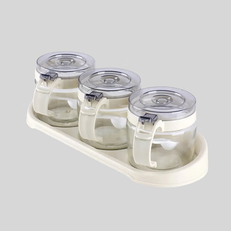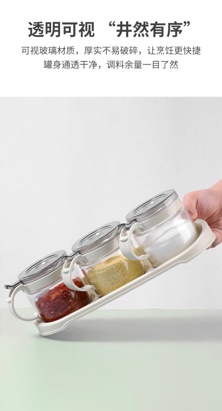 Mengting (MENGTING) seasoning box seasoning jar seasoning bottle household glass salt shaker 3-piece set (with spoon tray)