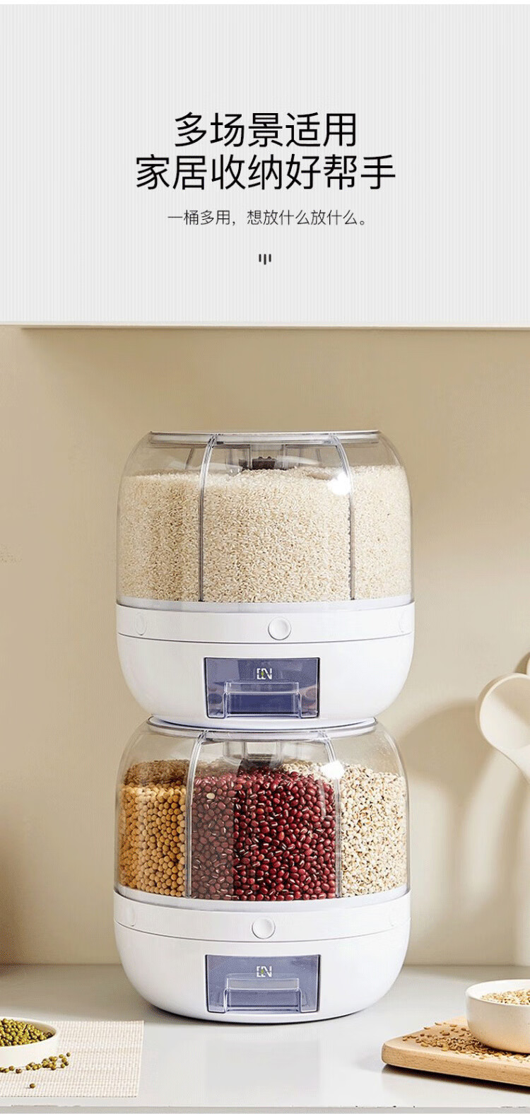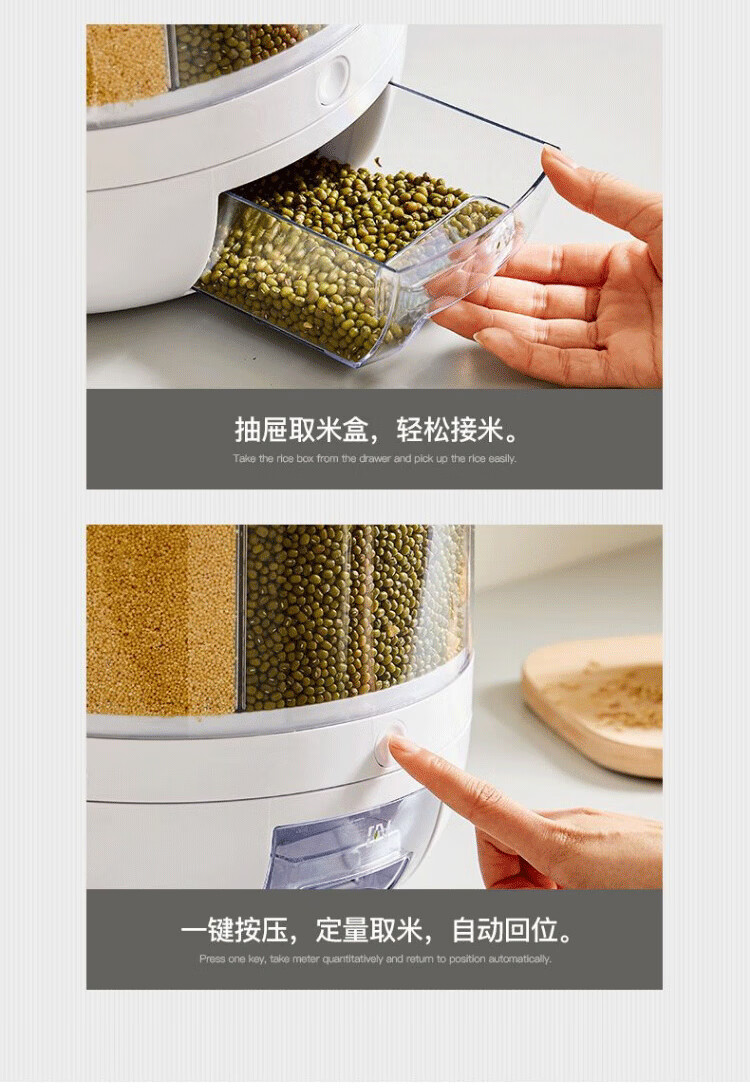 PAKCHOICE grain storage box, rice bucket, insect-proof and moisture-proof rice storage box, rotating push-type rice-out large-capacity storage box