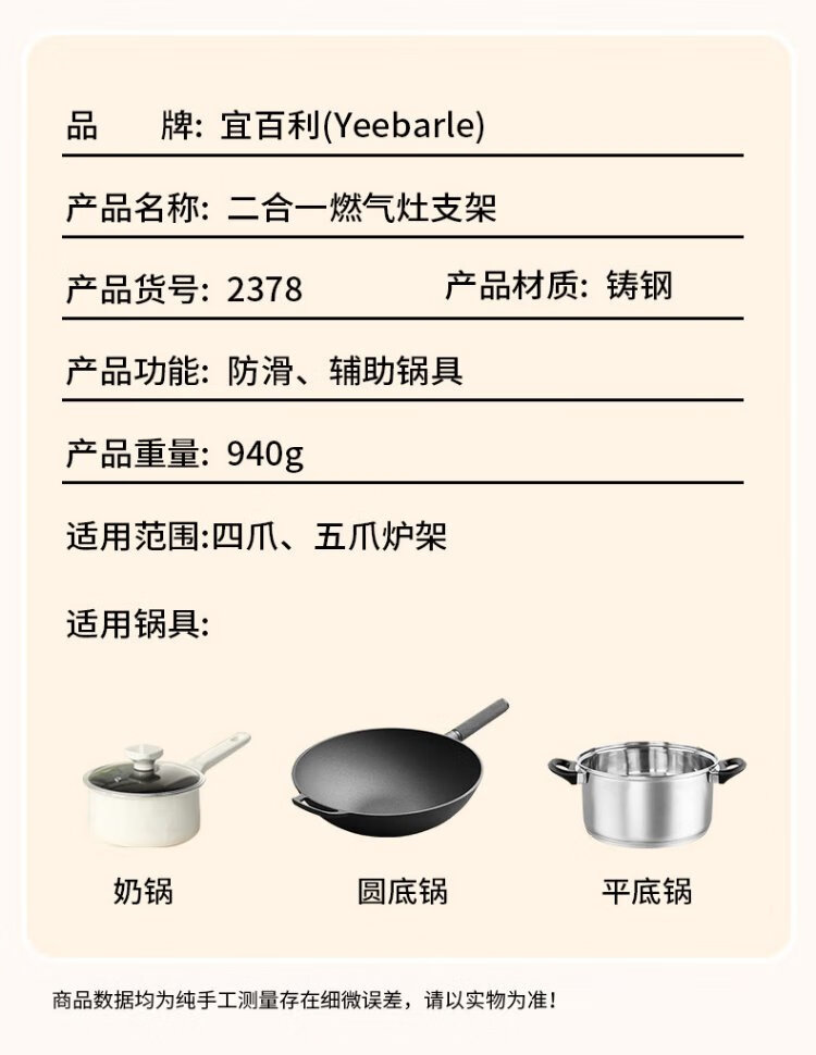 Yibaili gas stove bracket cast steel thickened gas stove bracket anti-slip stove stand support wok rack small milk pot two-in-one kitchen four-claw and five-claw universal stove shelf 2378