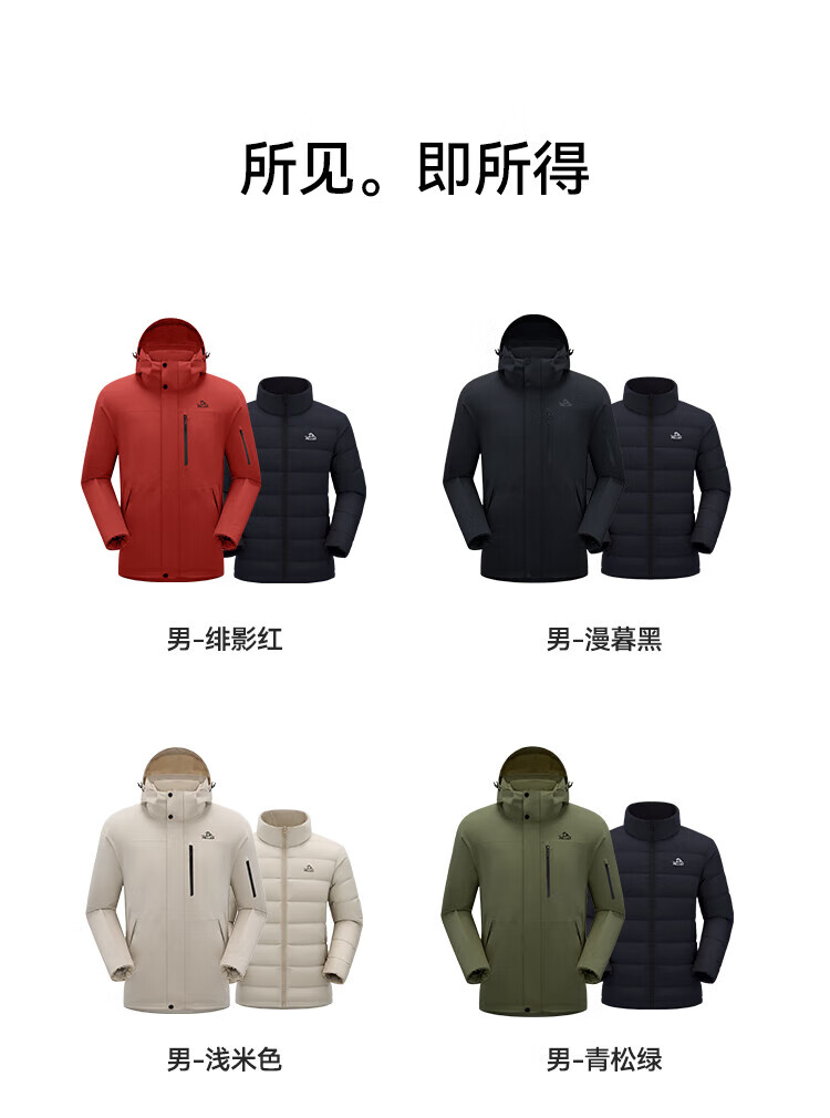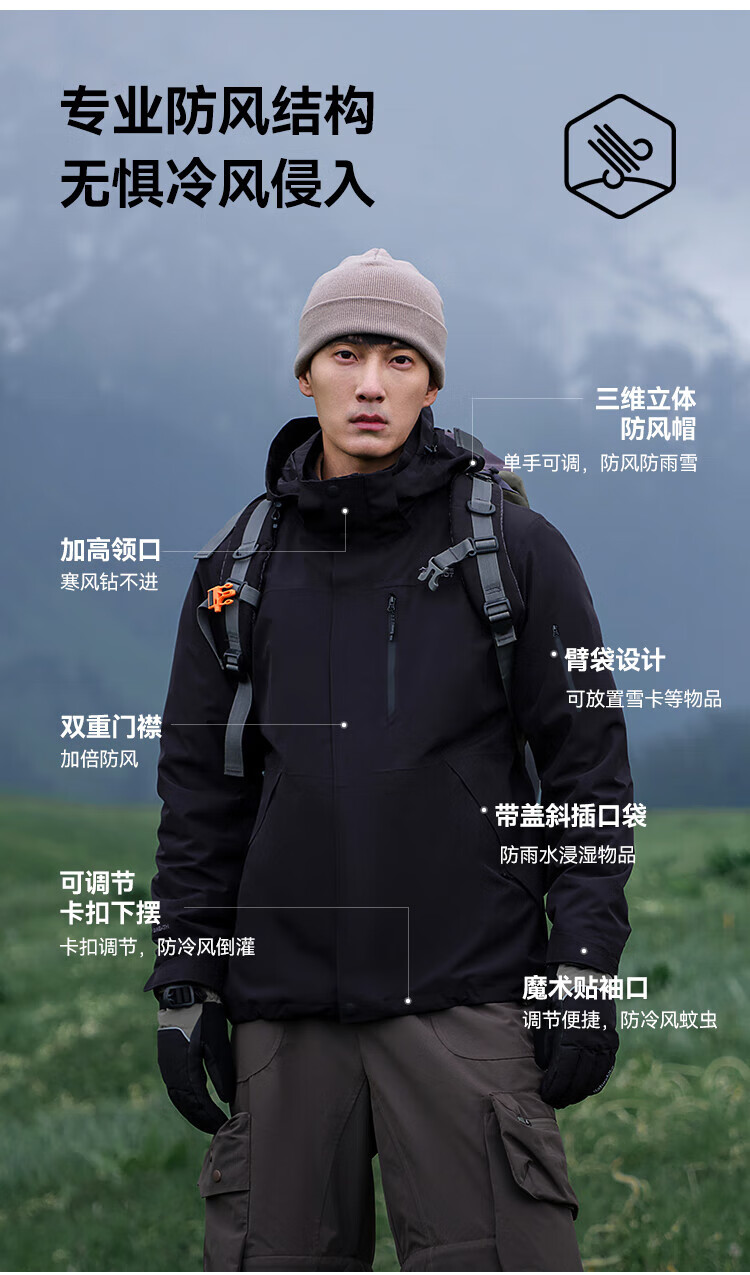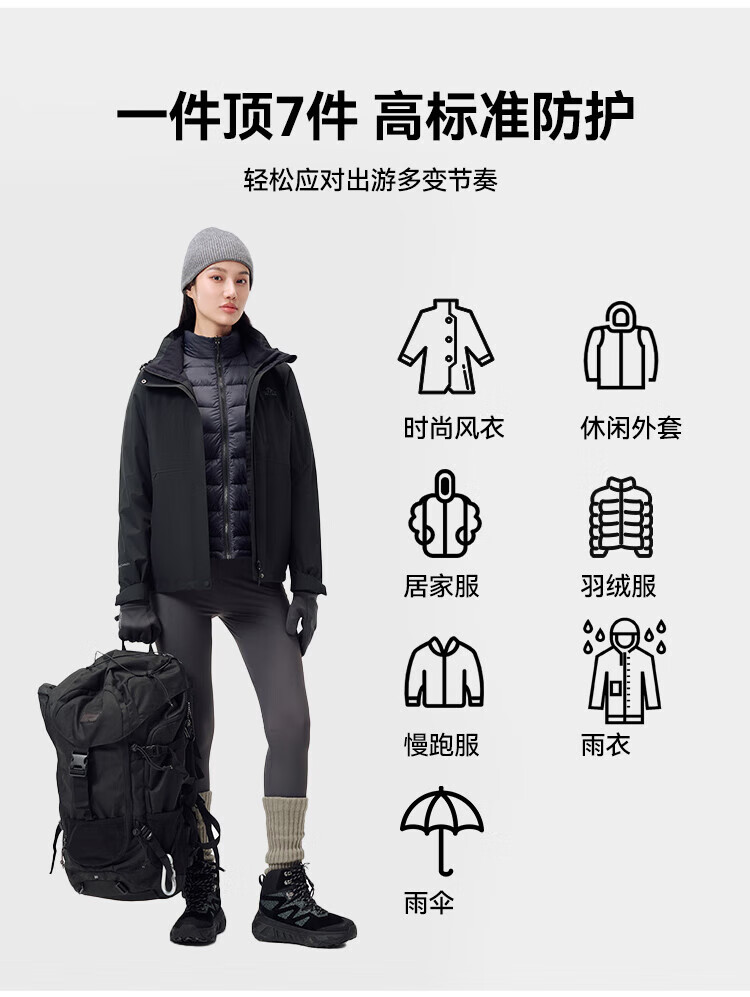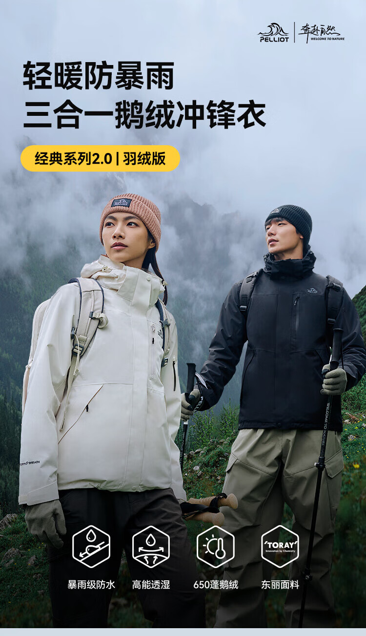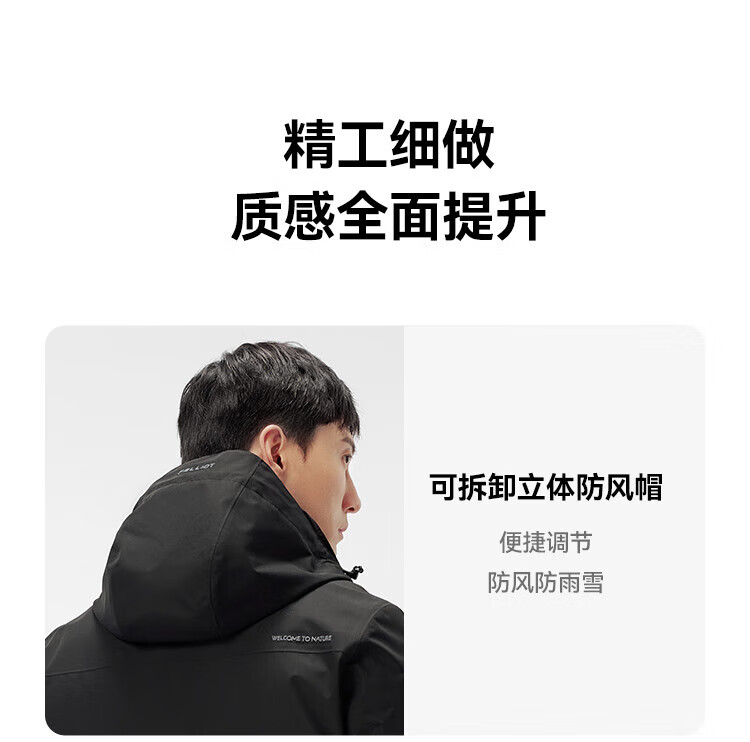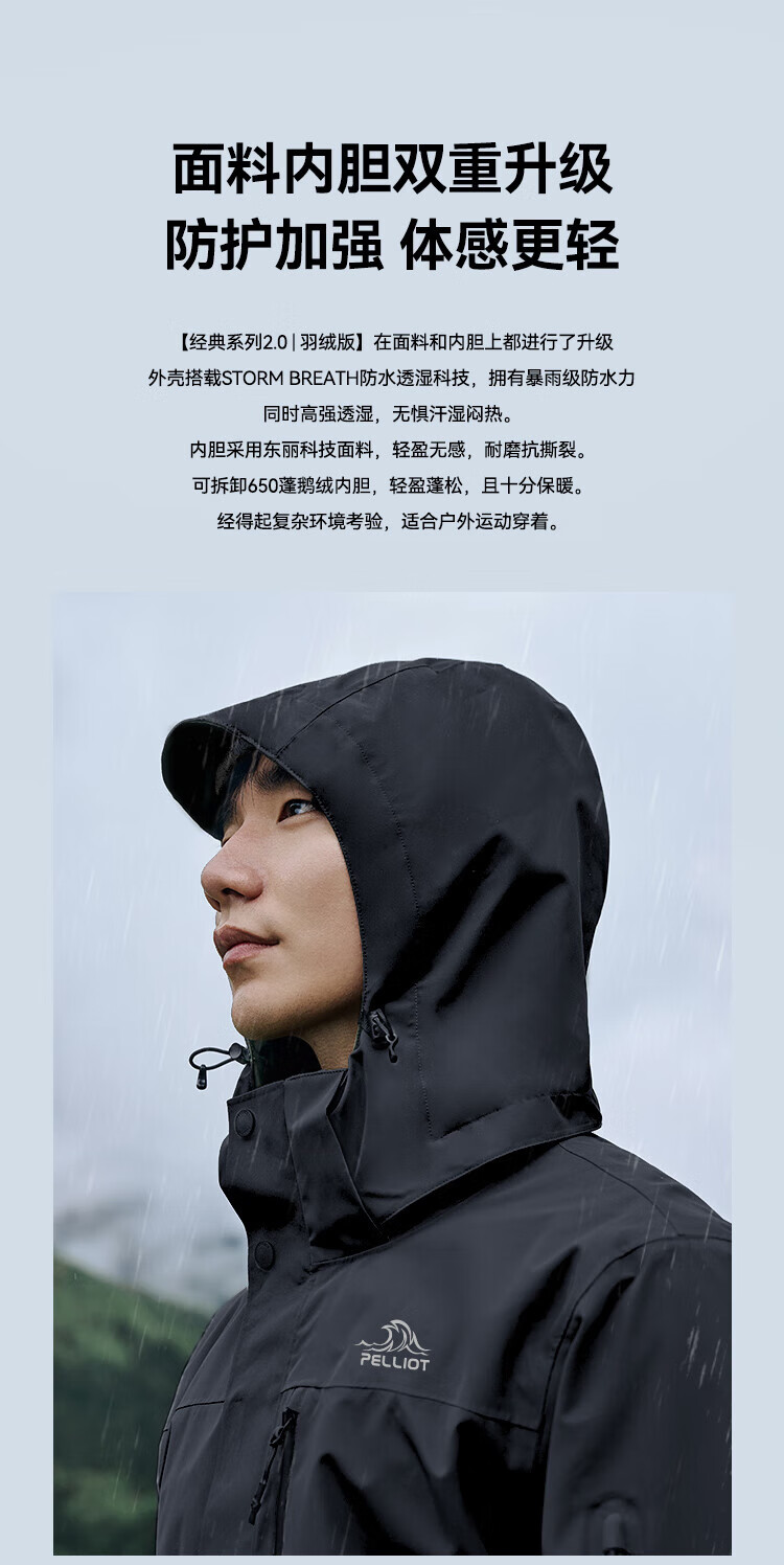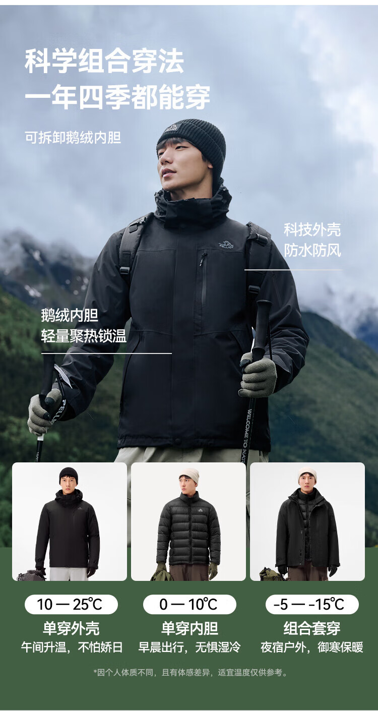 Pelliot Mountain Classic 2.0 Down Functional Three-in-One Jacket Goose Down Warm Jacket 114401041 Black XL