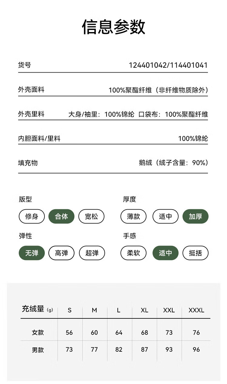 China (cm) 165 / 88-90 170 / 96-98 175 / 108-110 180 / 118-122 185 / 126-130