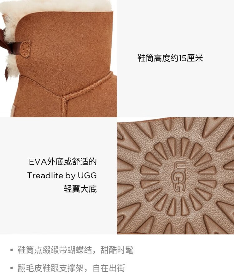 UGG Autumn Women's Flat Classic Casual Bow Short Boots Snow Boots 1016501CHE | Maroon 37