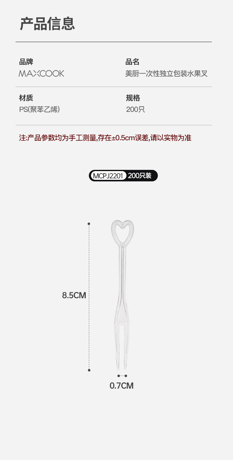 MAXCOOK fruit forks, 200 pieces, disposable forks, food grade, children's dessert cake fruit plate skewers MCPJ2201