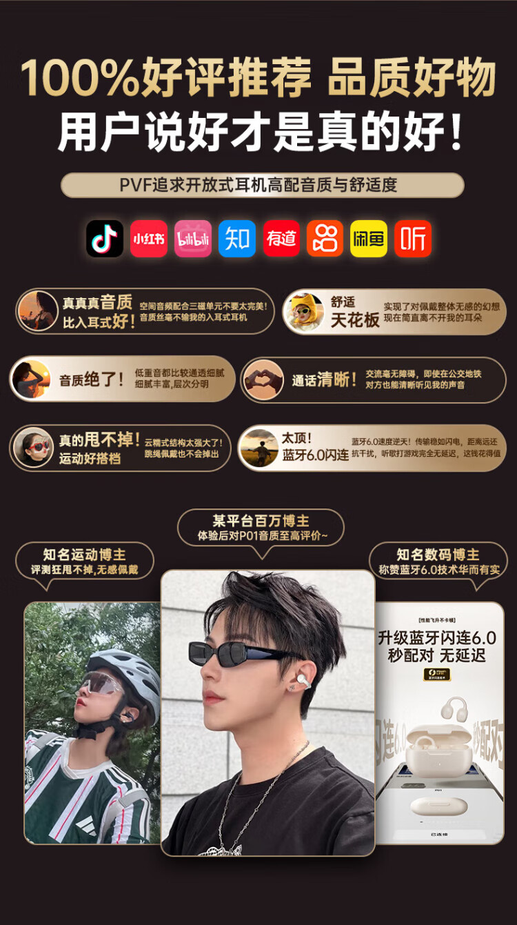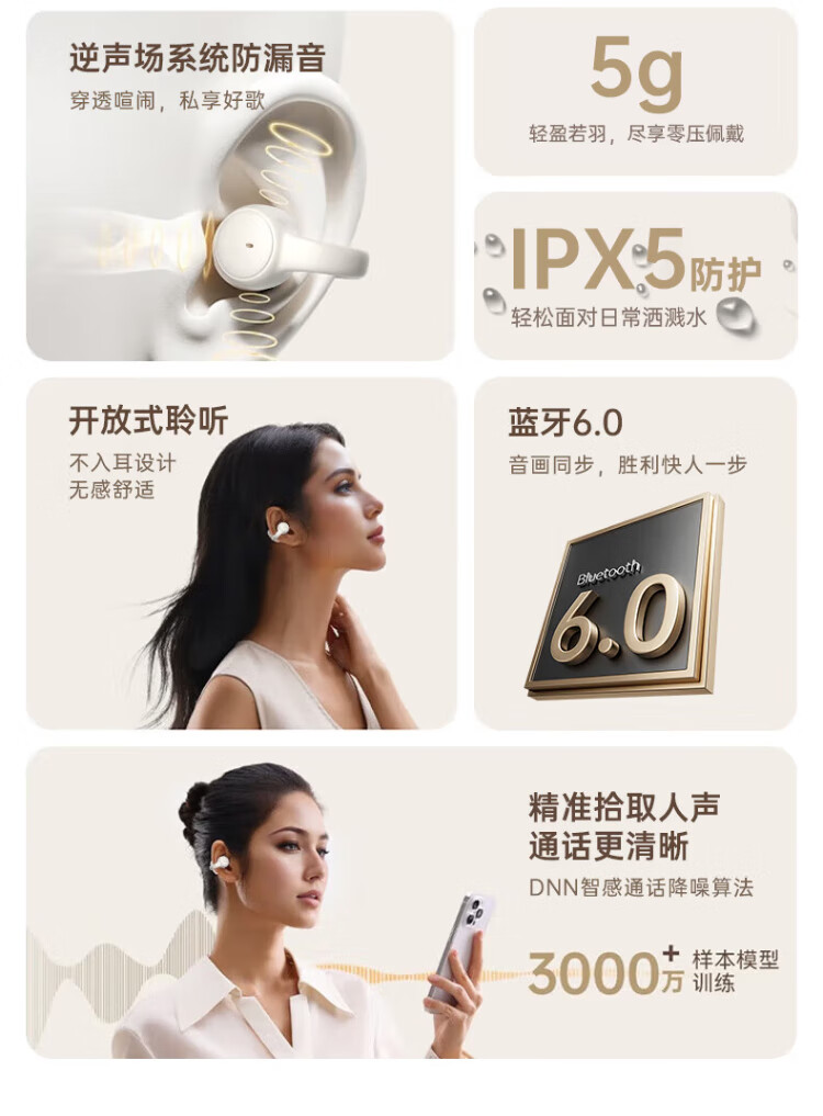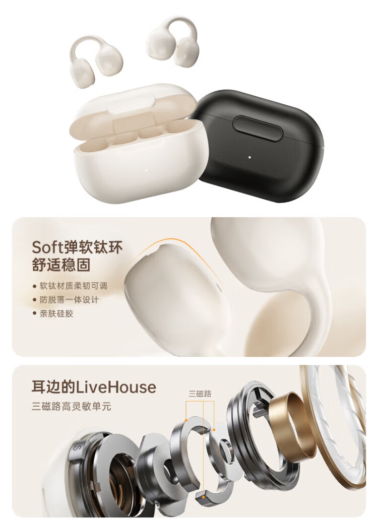PVF 2025 new style | Berlin Voice Bluetooth headset ear clip type suitable for Sony bone conduction concept open sports running wireless call noise reduction does not enter the ear and hang the ear