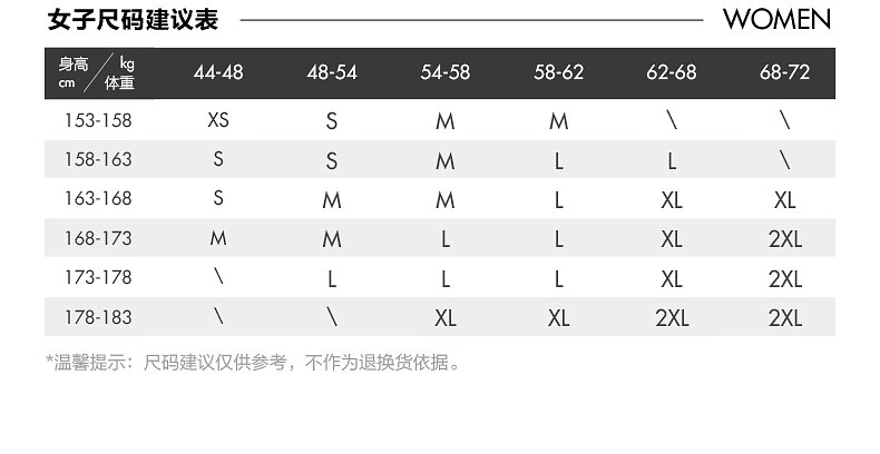 China (cm) 160-165/84-86 165-170 / 88-90 167-172 / 92-96 168-173 / 98-102 170-176 / 106-110
