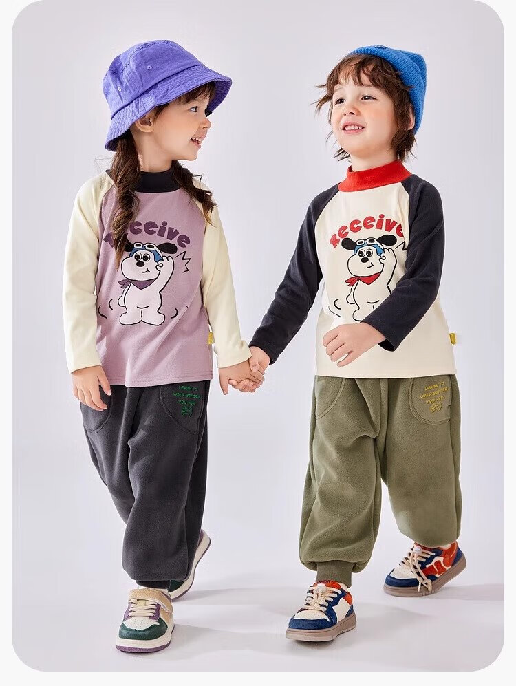 Dudu baby velvet T-shirt autumn and winter boys thickened bottoming shirt children's tops fashionable girls and children's clothing charcoal gray 90