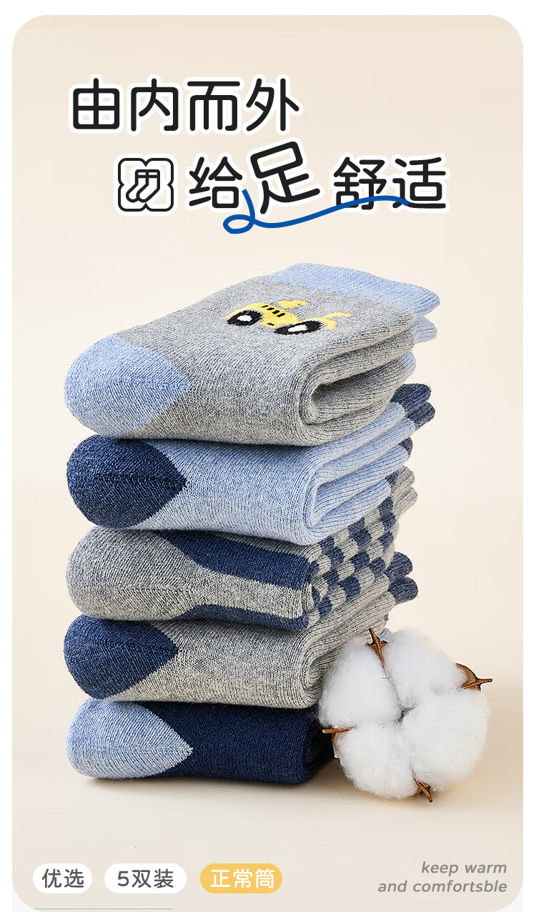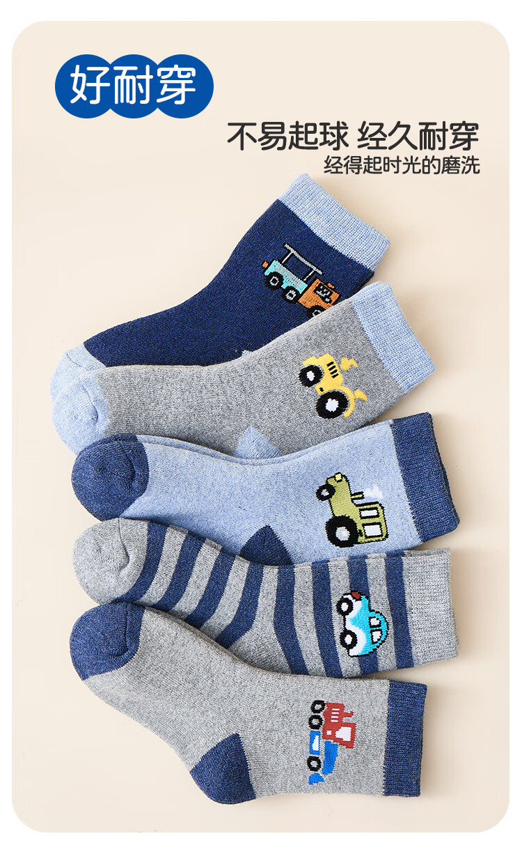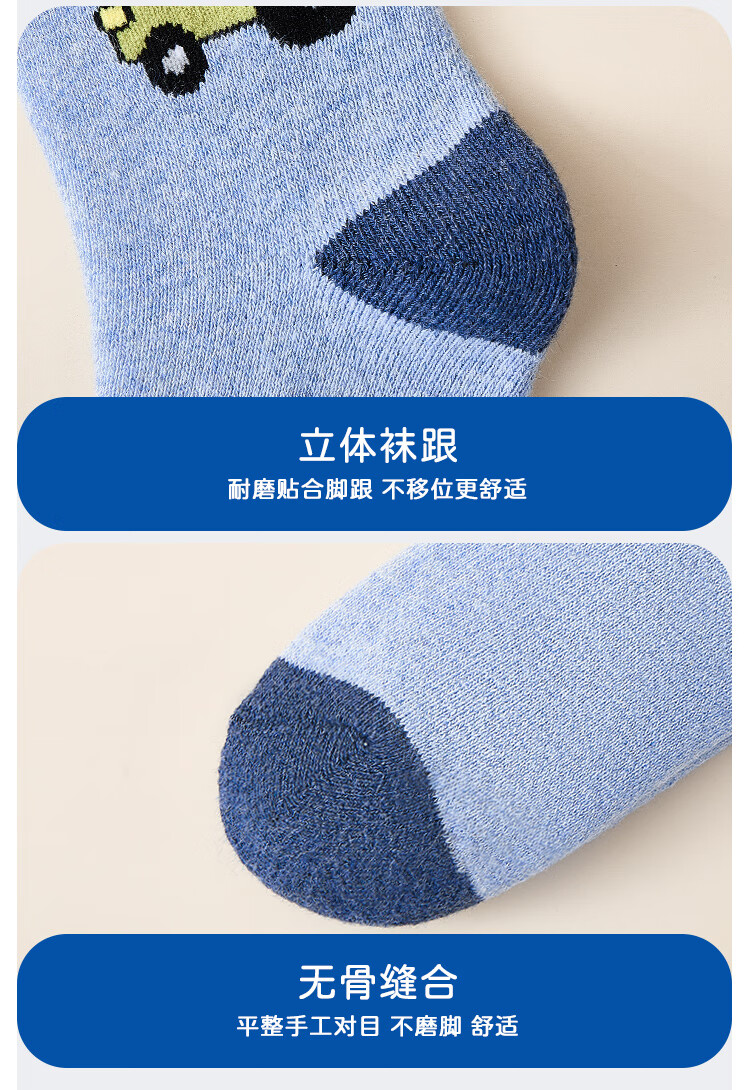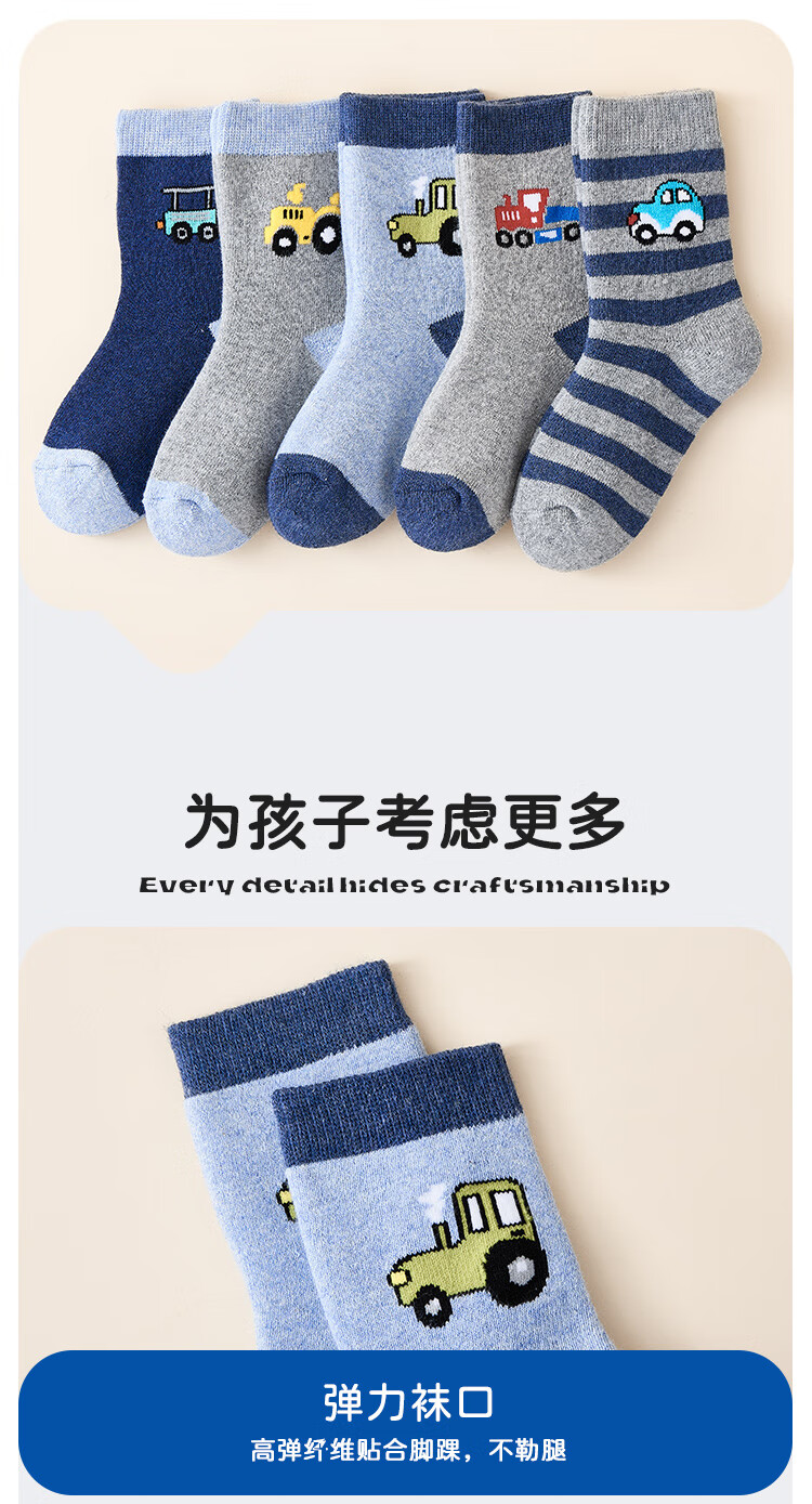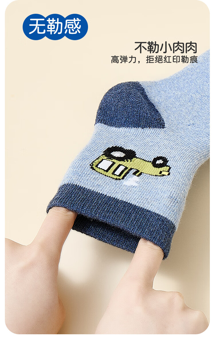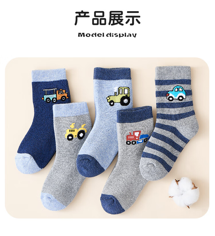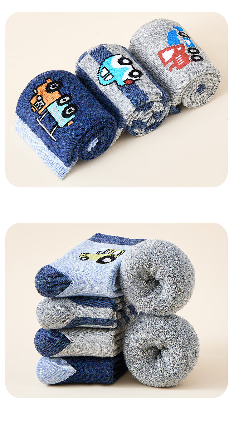 猫人儿童袜子男童秋冬加绒加厚保暖袜子中大童宝宝毛圈袜 小汽车 XL