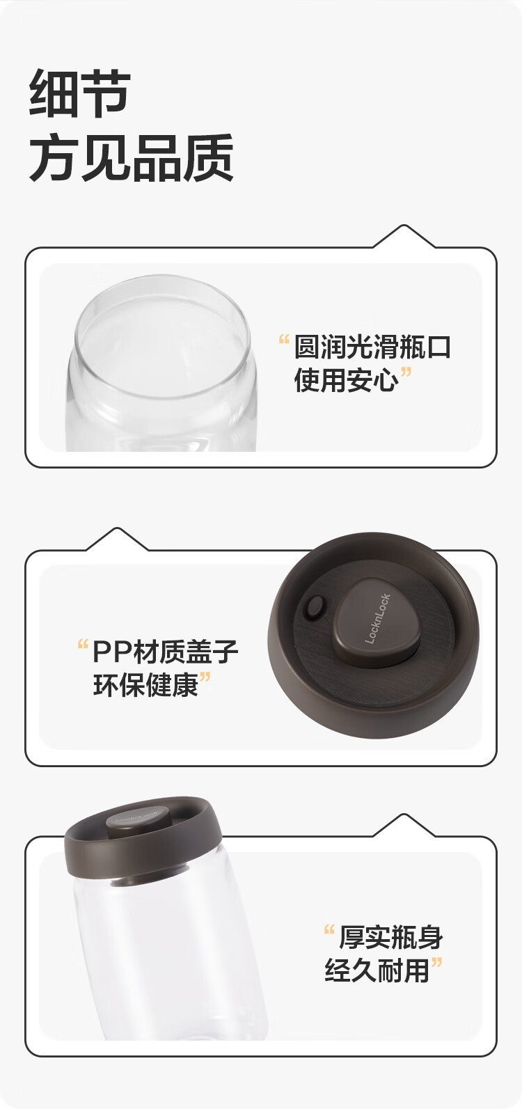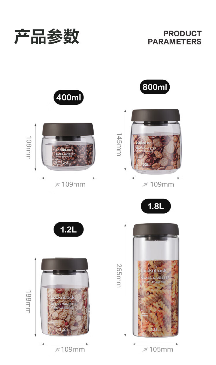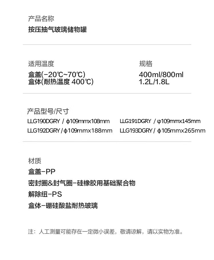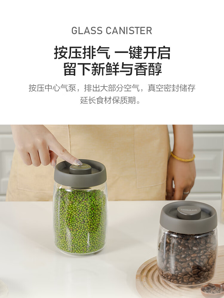 LOCK & LOCK press-pump glass sealed jar cereals tea kitchen dry goods storage jar milk powder jar 800ML gray