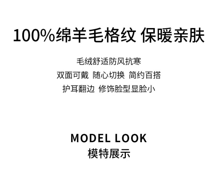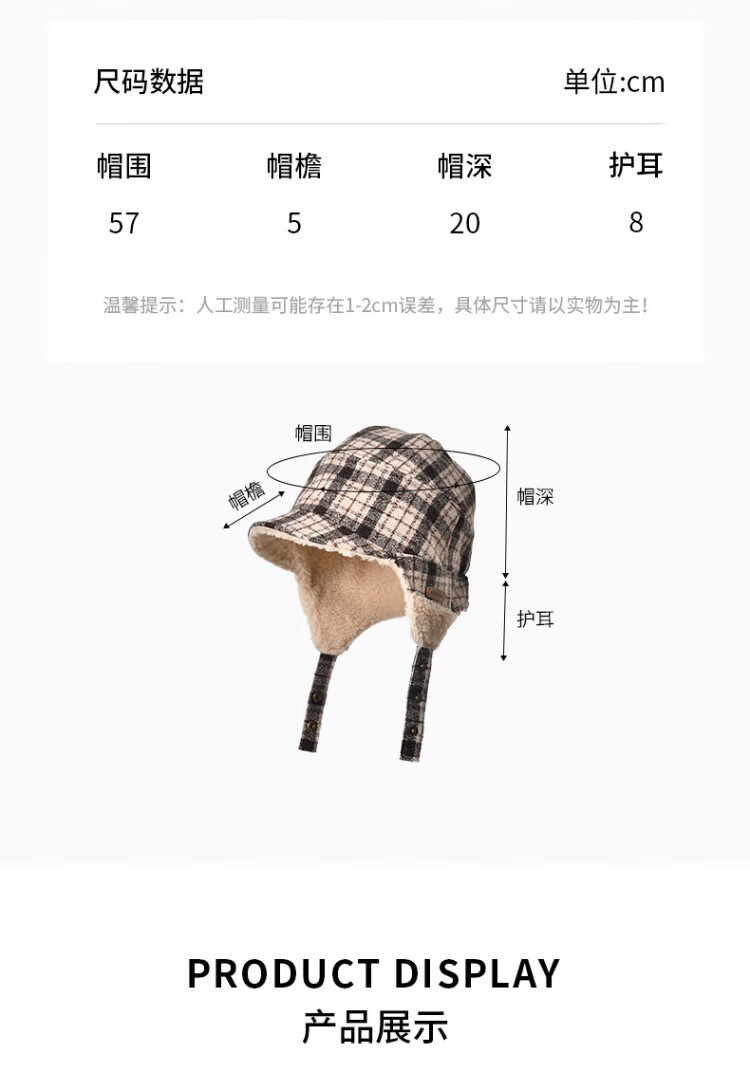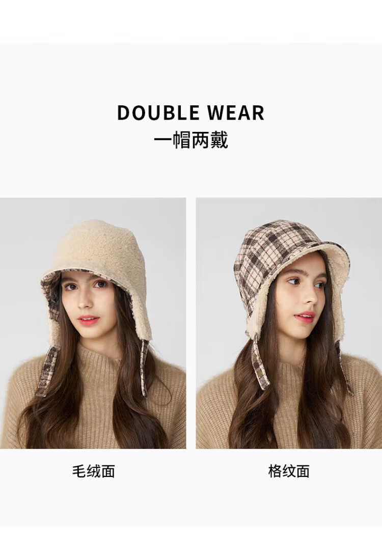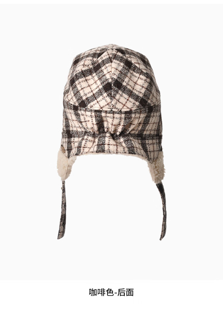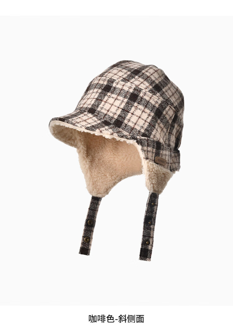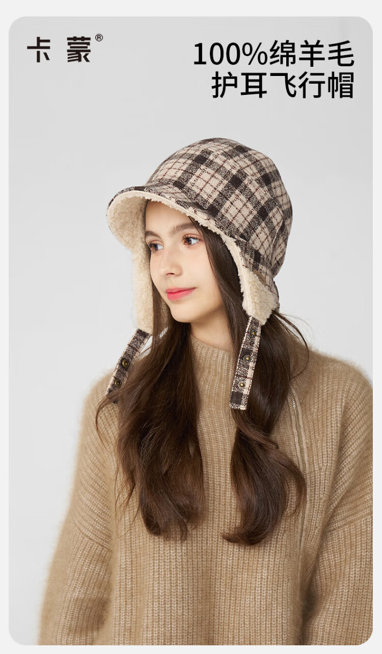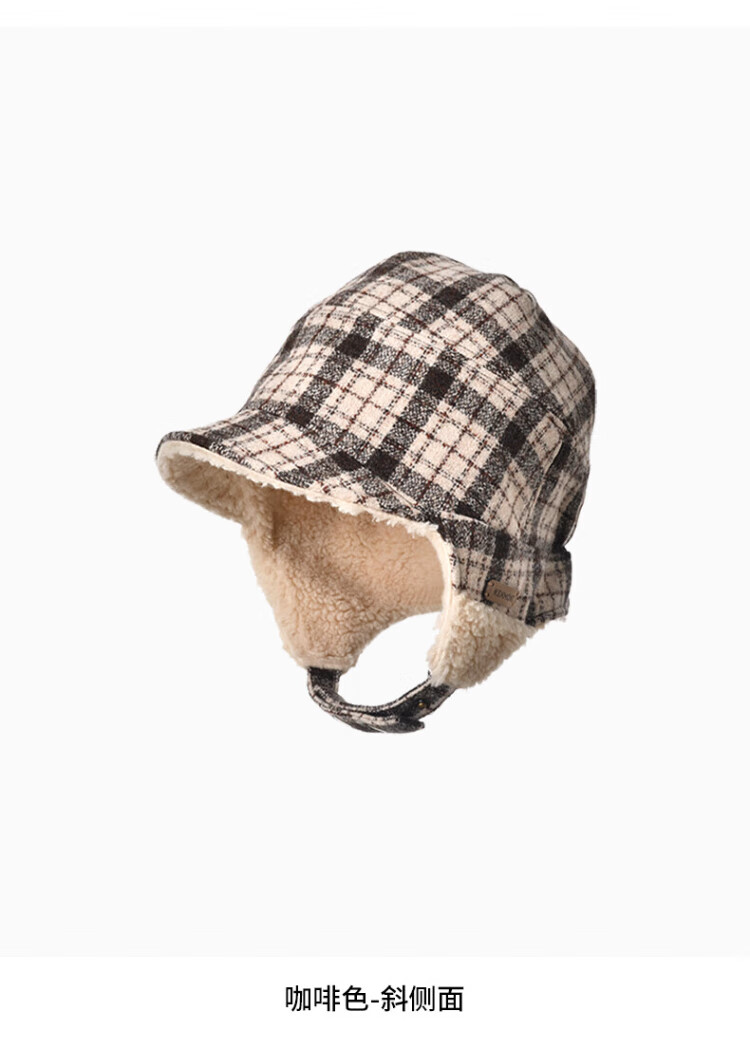 Kenmont wool plaid ear protection beret women's lamb velvet thickened warm double-sided peaked cap km-5264
