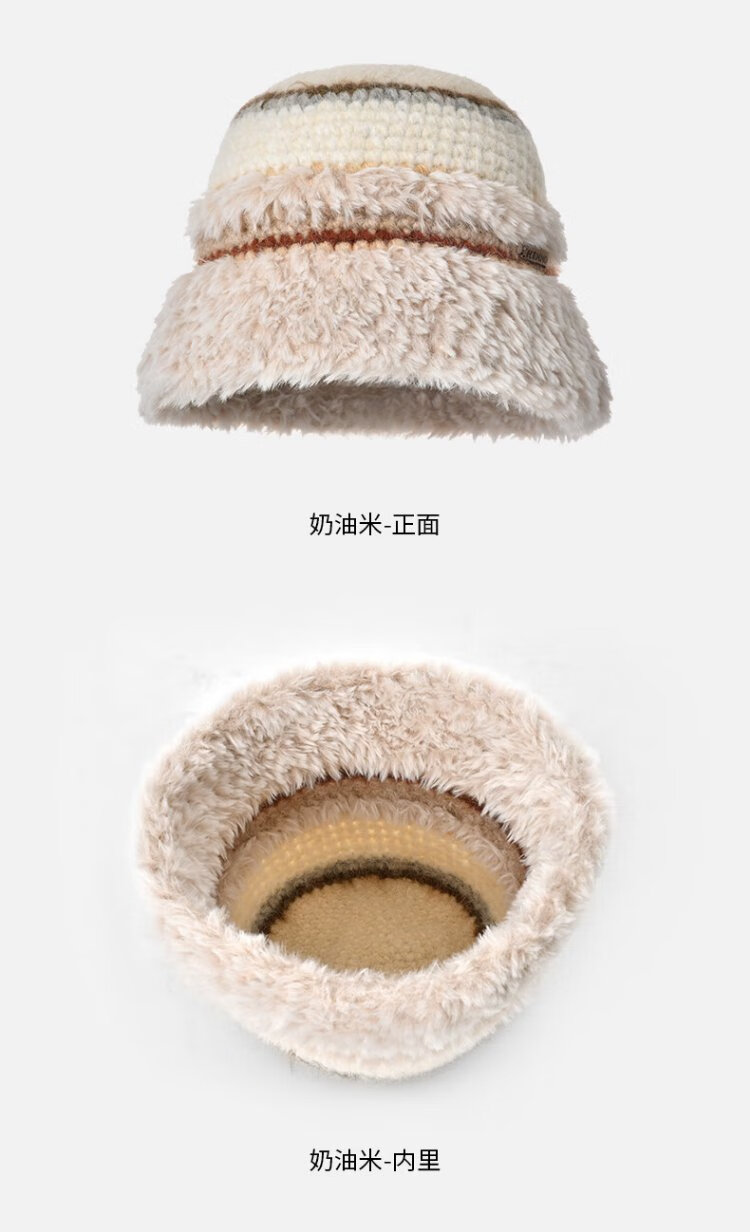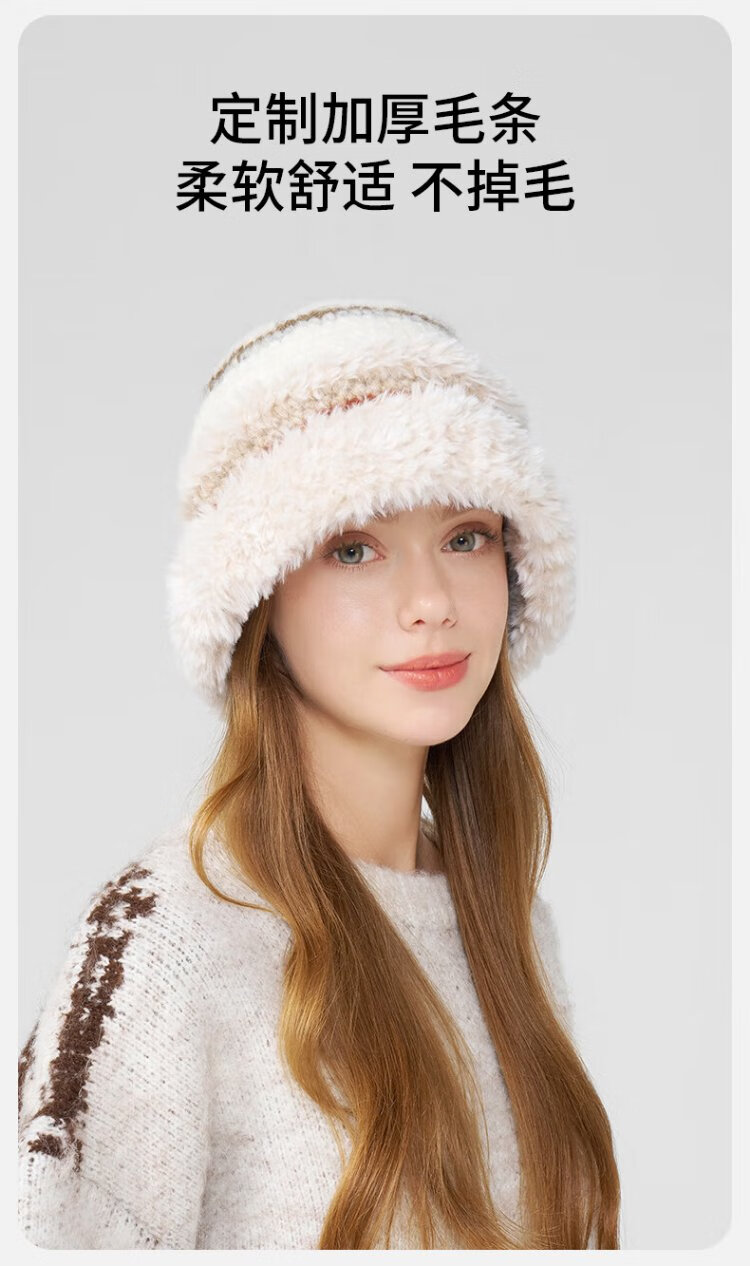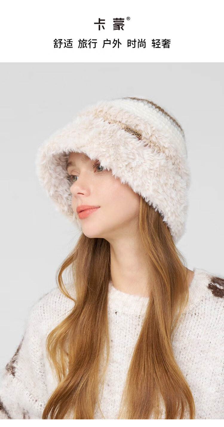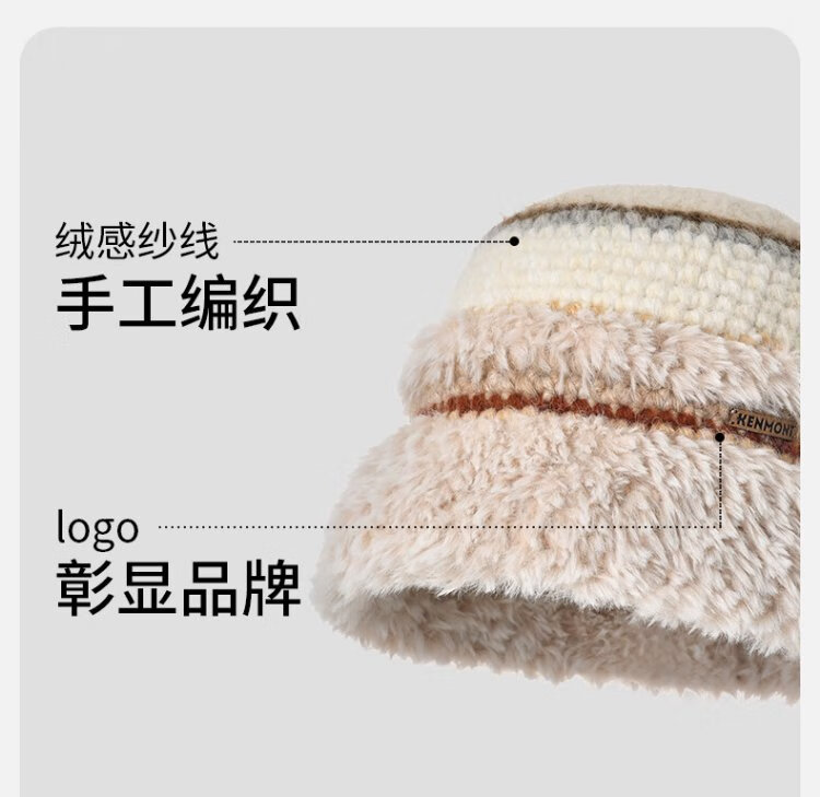 Kenmont hand-woven lamb velvet wool basin hat for women, foldable and deepened ear protection fisherman hat, showing a small face km-9524