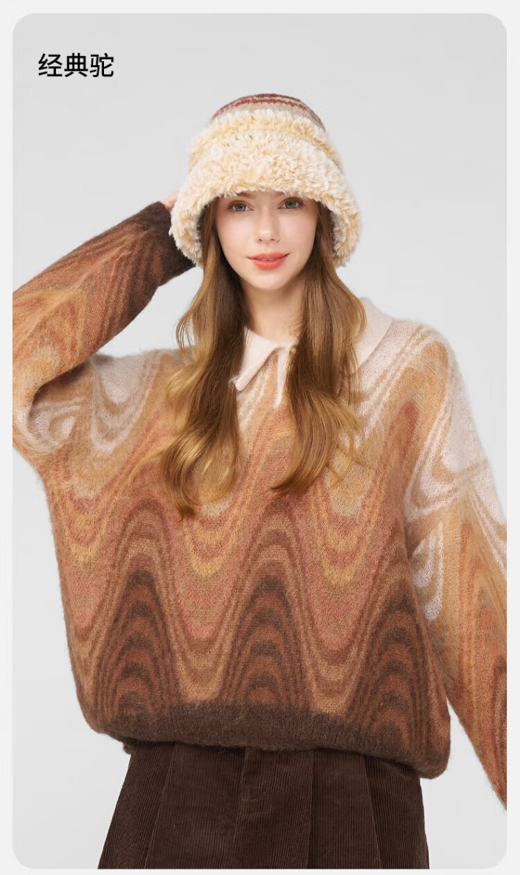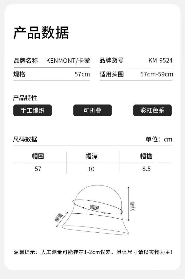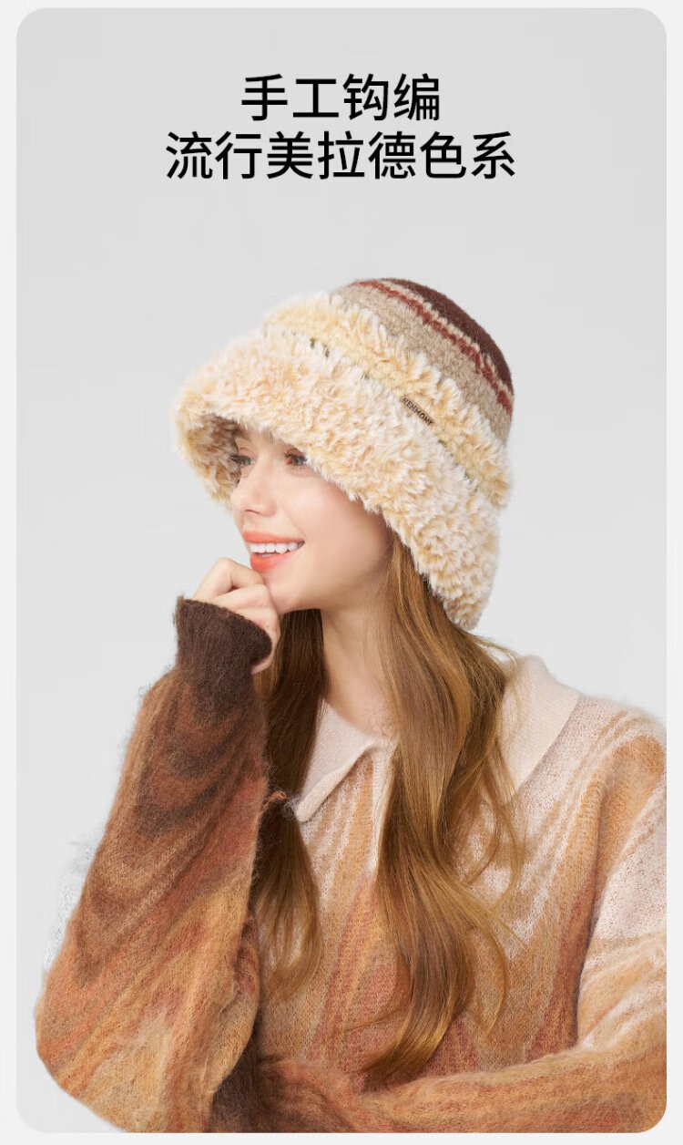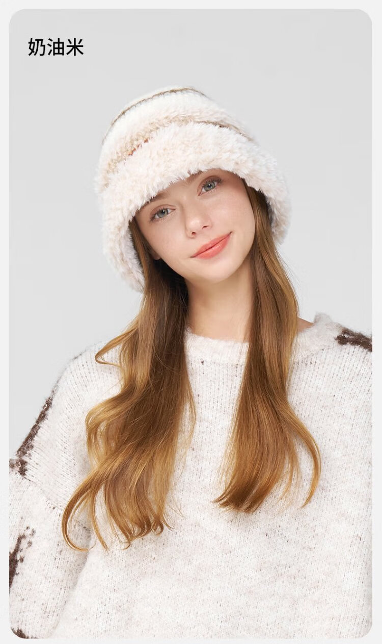 Kenmont hand-woven lamb velvet wool basin hat for women, foldable and deepened ear protection fisherman hat, showing a small face km-9524
