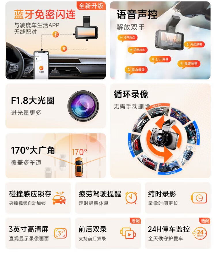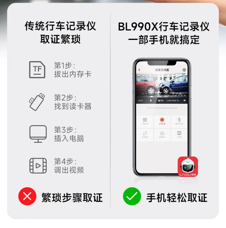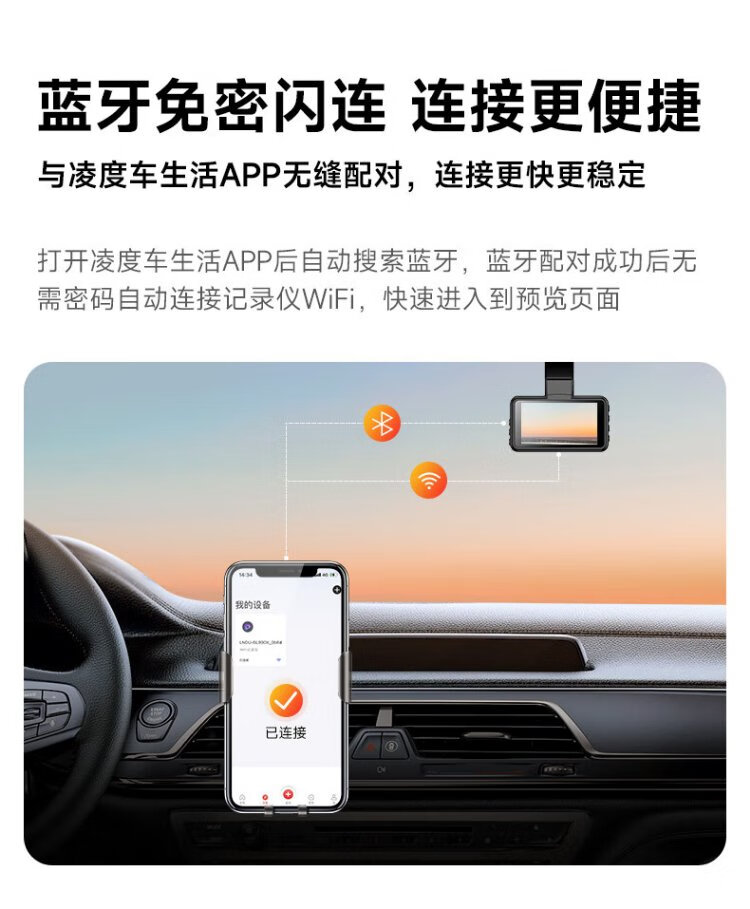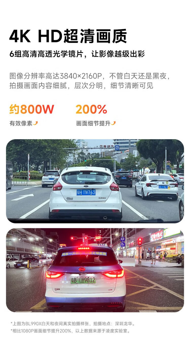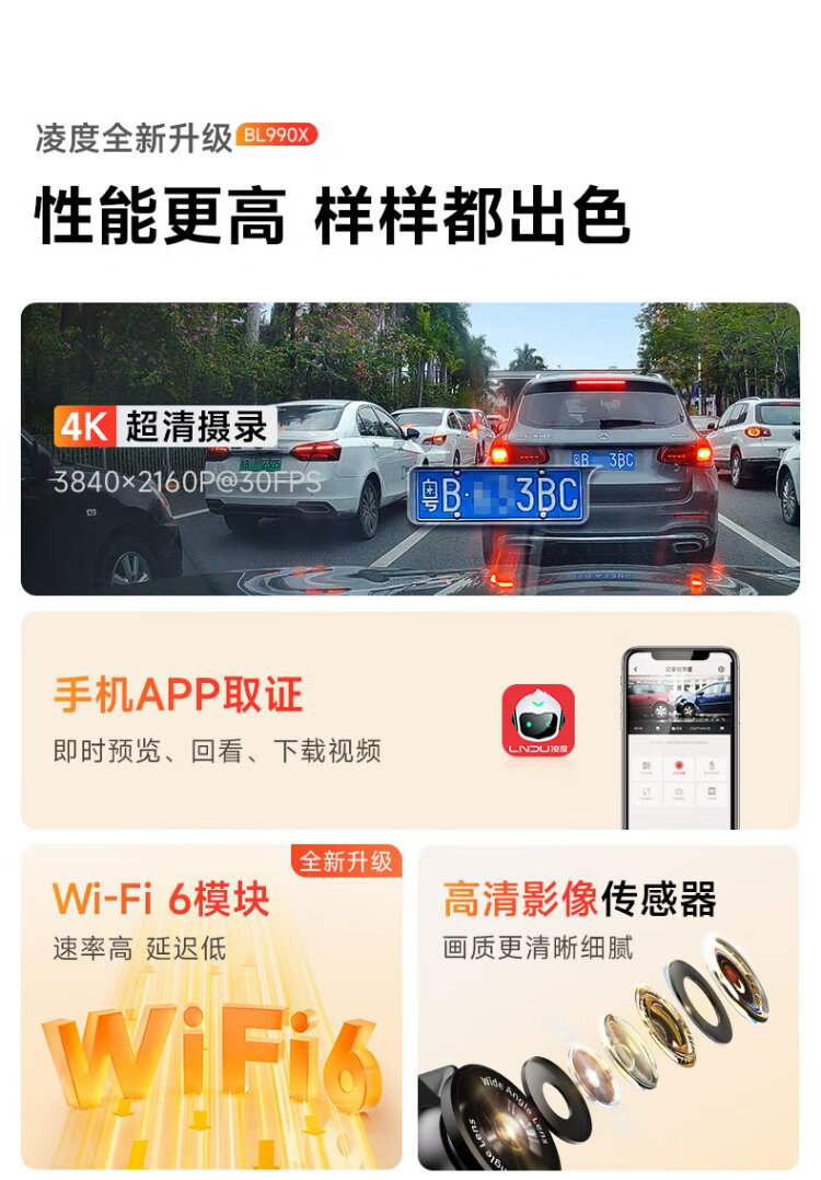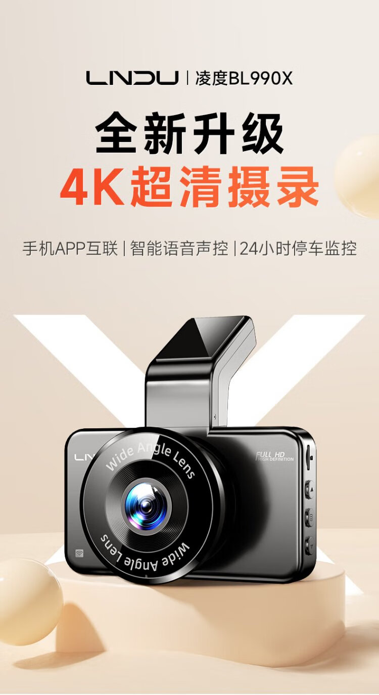 Lingdu driving recorder BL990X 4K HD mobile phone wireless interconnection hidden wire-free vehicle parking monitoring