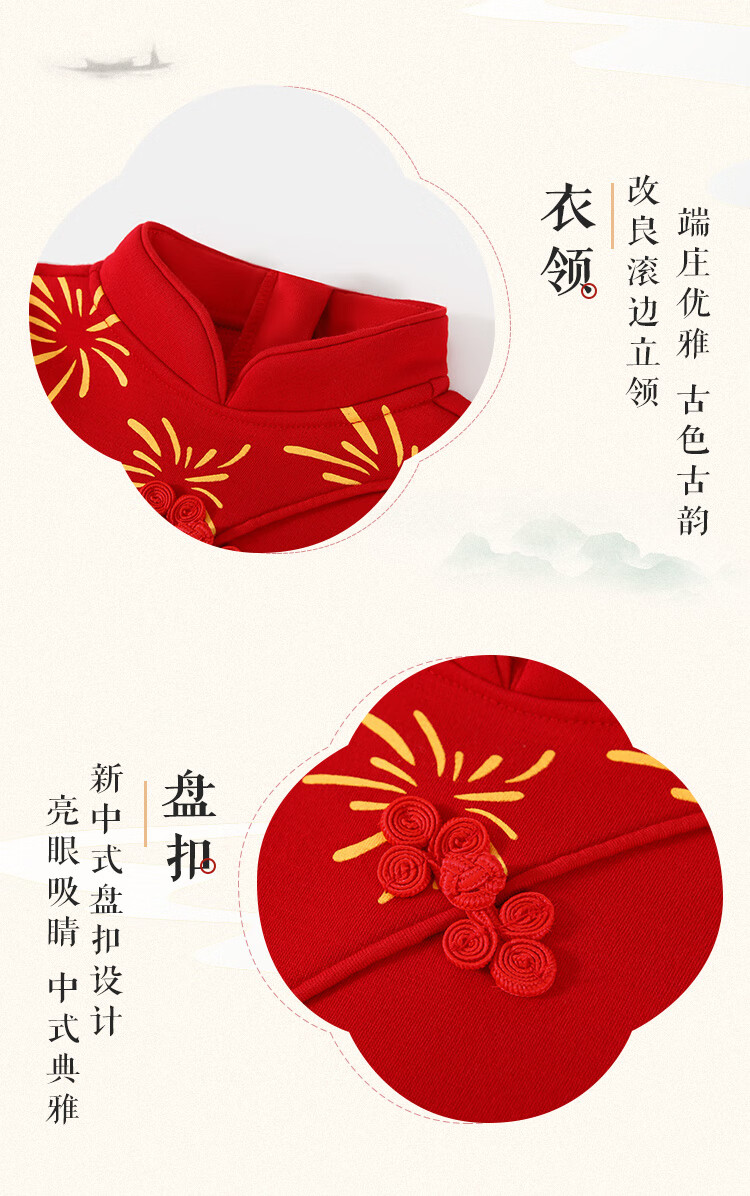 Classic Teddy Classic Teddy Girls Dress Children's Hanfu Chinese-style Dress Chinese New Year's Clothing Big Red 120