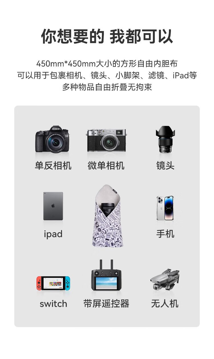 Green giant energy (llano) camera foldable cloth magic cloth wrapped cloth hundred patch cloth p-person cosmetic bag suitable for Canon Nikon Sony Fuji SLR mirrorless switch portable inner bag black and white graffiti