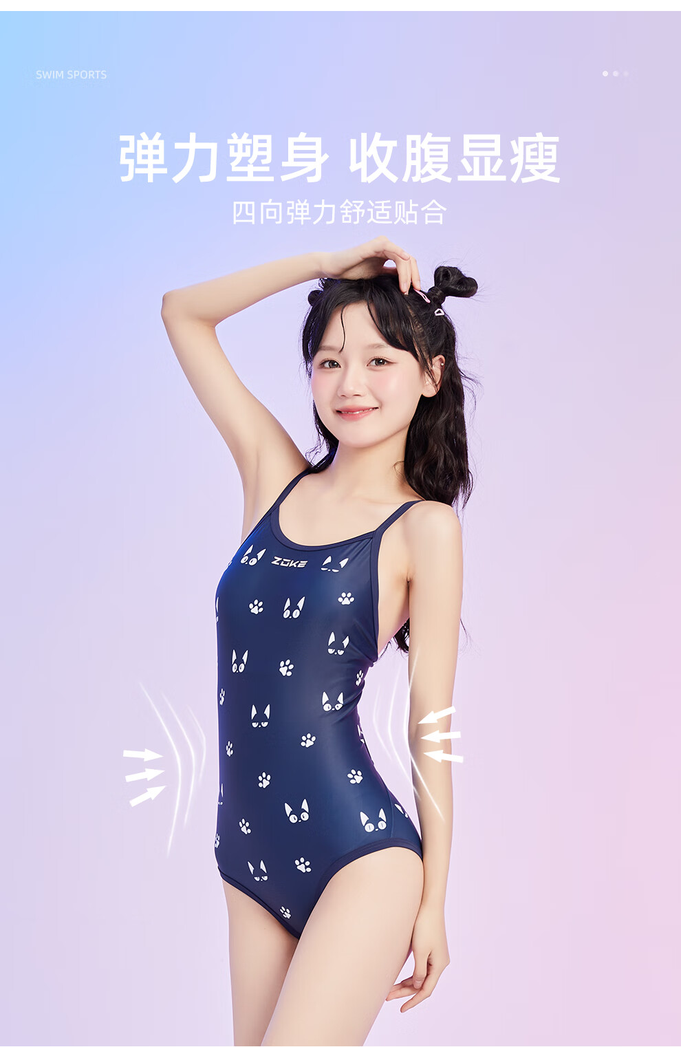 ZOKE women's casual one-piece triangle swimsuit professional racing sports hot spring swimsuit female 123501135 dark green L