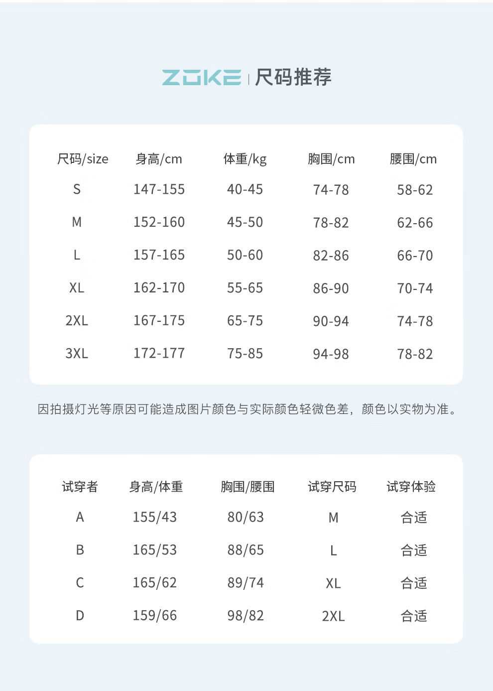 China (cm) 160-165/84-86 165-170 / 88-90 167-172 / 92-96 168-173 / 98-102 170-176 / 106-110