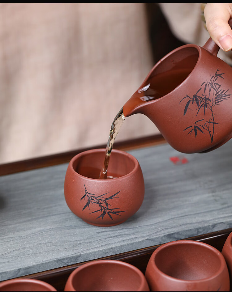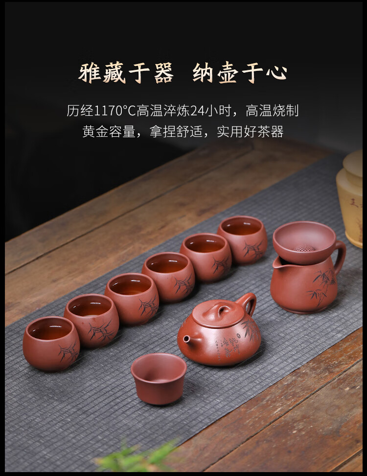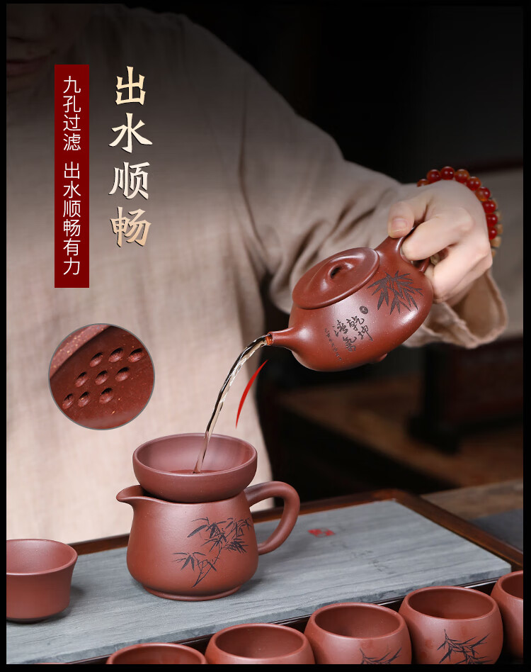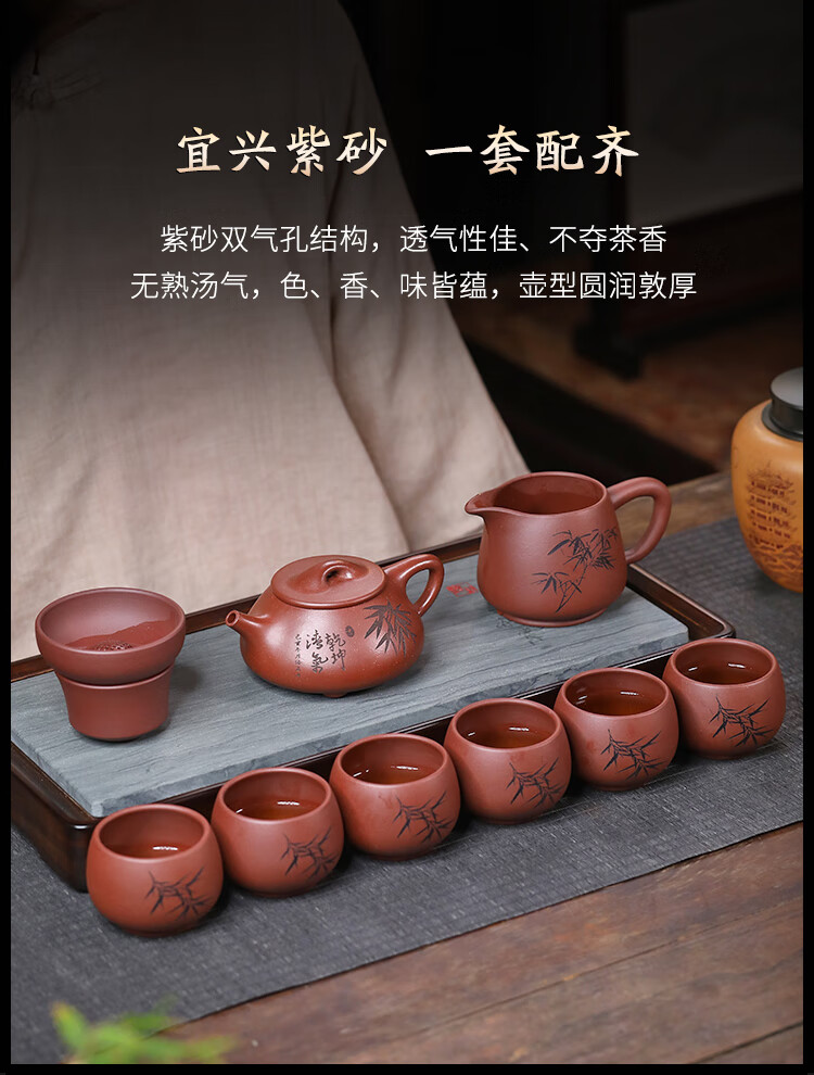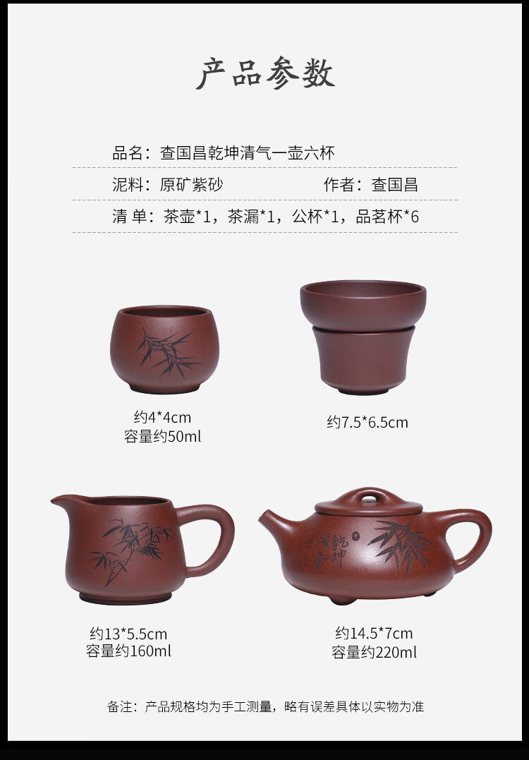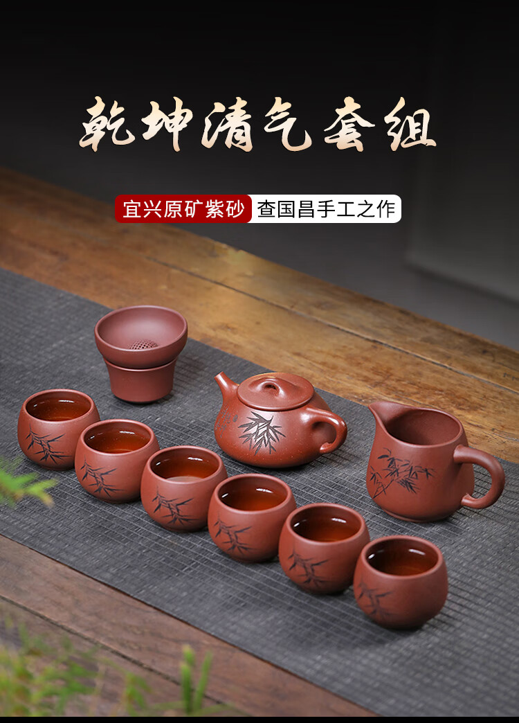 Qianshoutang teacher Zha Guochang Yixing original ore purple sand set purple sand pot tea set Kung Fu tea set Qiankun Yiqi purple sand set
