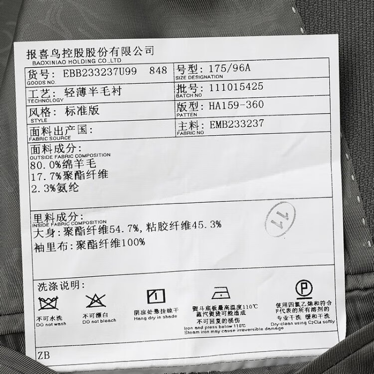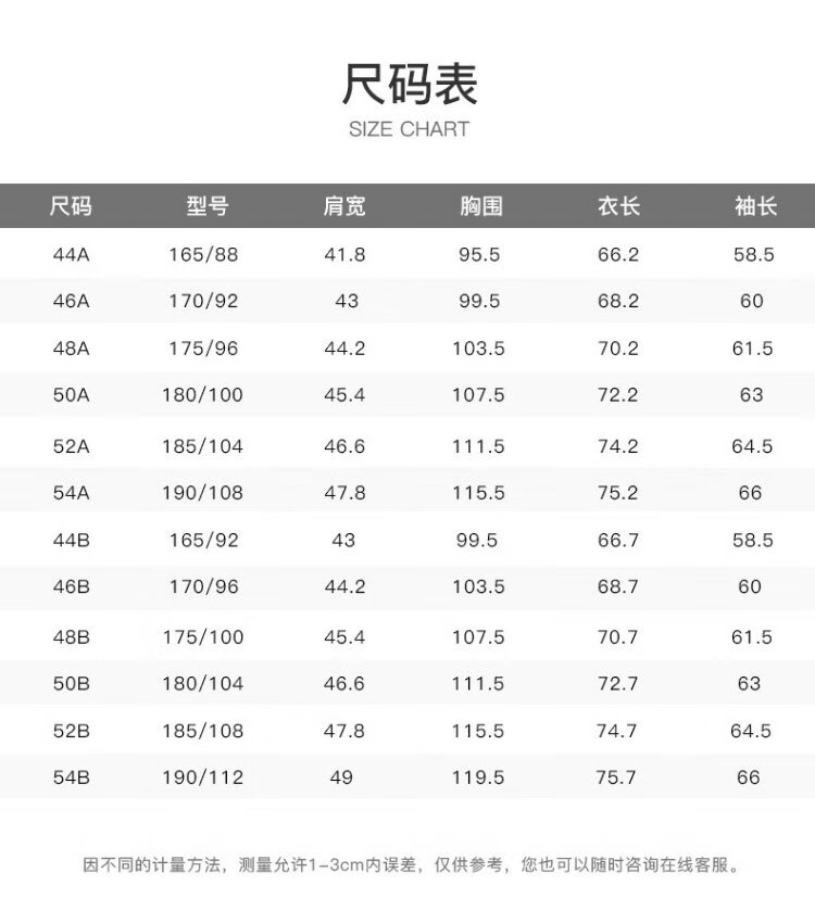 China (cm) 165 / 88-90 170 / 96-98 175 / 108-110 180 / 118-122 185 / 126-130