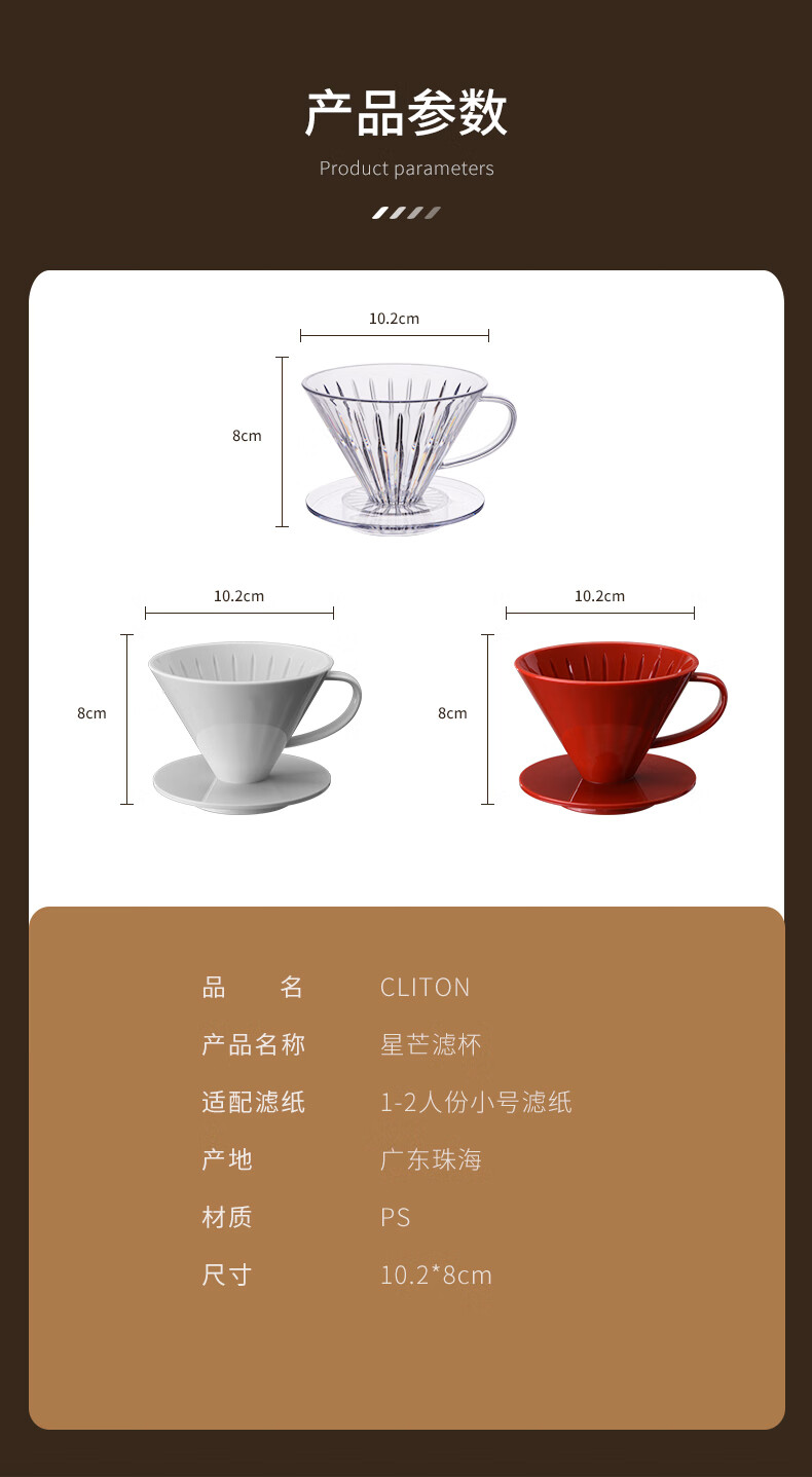CLITON hand-brewed coffee filter cup drip-type household coffee pot filter filter 1-2 servings