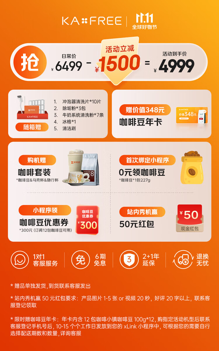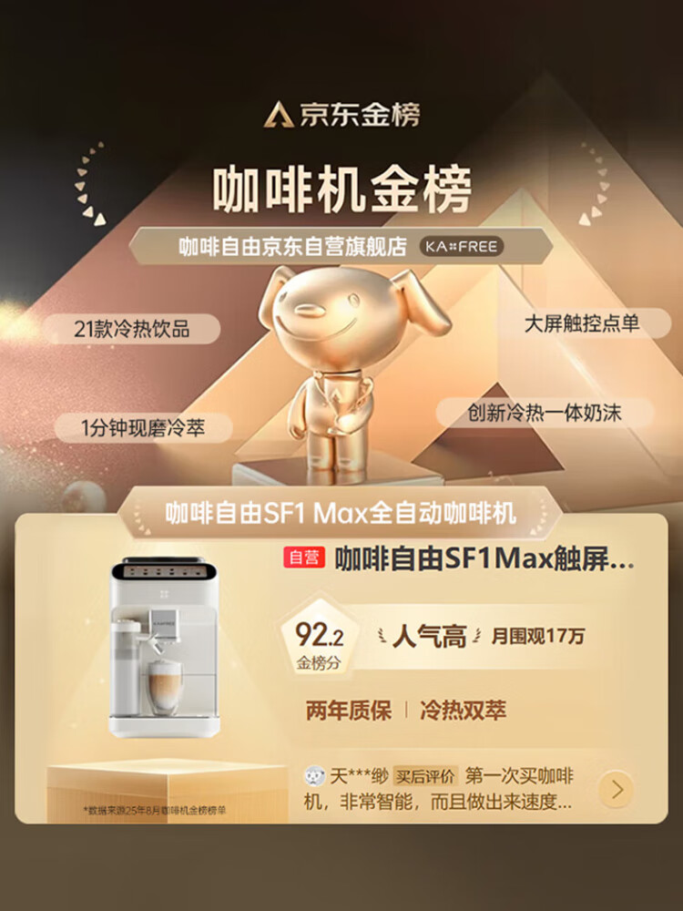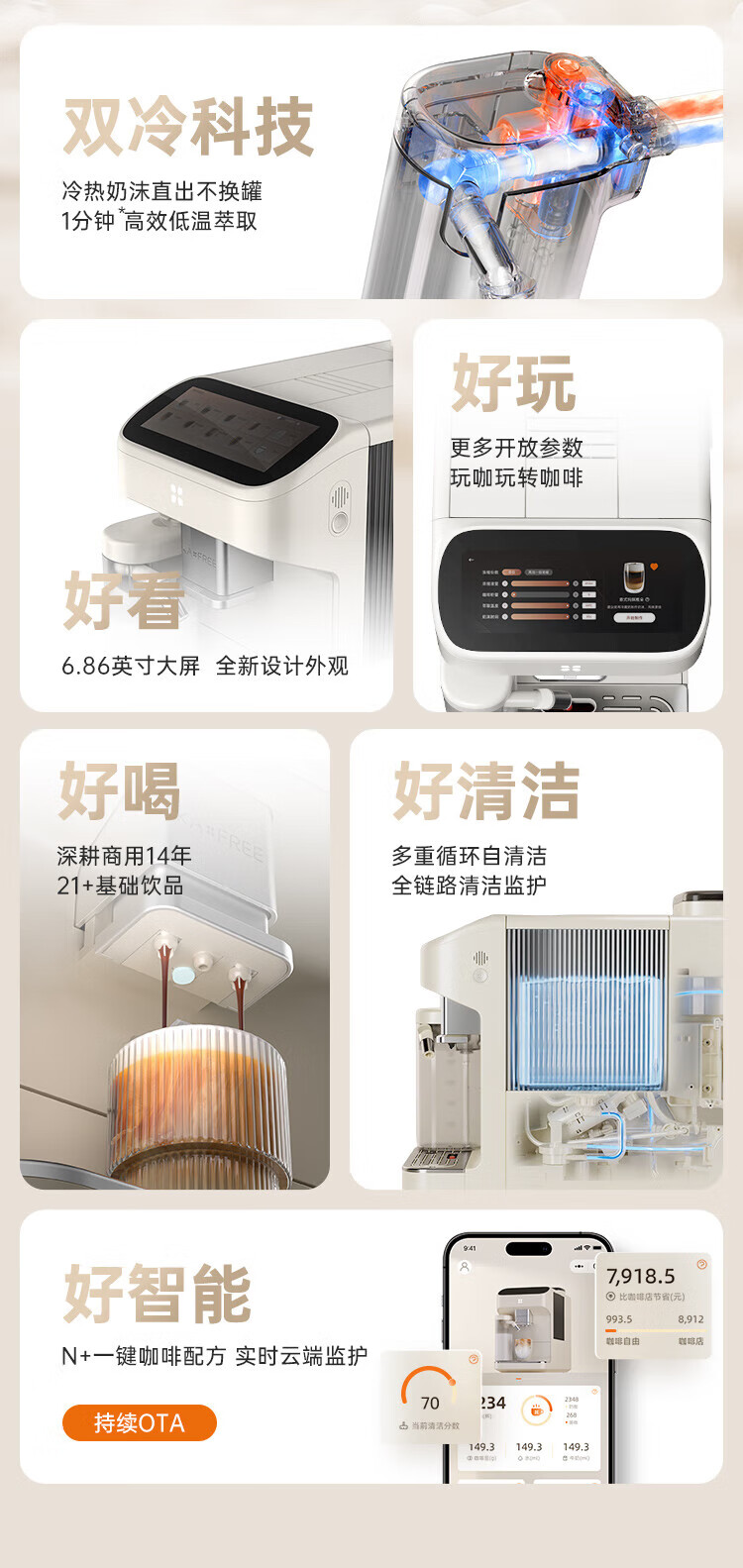 咖啡自由(KAxFREE)【政府补贴】咖啡机 家用全自动咖啡机现磨冷萃意式 大屏触控 双温双萃 SF1 Max